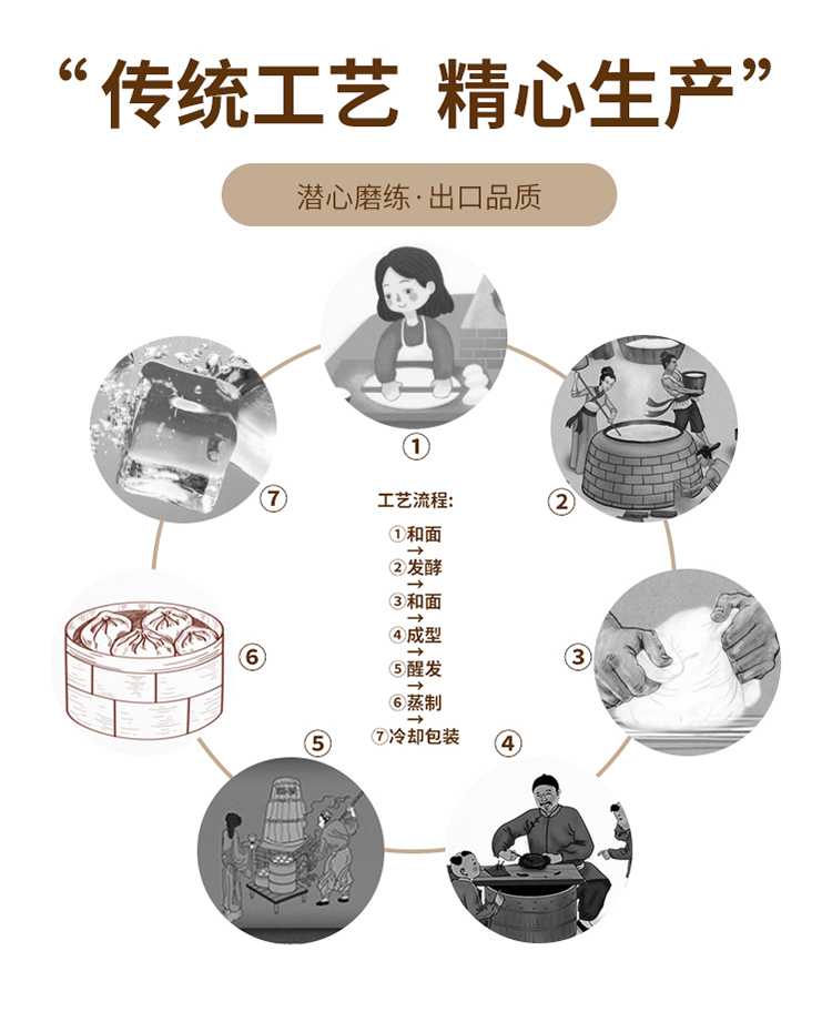 遵循传统,采用古老而纯朴的手工工艺,经手工反复揉制配合最先进的速冻锁鲜工艺,传统工艺与现代技术相结合,比儿时记忆熟悉的味道,多一些用心和诚意。