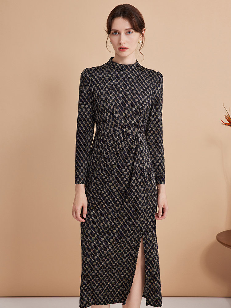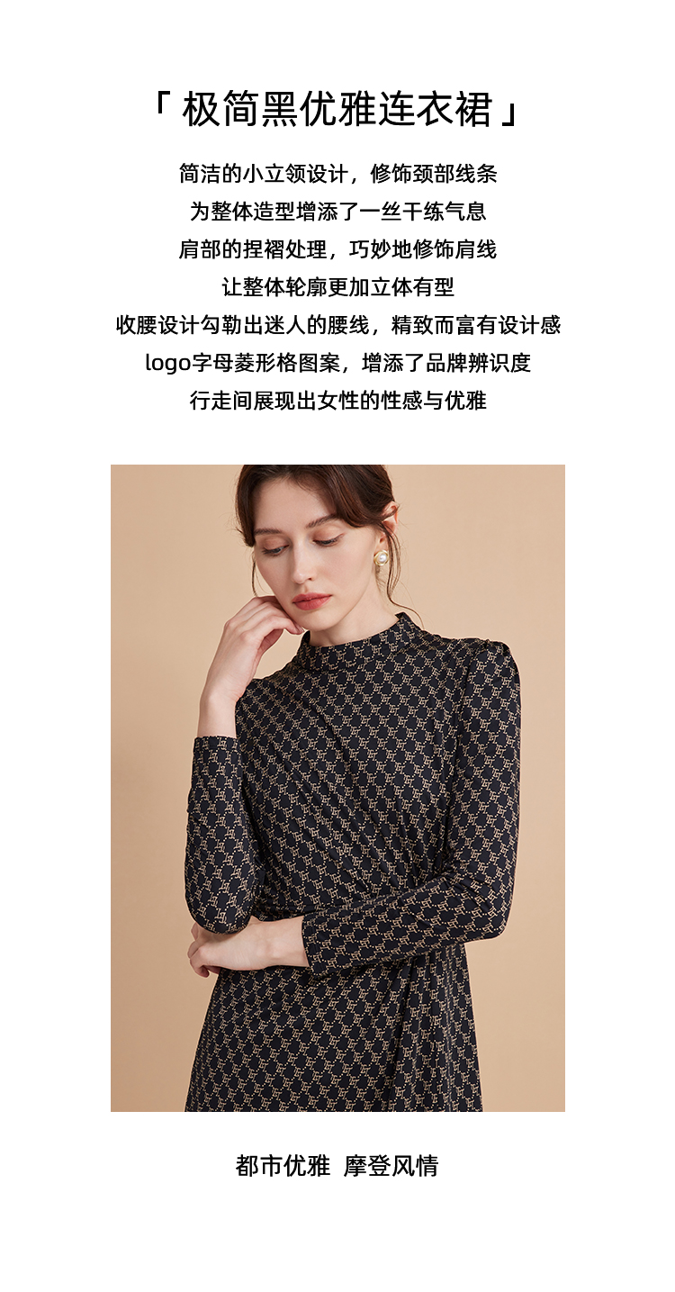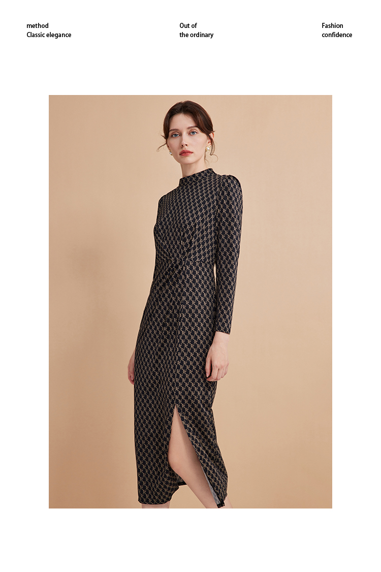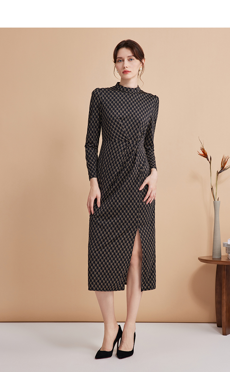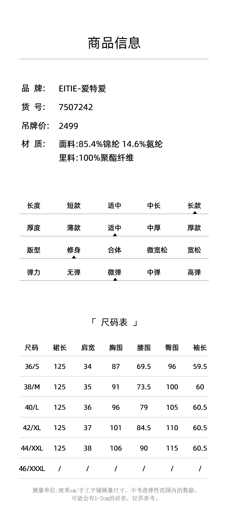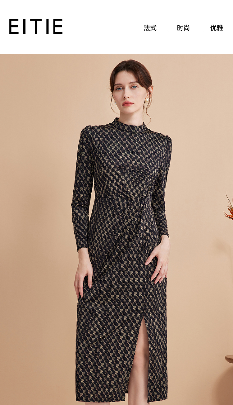 EITIE爱特爱秋季新款优雅显瘦裙摆开叉连衣裙7507242