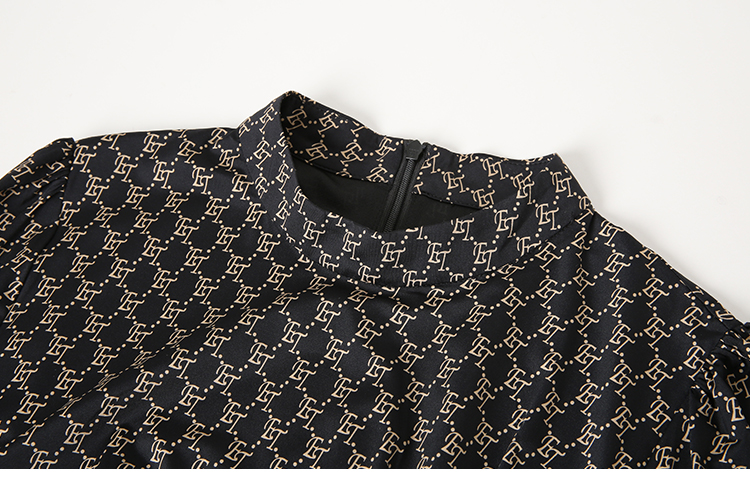 EITIE爱特爱夏季新款洋气西装领收腰显瘦灯笼袖连衣裙女B2107710