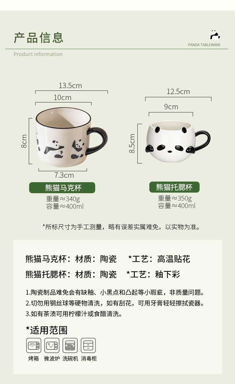 摩登主妇mototo熊猫陶瓷马克杯生日礼物水杯伴手礼杯子家用咖啡杯