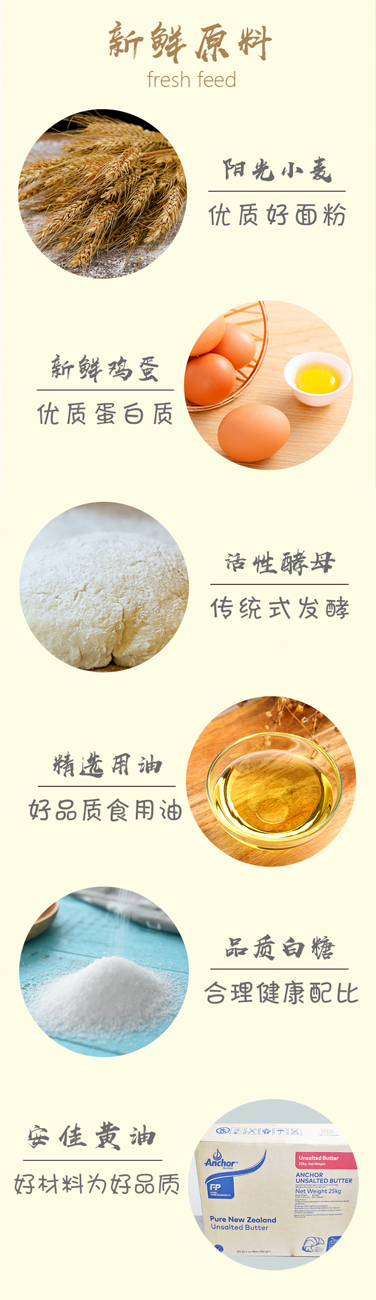 【配料表】高筋面粉、水、白砂糖、鸡蛋、大豆油、黄油、酵母、食用盐。