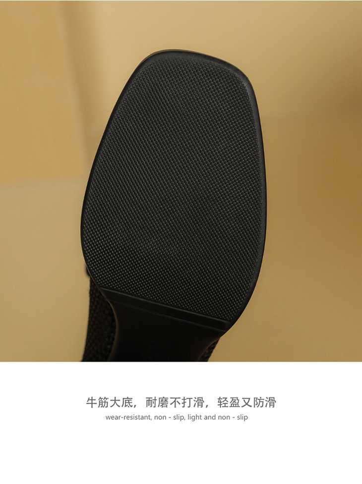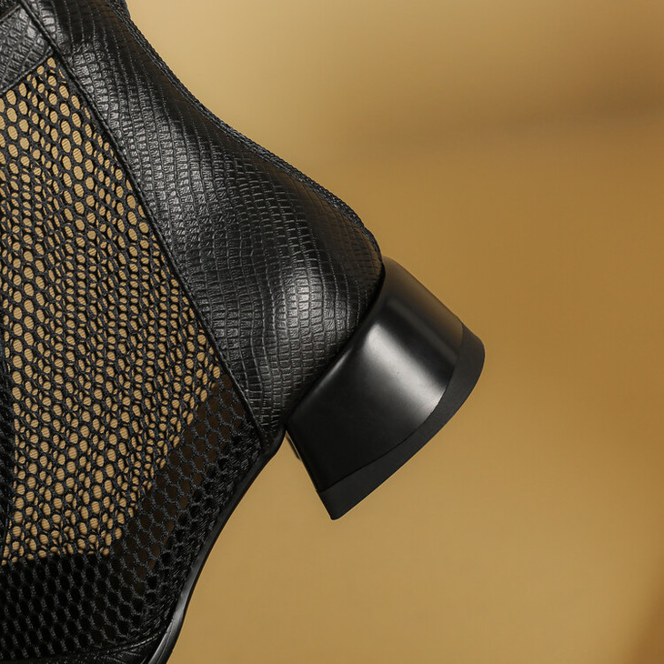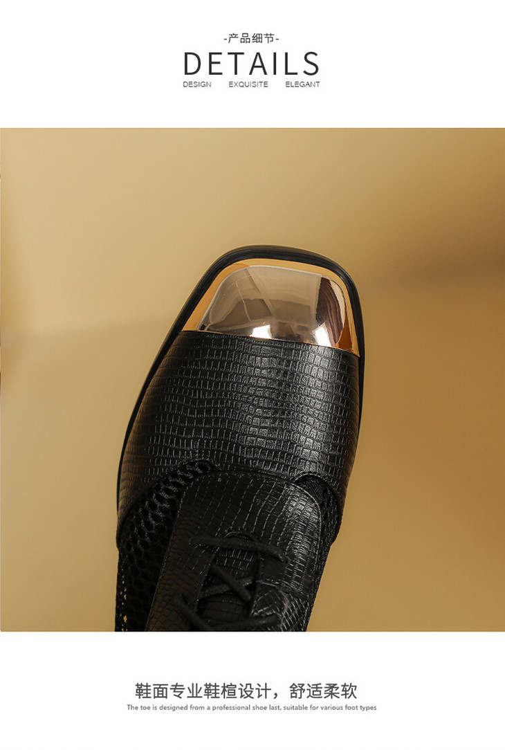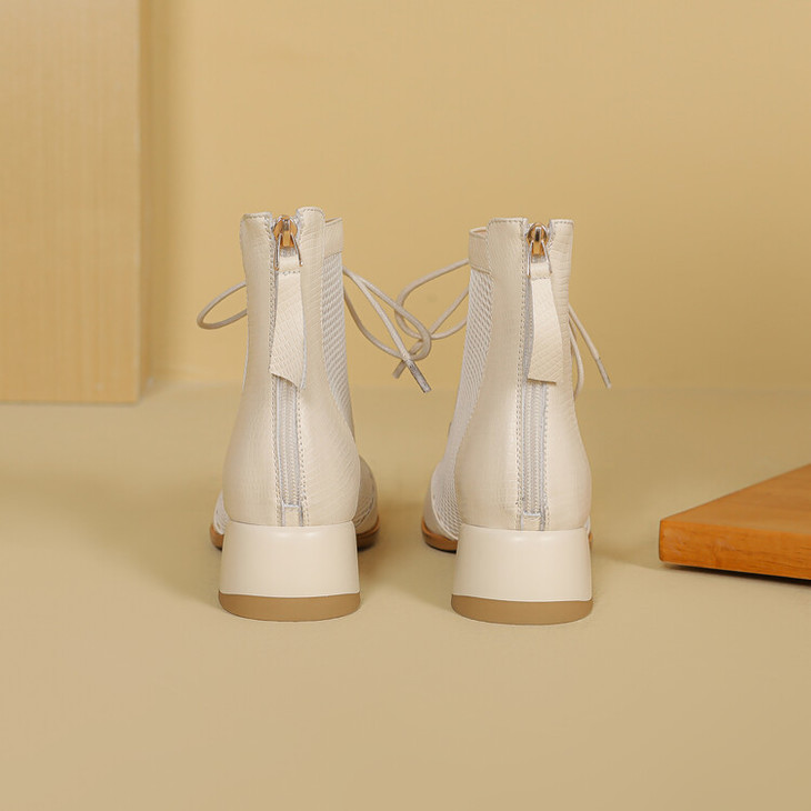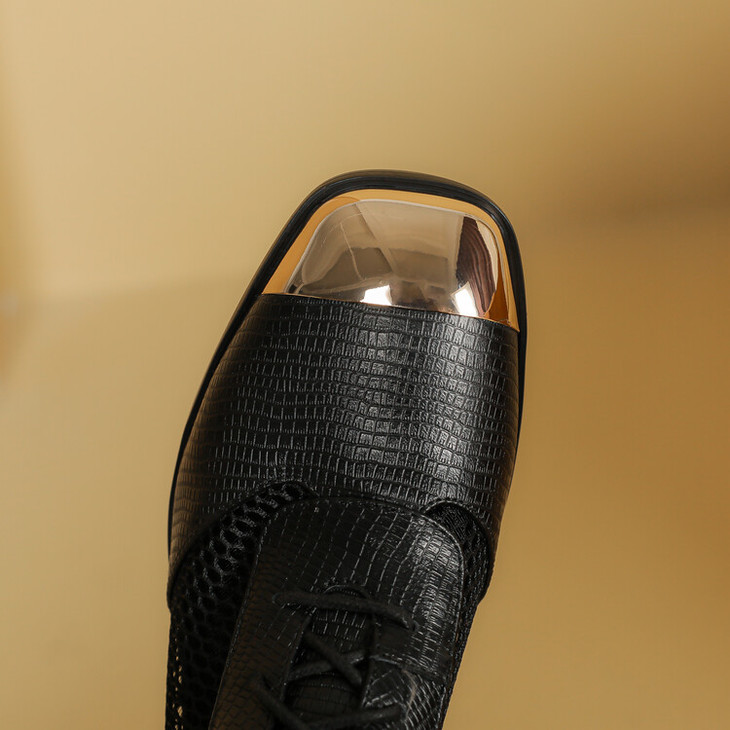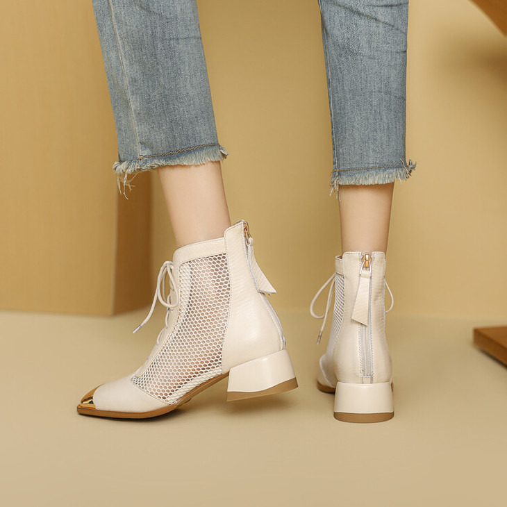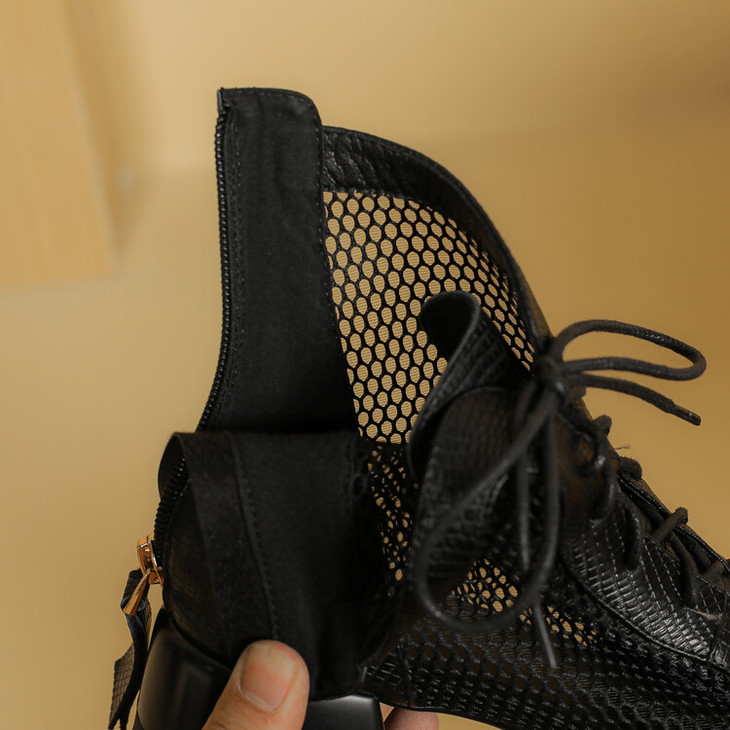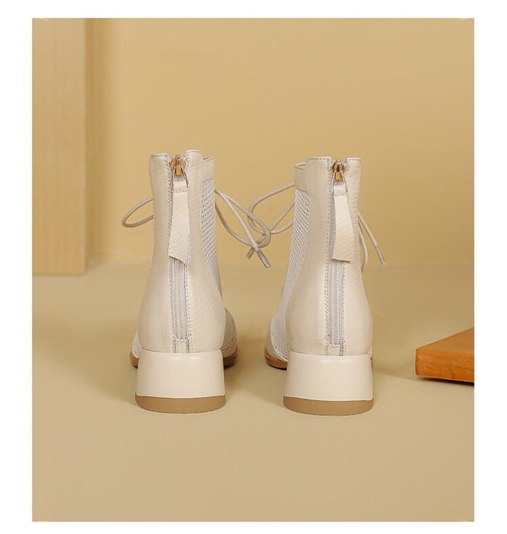 【预售5天】金属鞋头真皮镂空网靴短靴女春秋季粗跟系带凉靴PLGZ&D122-5