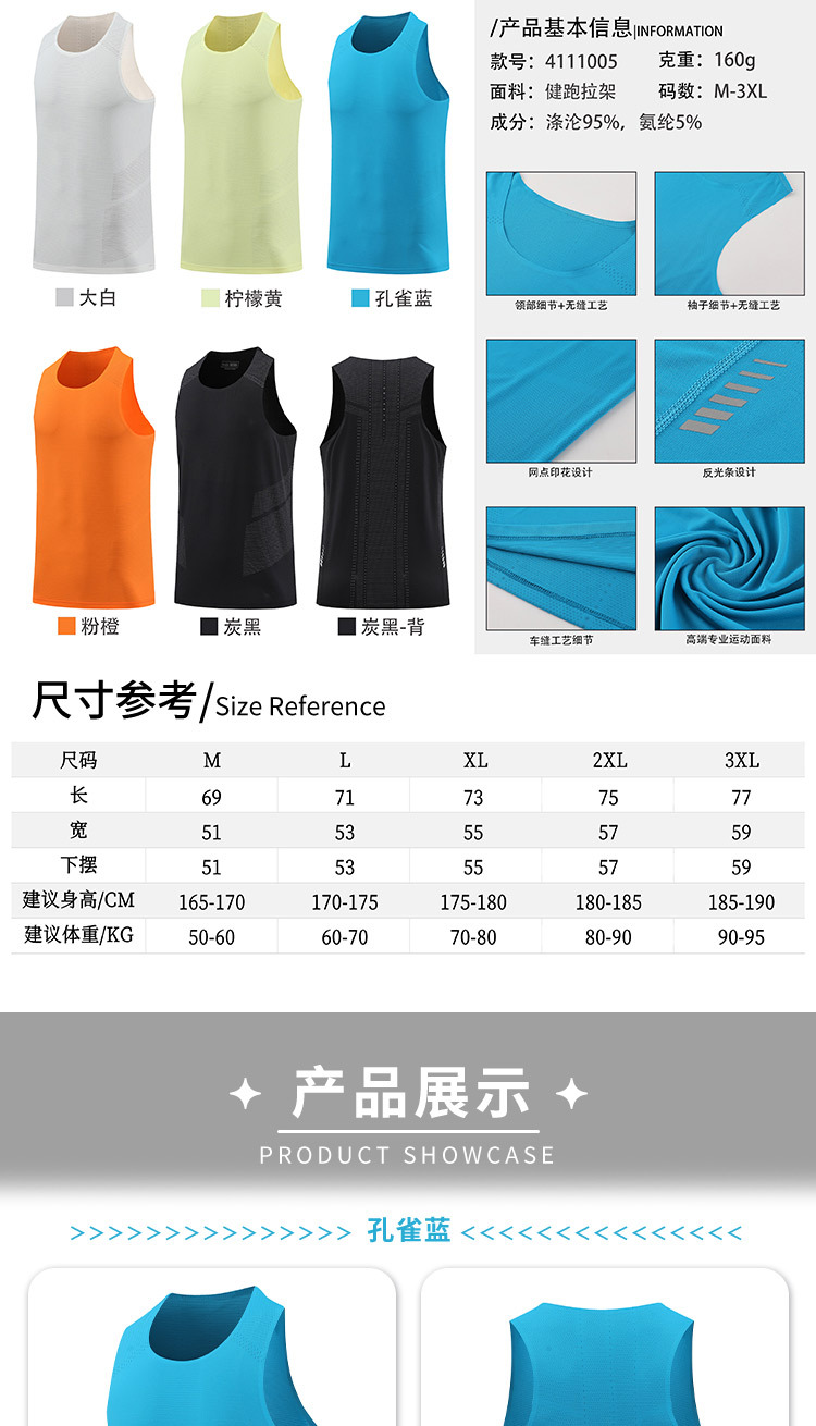 跃牌【跃LEAP-ACTIVE】系列 冰丝网眼透气坎肩无袖跑步健身速干运动T恤4111005