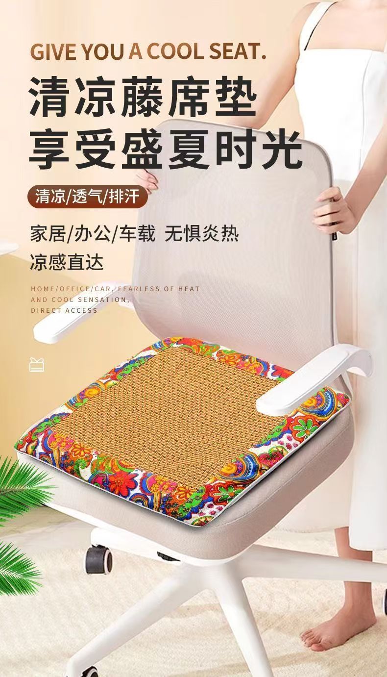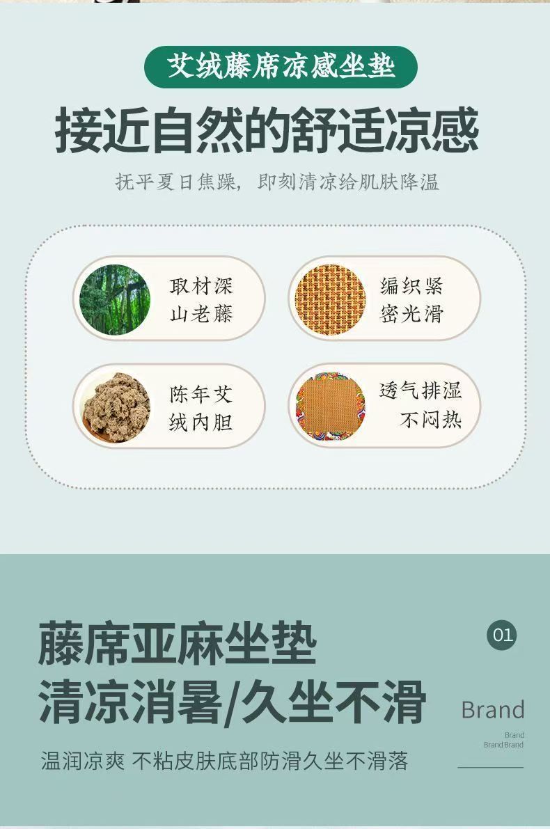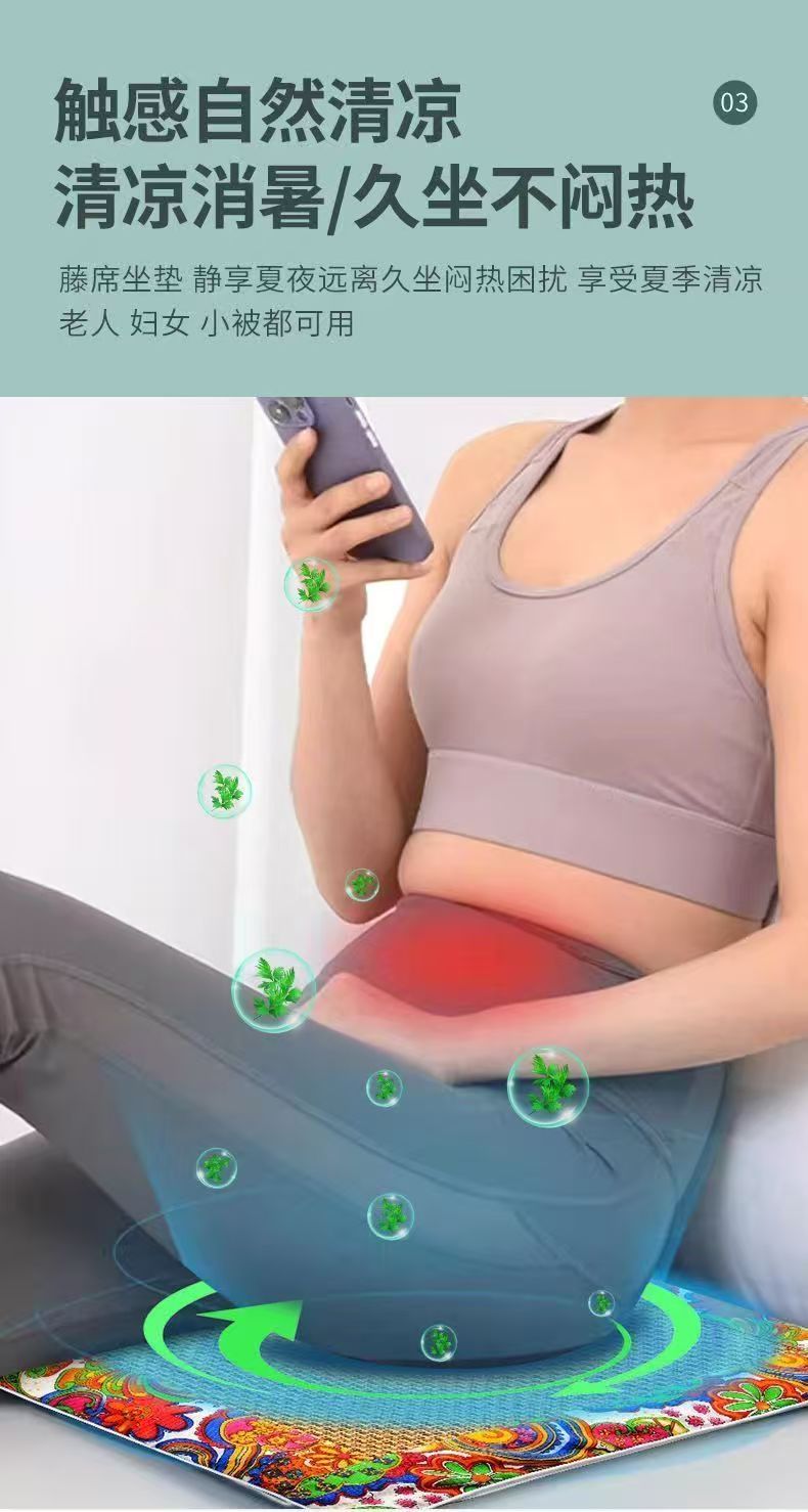 给屁股开空调!艾绒藤席坐垫上班族办公室全身艾灸臀部车载艾草凉席垫子