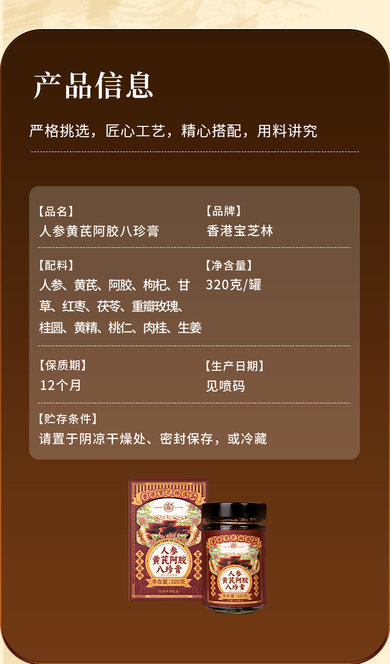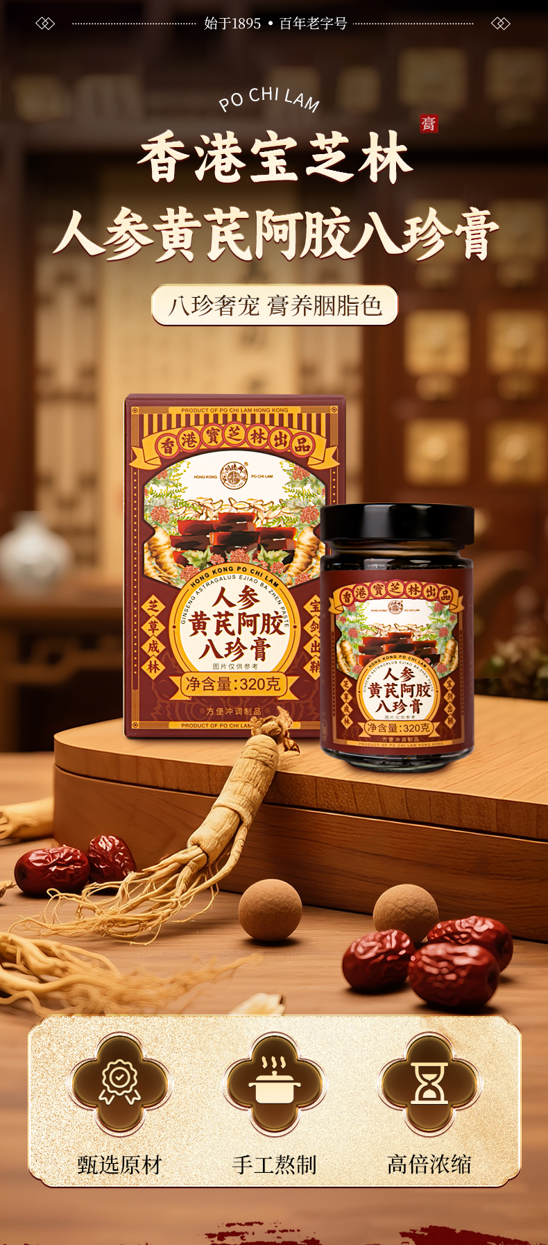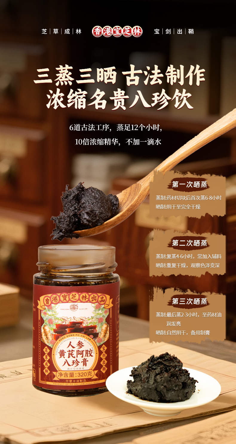 【预售】香港宝芝林人参黄芪阿胶八珍滋补膏 320g/罐