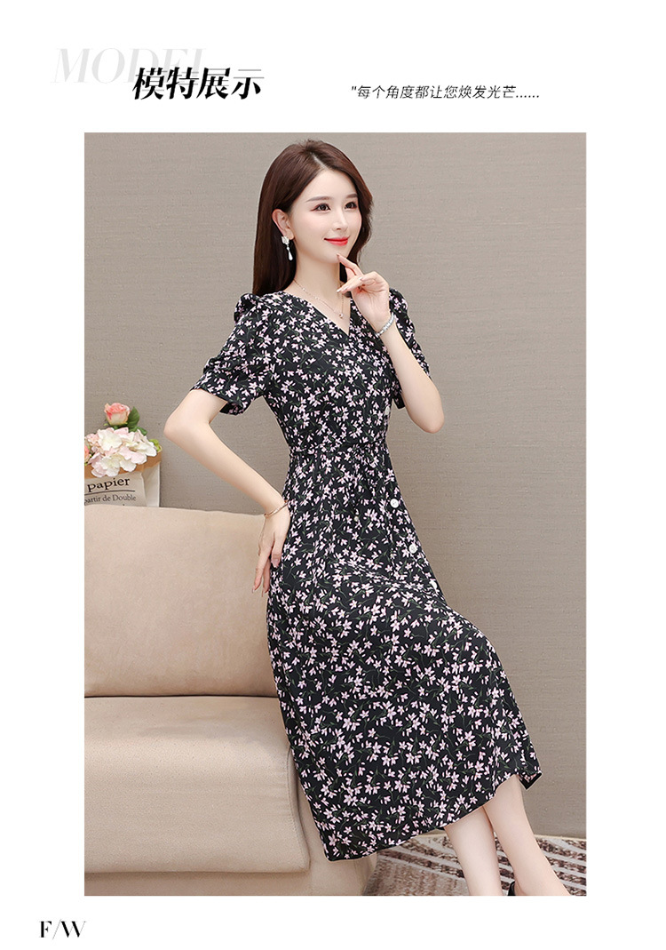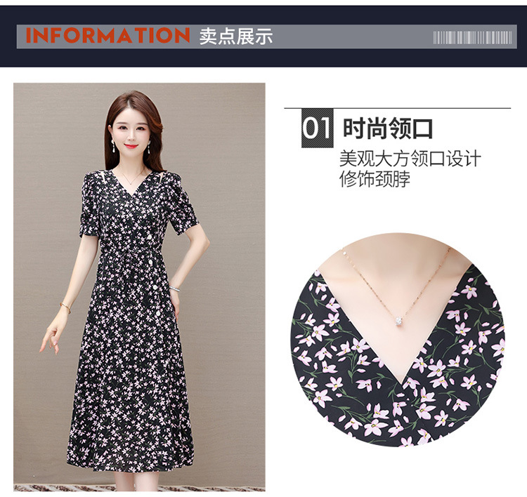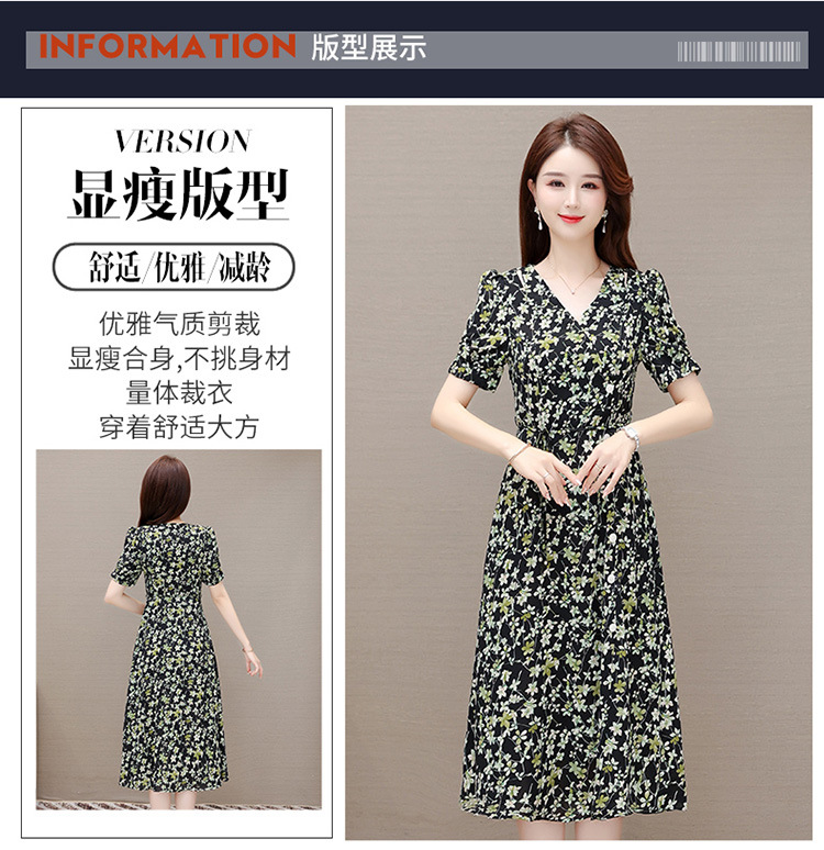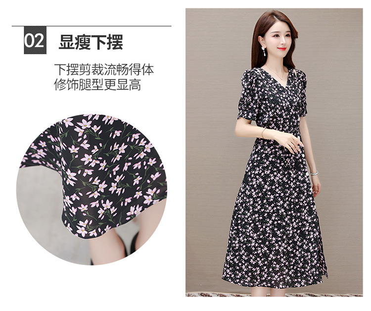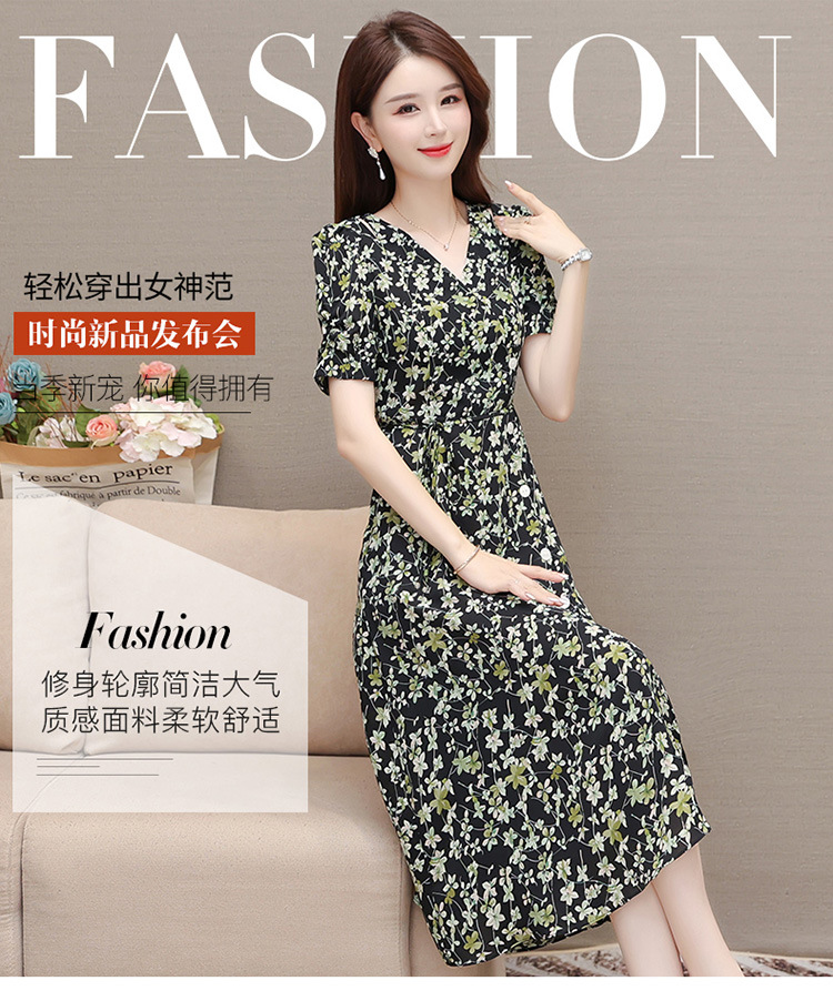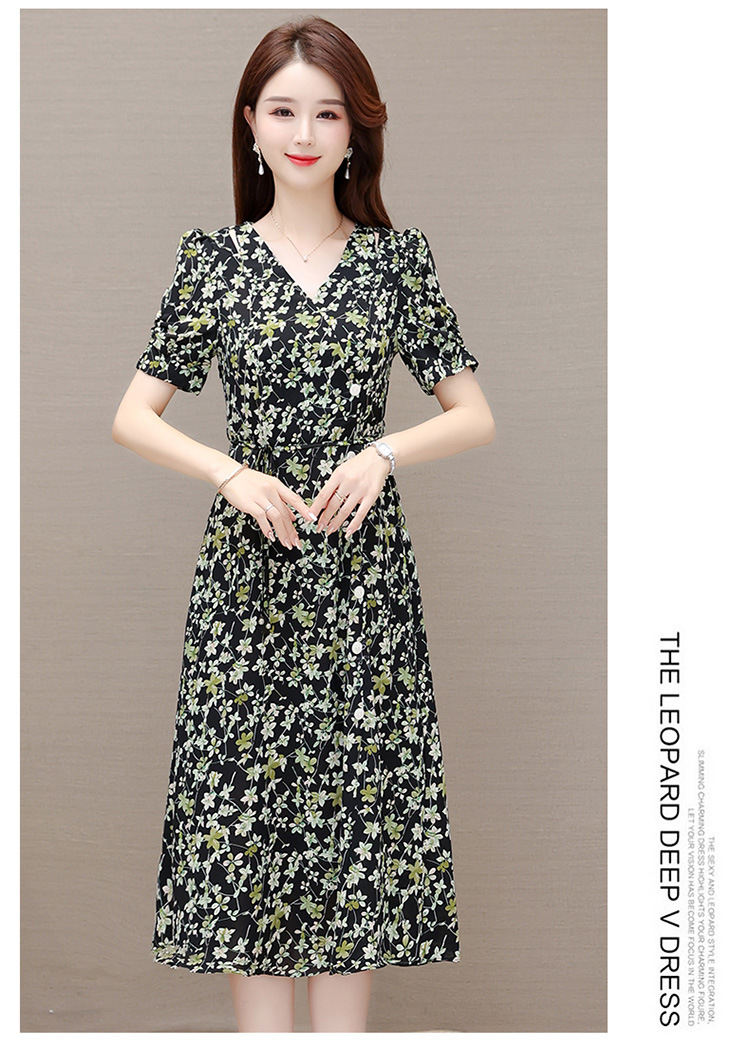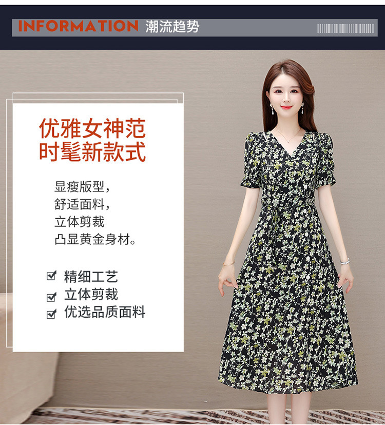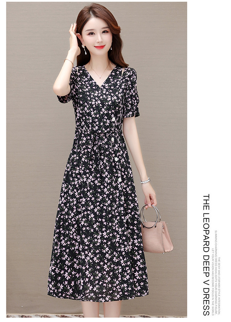 QYM HB238813-Y夏季V领印花碎花连衣裙