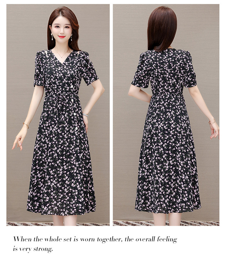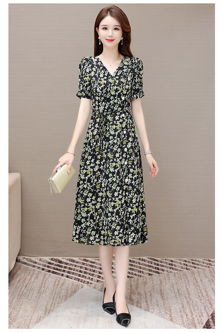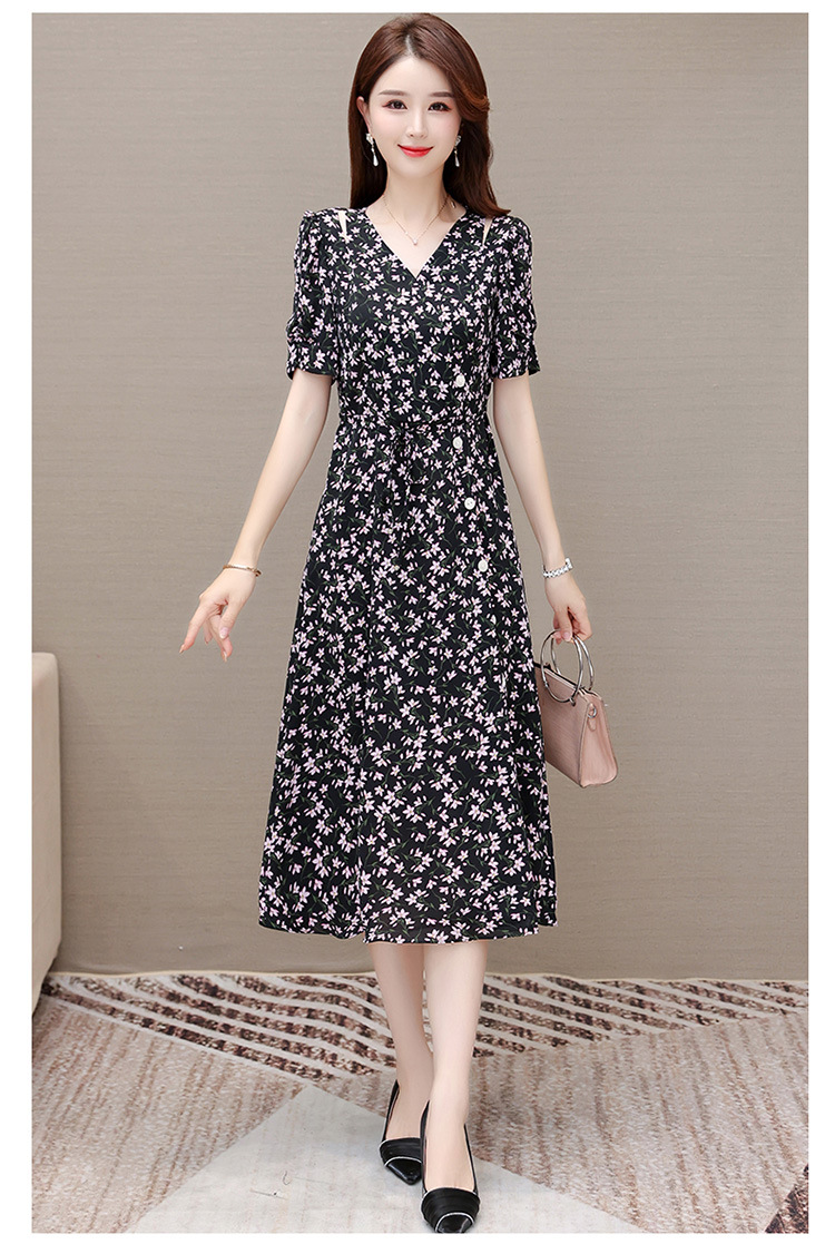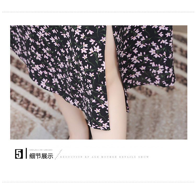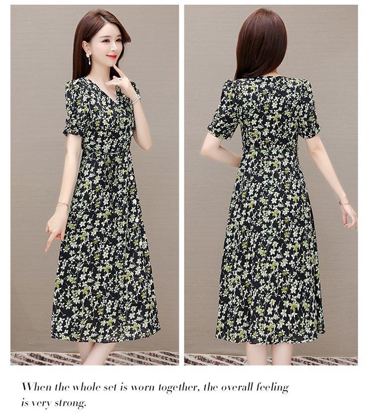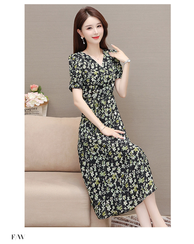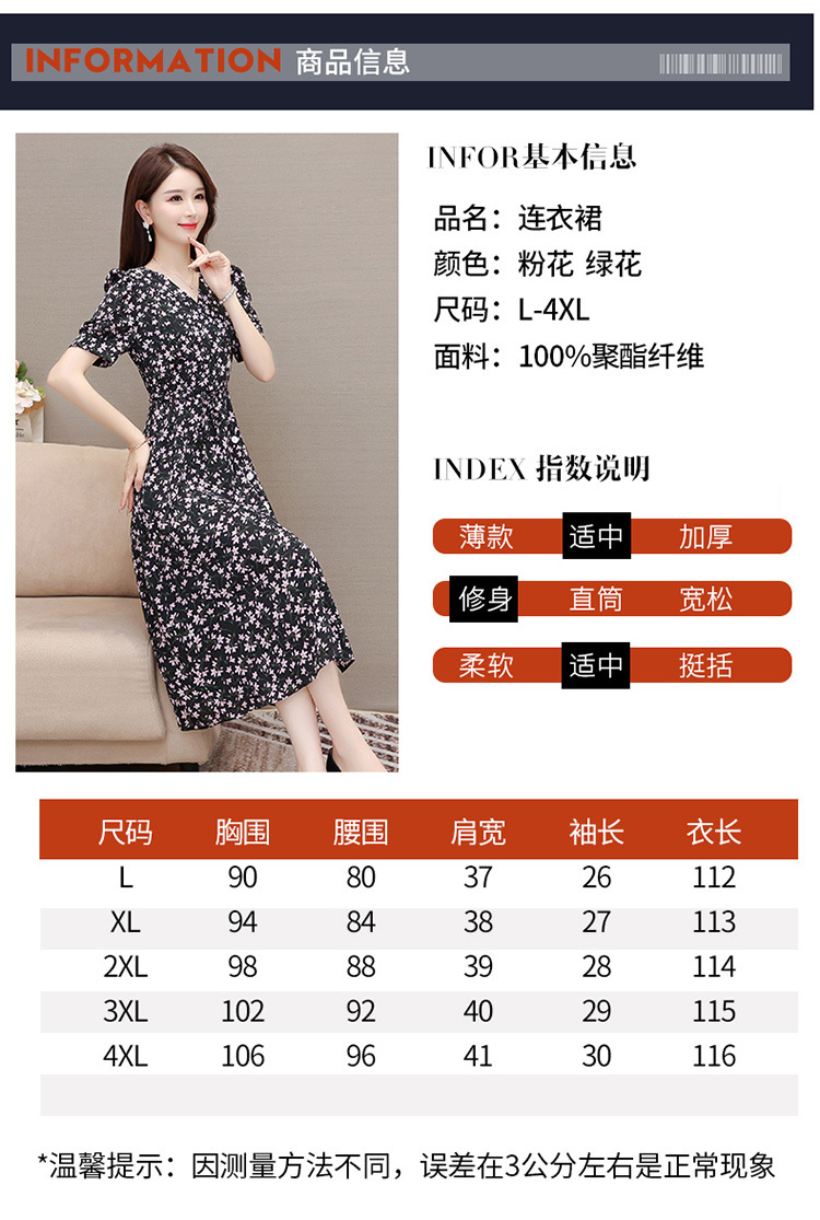 QYM HB238813-Y夏季V领印花碎花连衣裙