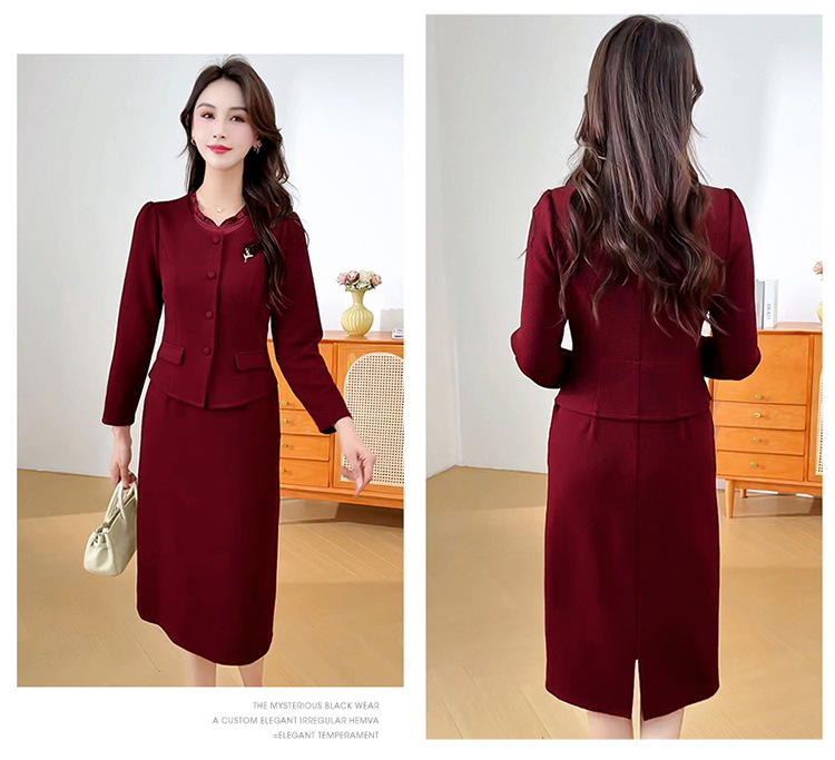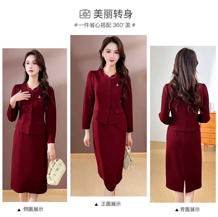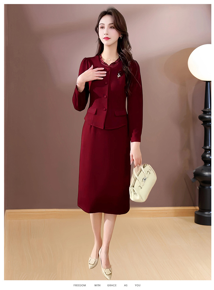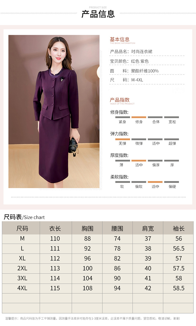 QYM SDB18-Y假两件连衣裙气质时尚优雅拼接妈妈裙 商品图4