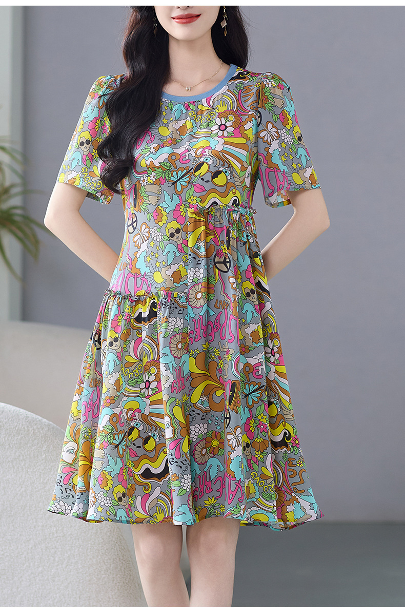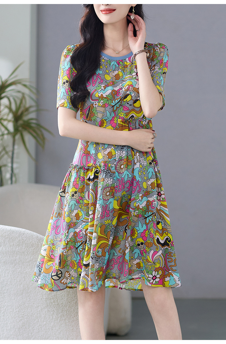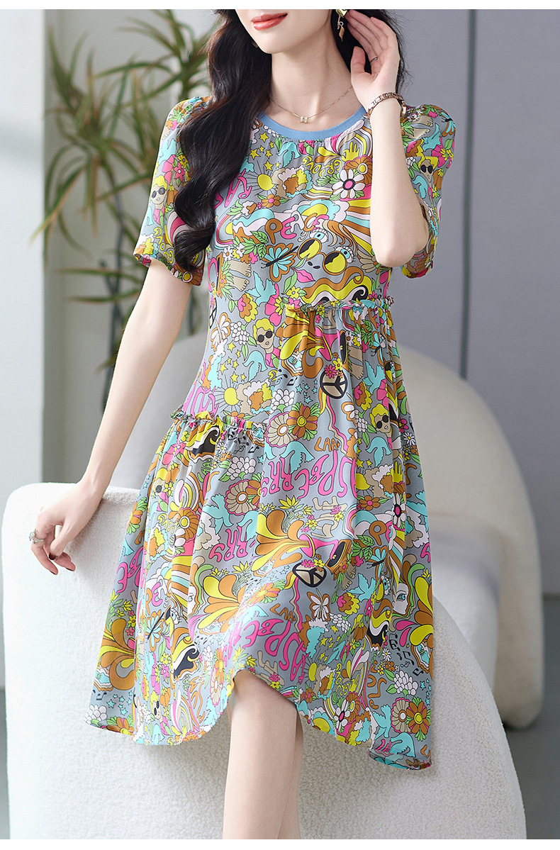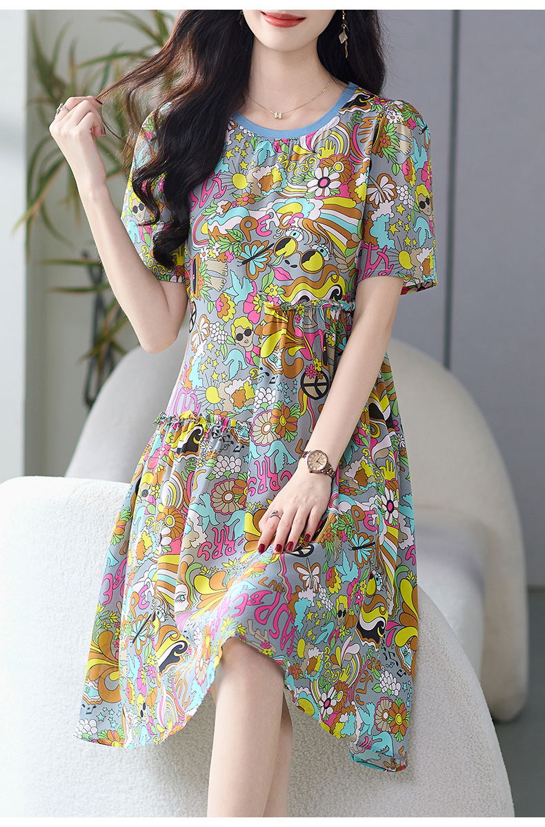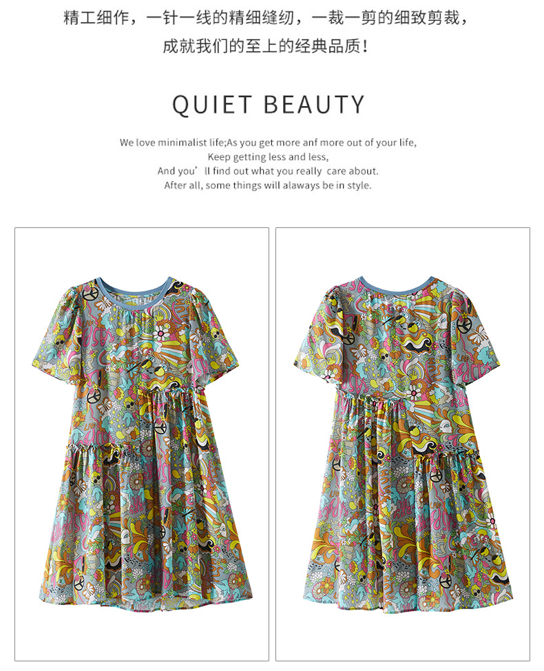 WWM-69486 夏新款小个子真丝桑蚕丝裙 蚕丝连衣裙女夏季碎花连衣裙