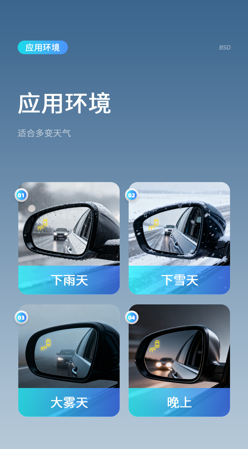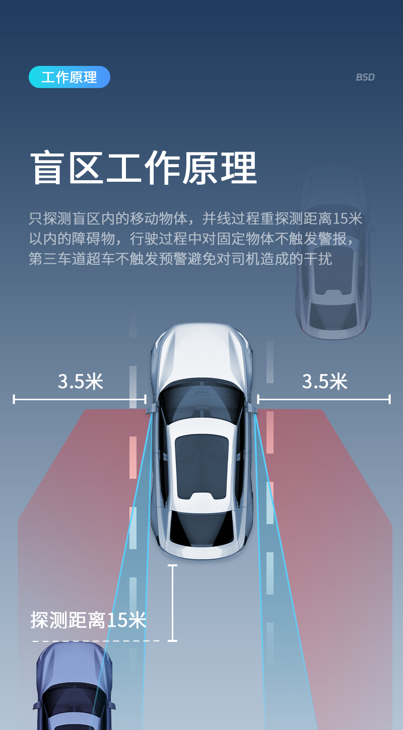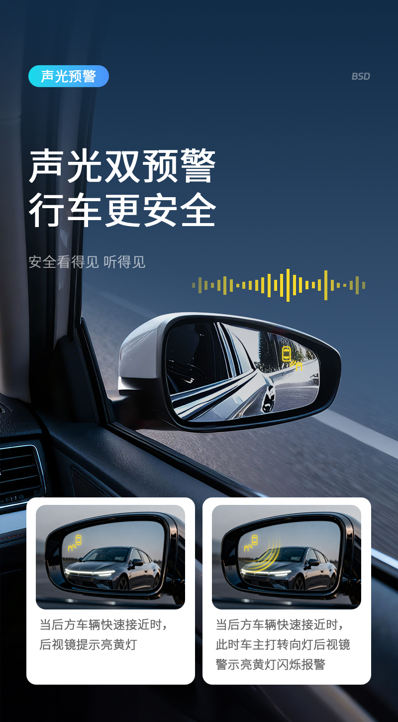 BSD变道盲区监测辅助系统 并线超车 倒车预警 开门防撞 毫米波雷达探测 多曲面蓝光镜片