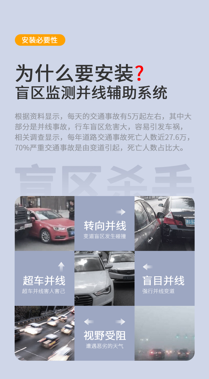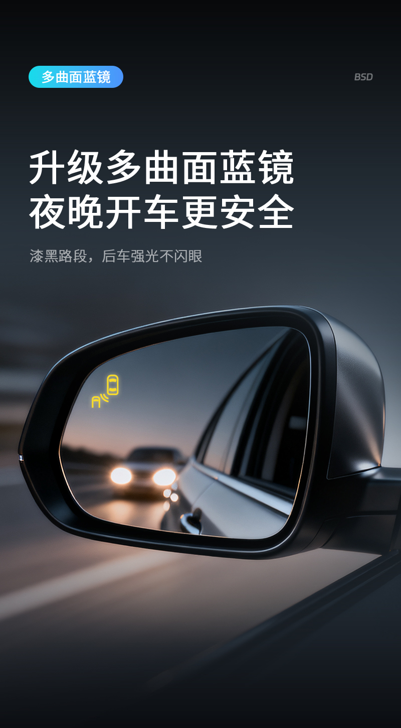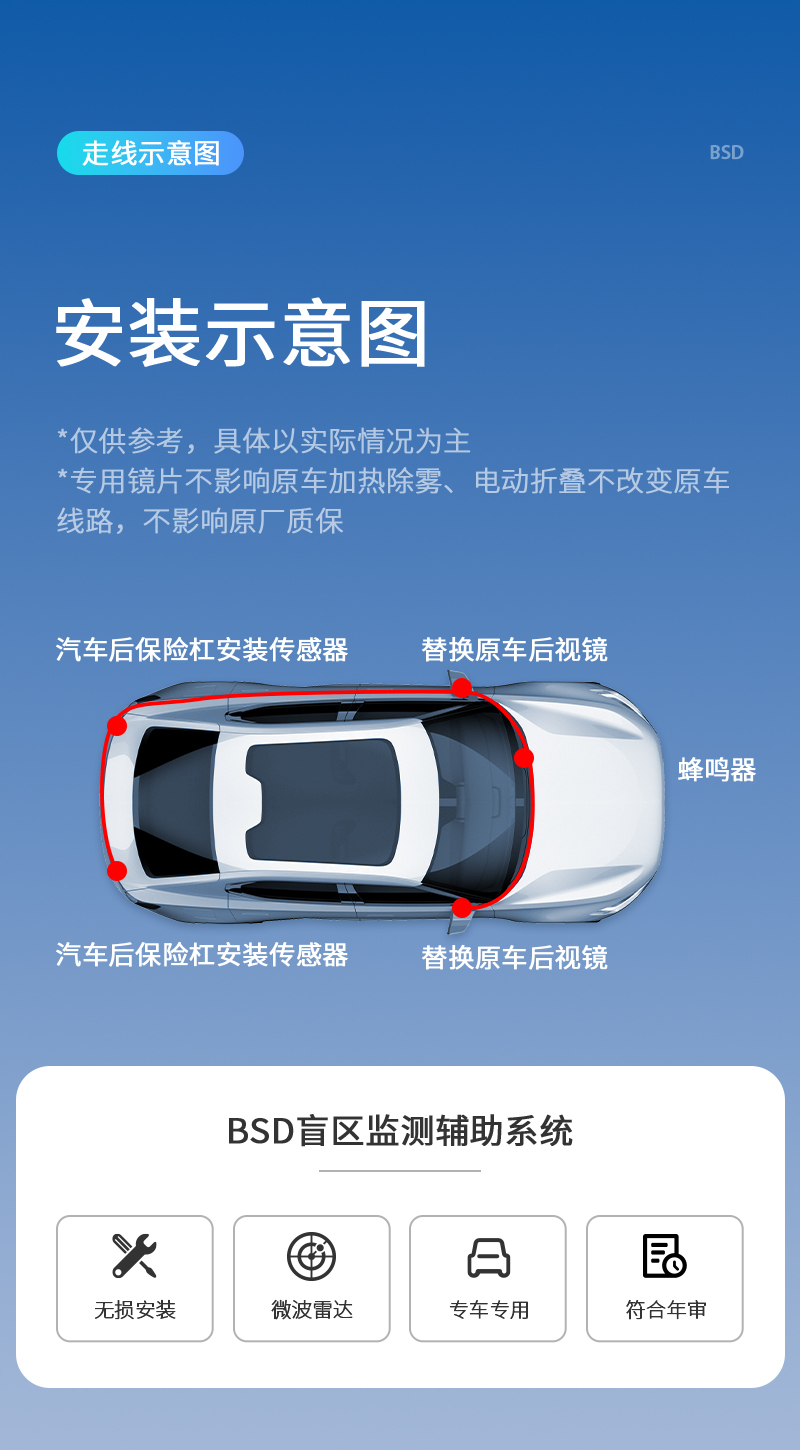 BSD变道盲区监测辅助系统 并线超车 倒车预警 开门防撞 毫米波雷达探测 多曲面蓝光镜片