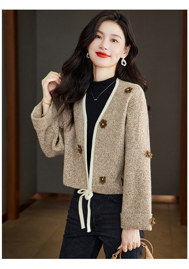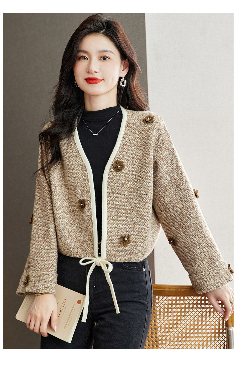 SC22-2729早秋v领针织开衫女外套2025春秋新款慵懒短款小香风毛衣披肩外搭