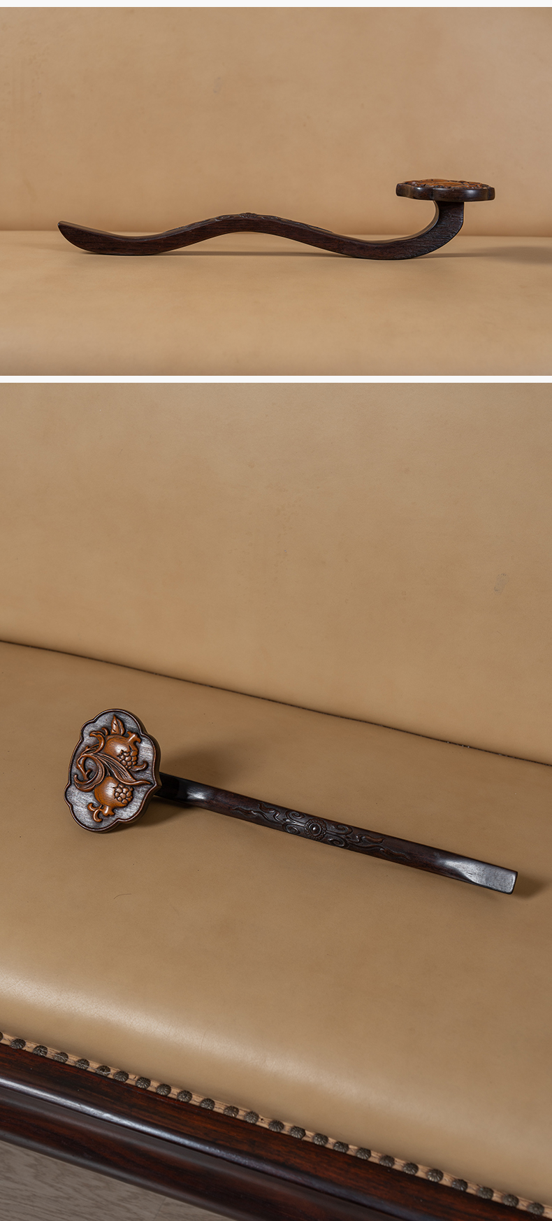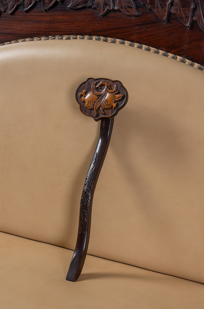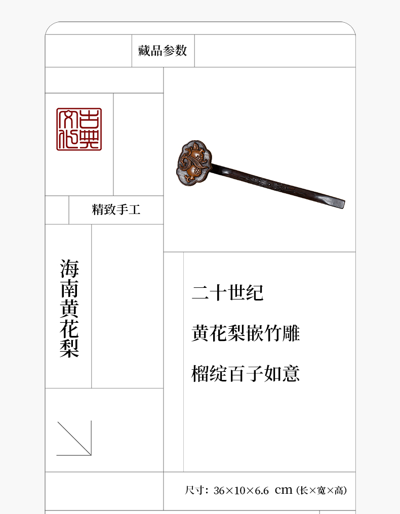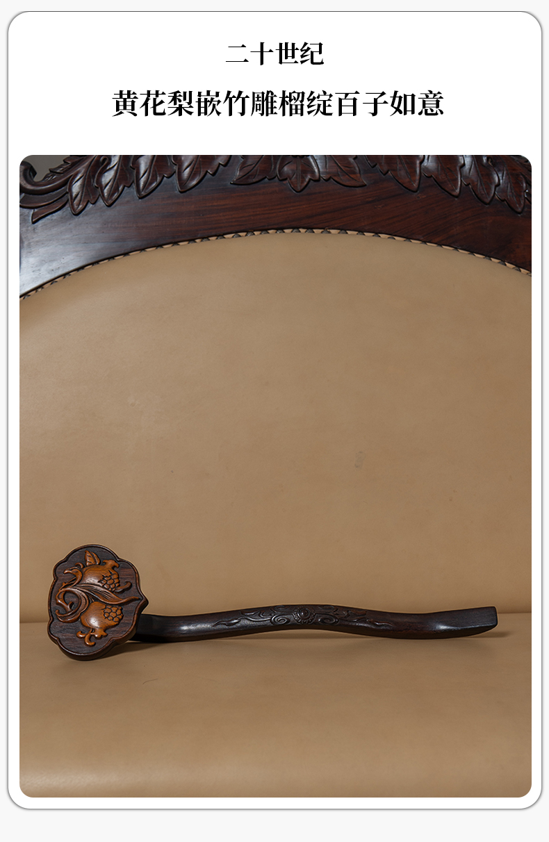 二十世纪 黄花梨嵌竹雕榴绽百子如意