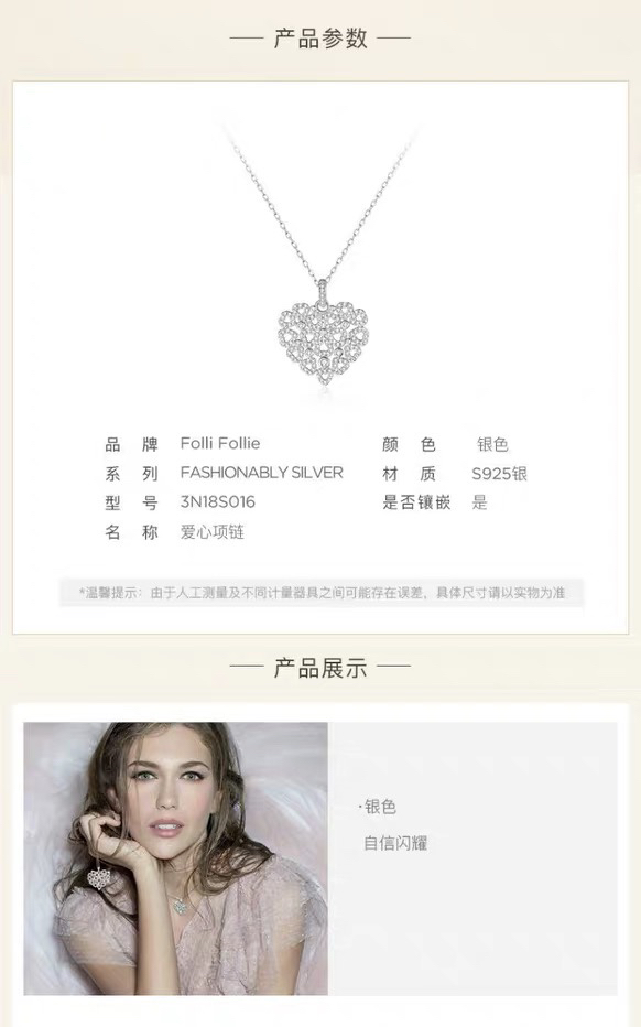 芙丽芙丽/Folli Follie 爱心项链锁骨链 银色