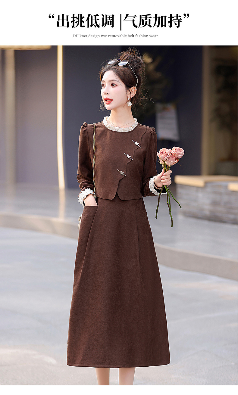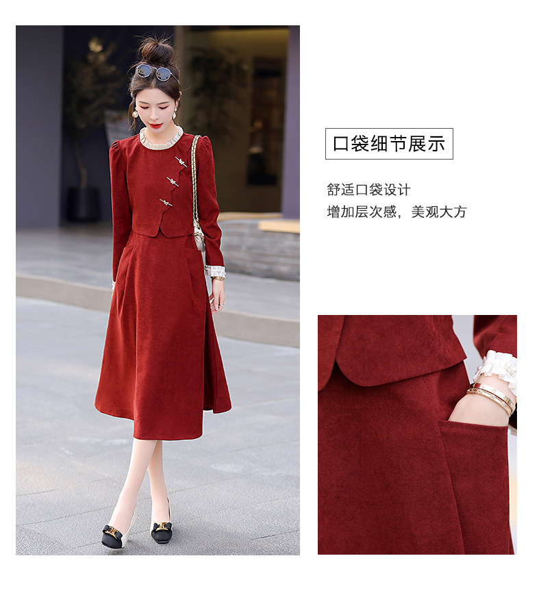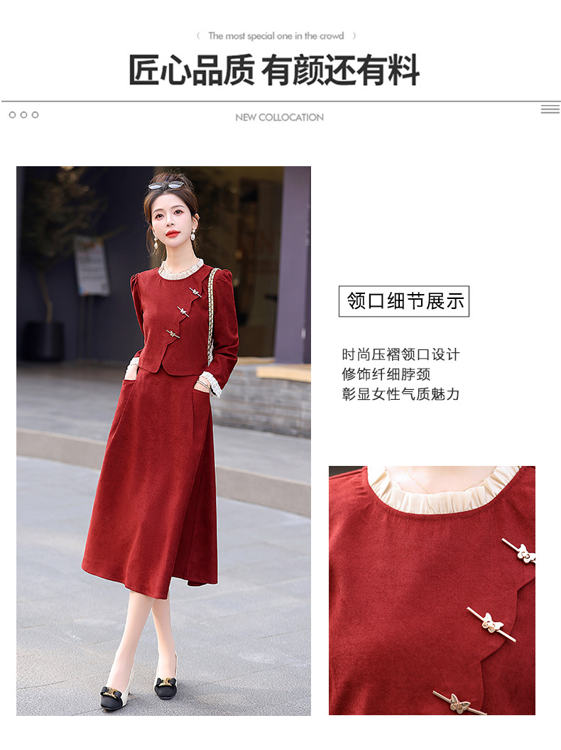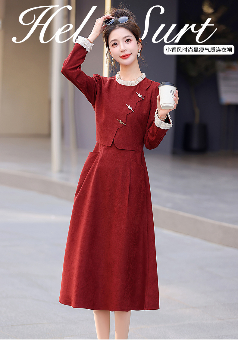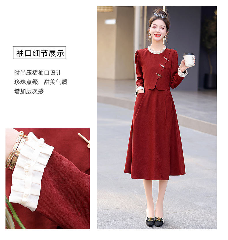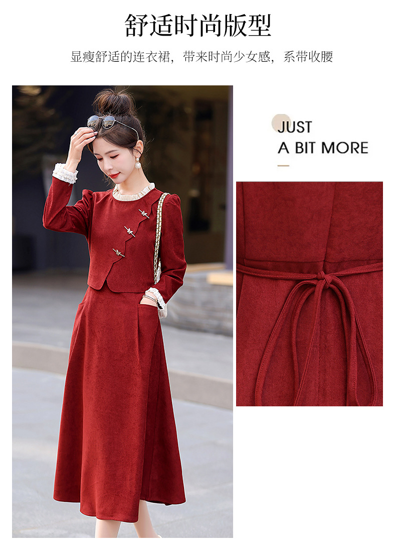 新中式假两件连衣裙女春秋新款正式场合气质订婚长裙LNS9666