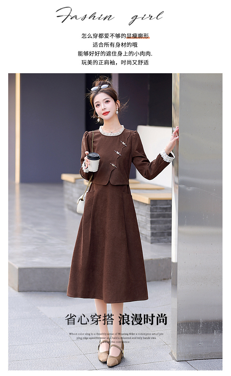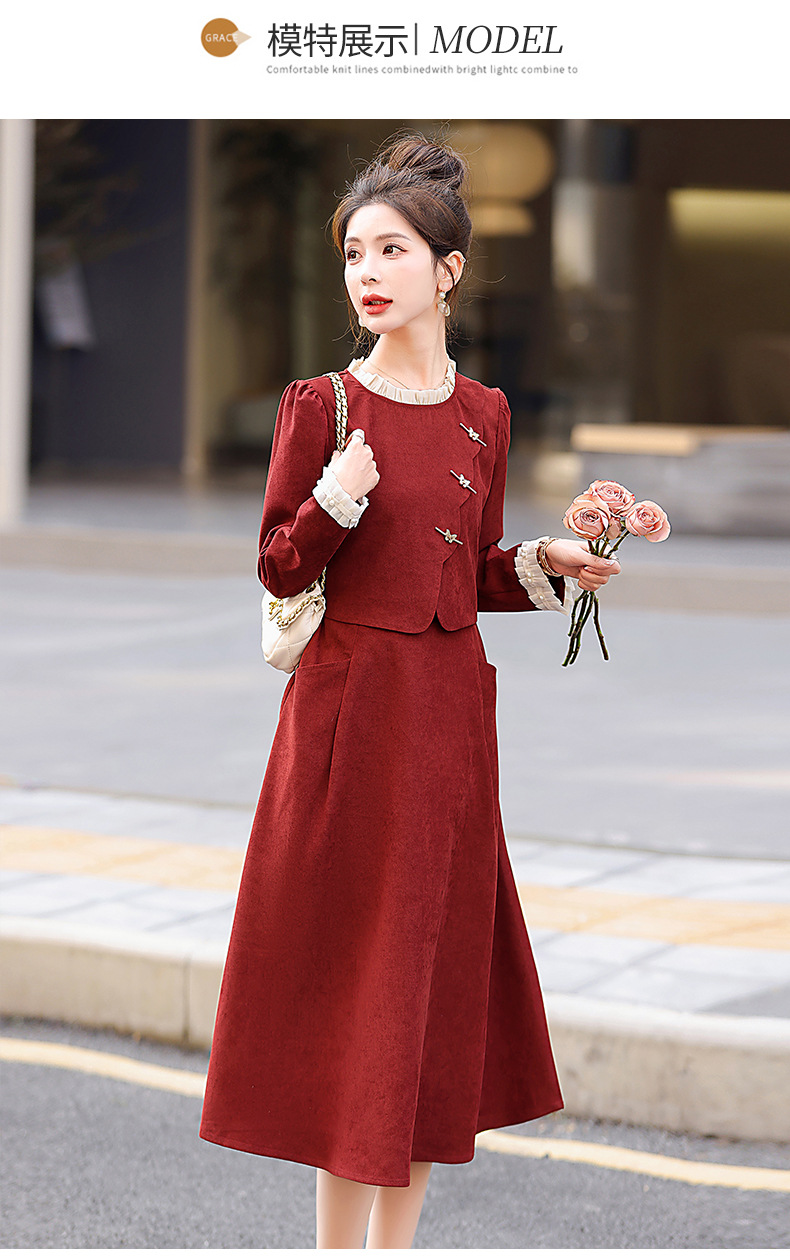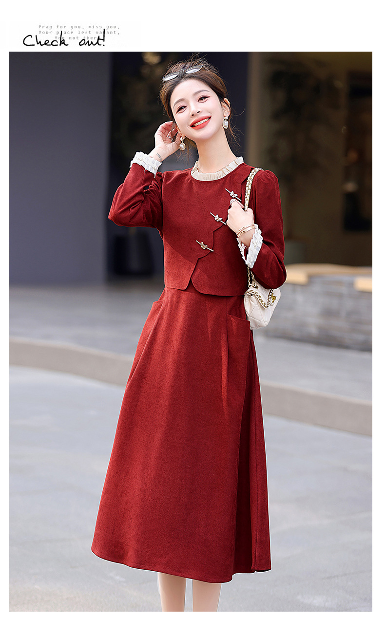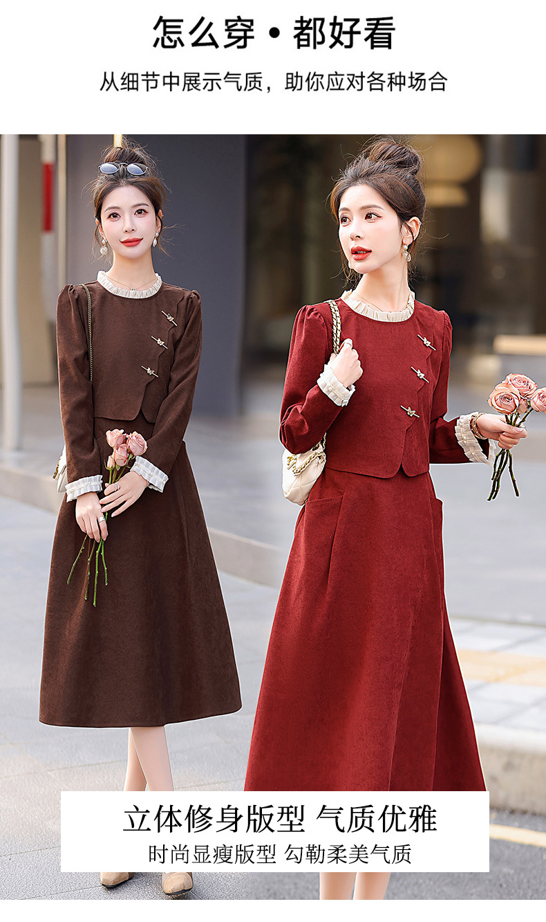 新中式假两件连衣裙女春秋新款正式场合气质订婚长裙LNS9666