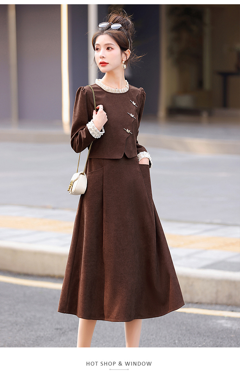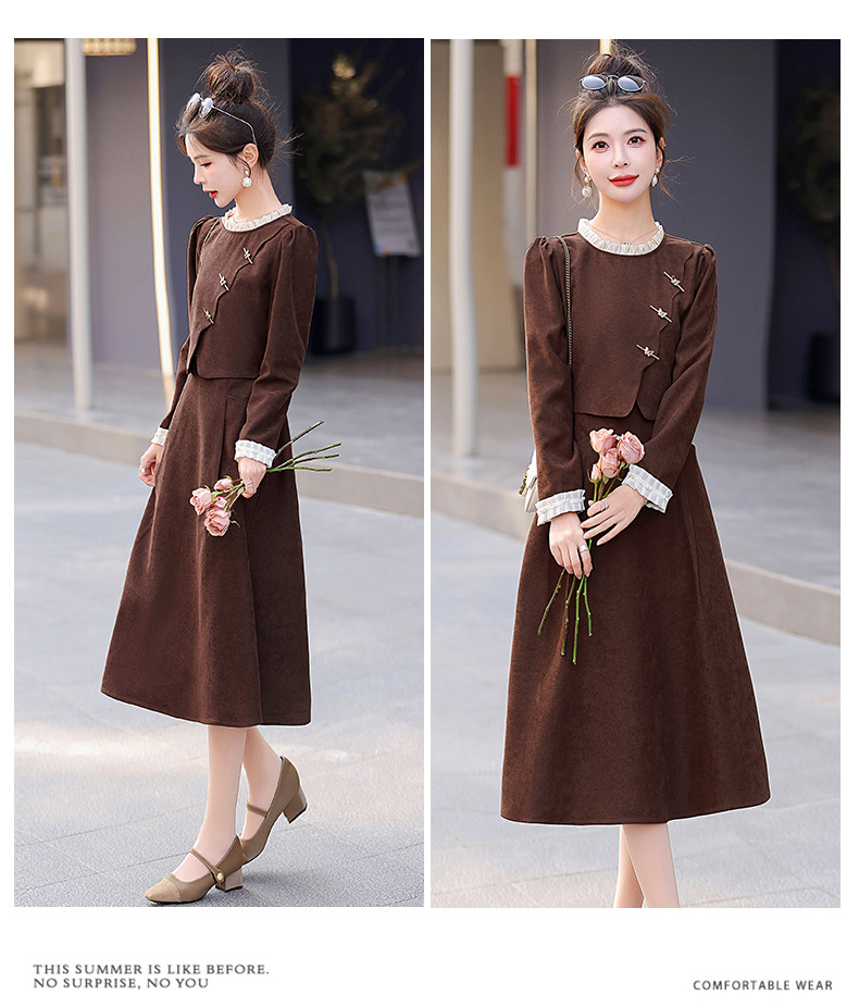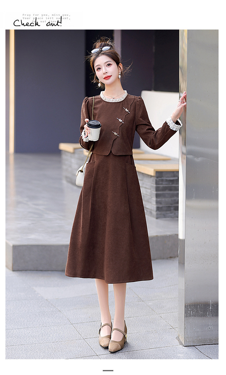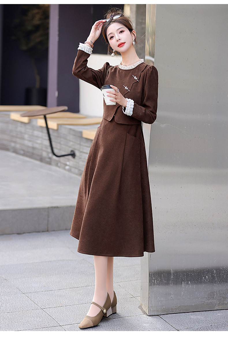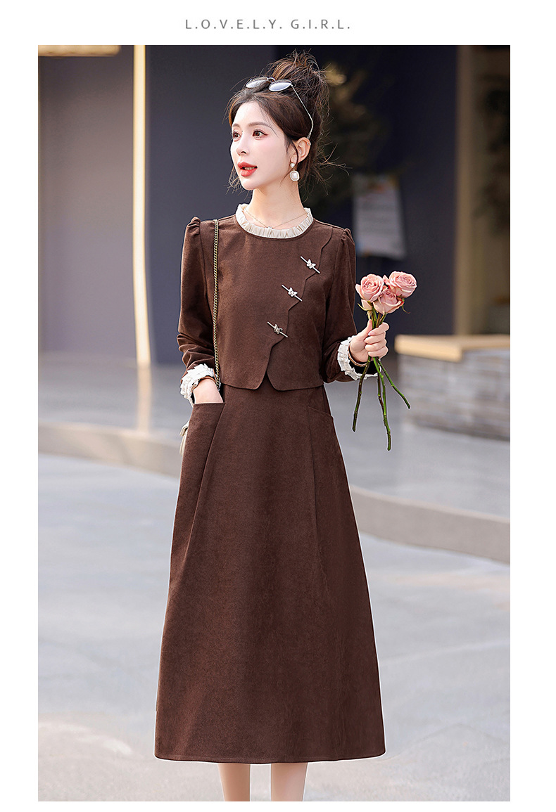 新中式假两件连衣裙女春秋新款正式场合气质订婚长裙LNS9666
