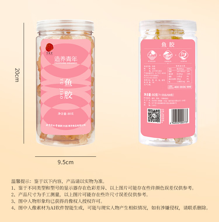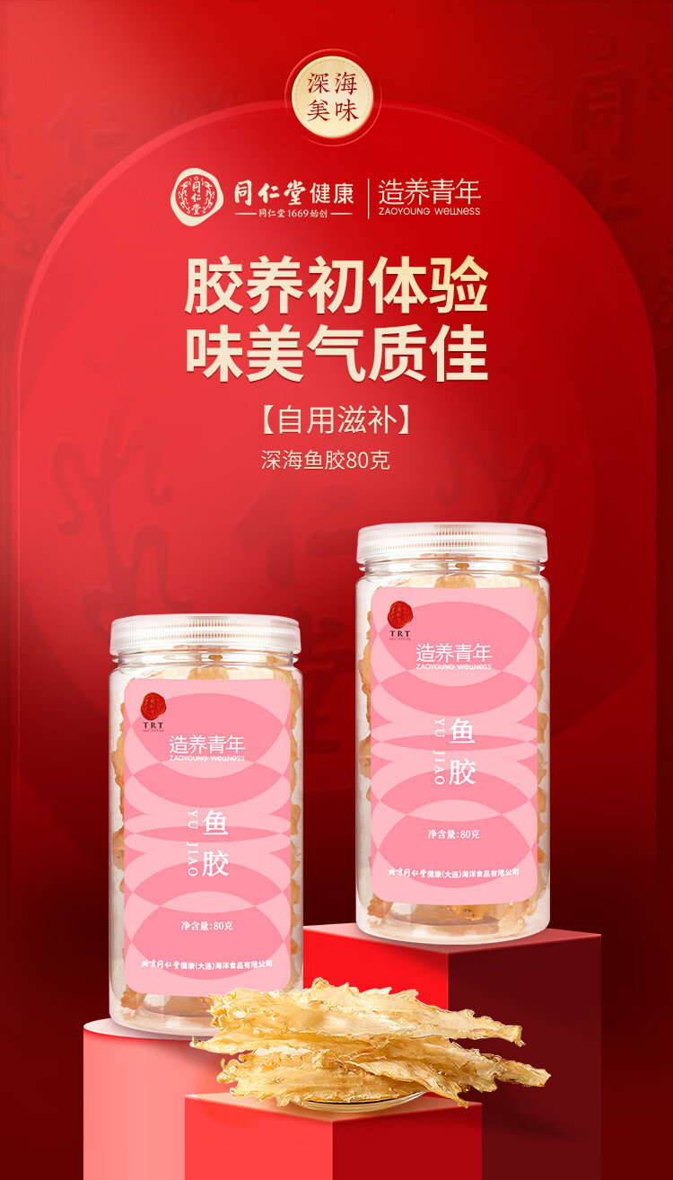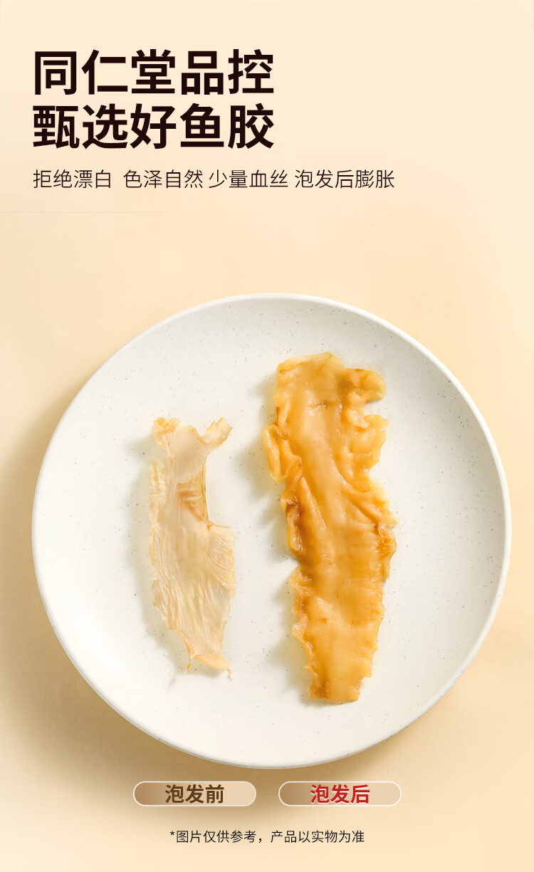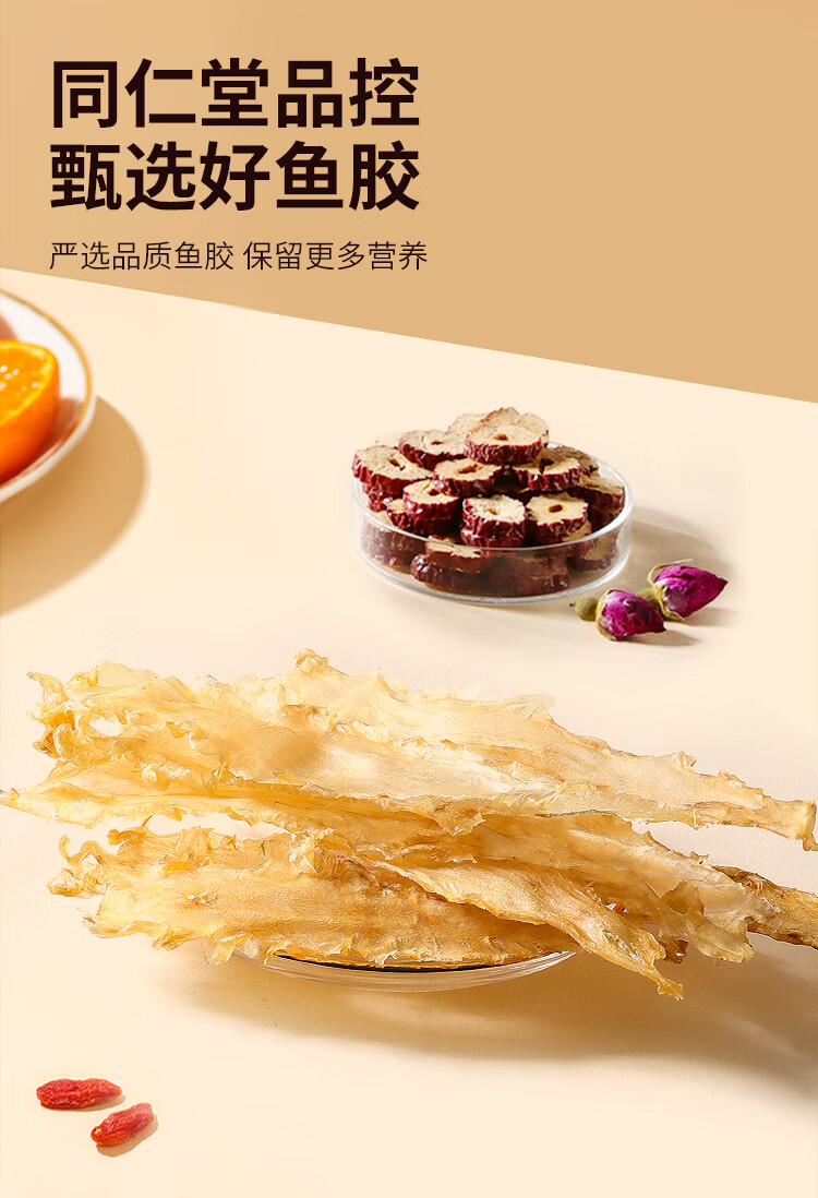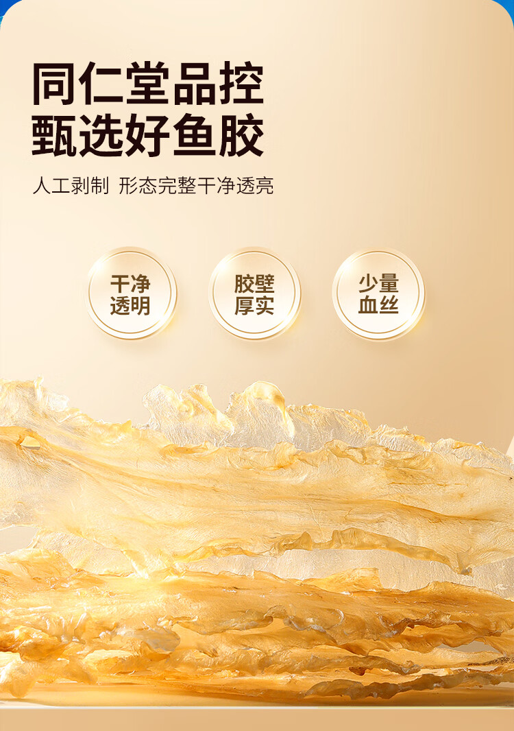 【正宗同仁堂品牌】北京同仁堂 鱼胶80克(1.5-7克 /头)高蛋白质 严选优质大西洋海域 形态完整SY