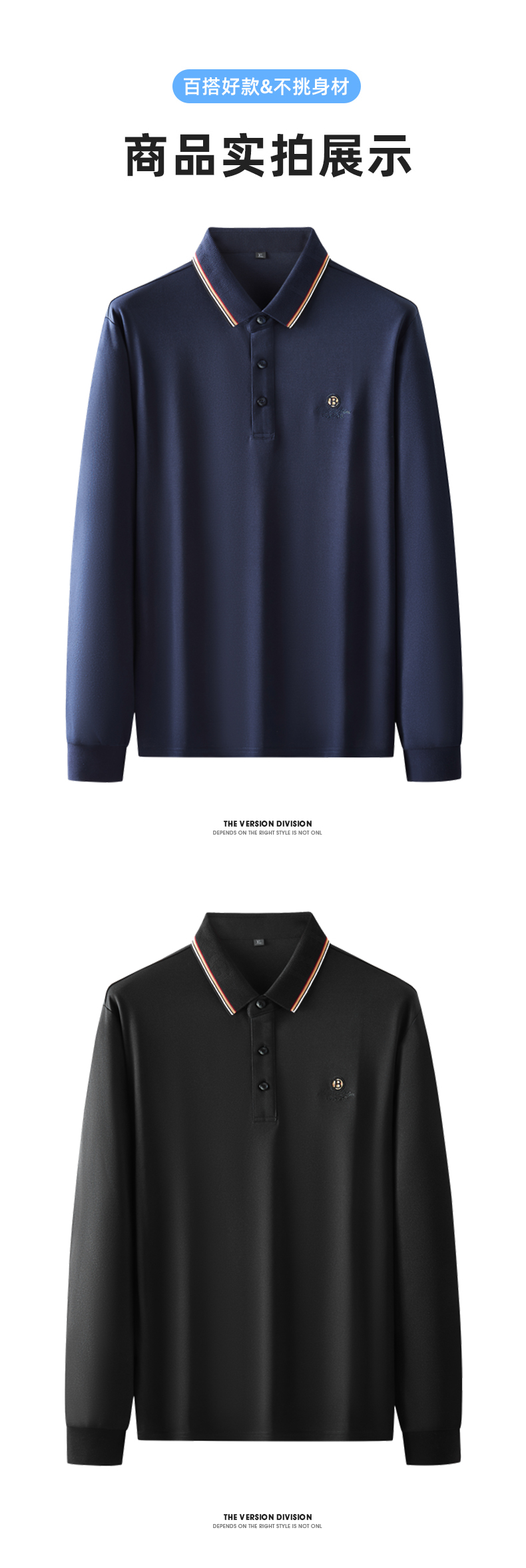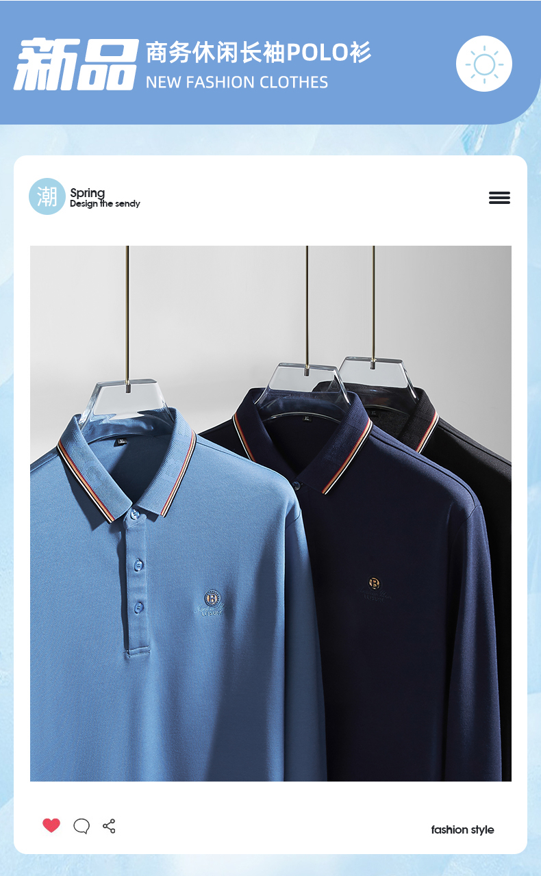 一口价【新款DK】大依优型大码刺绣长袖Polo衫商务休闲绅士免烫翻领T恤胖子宽松男