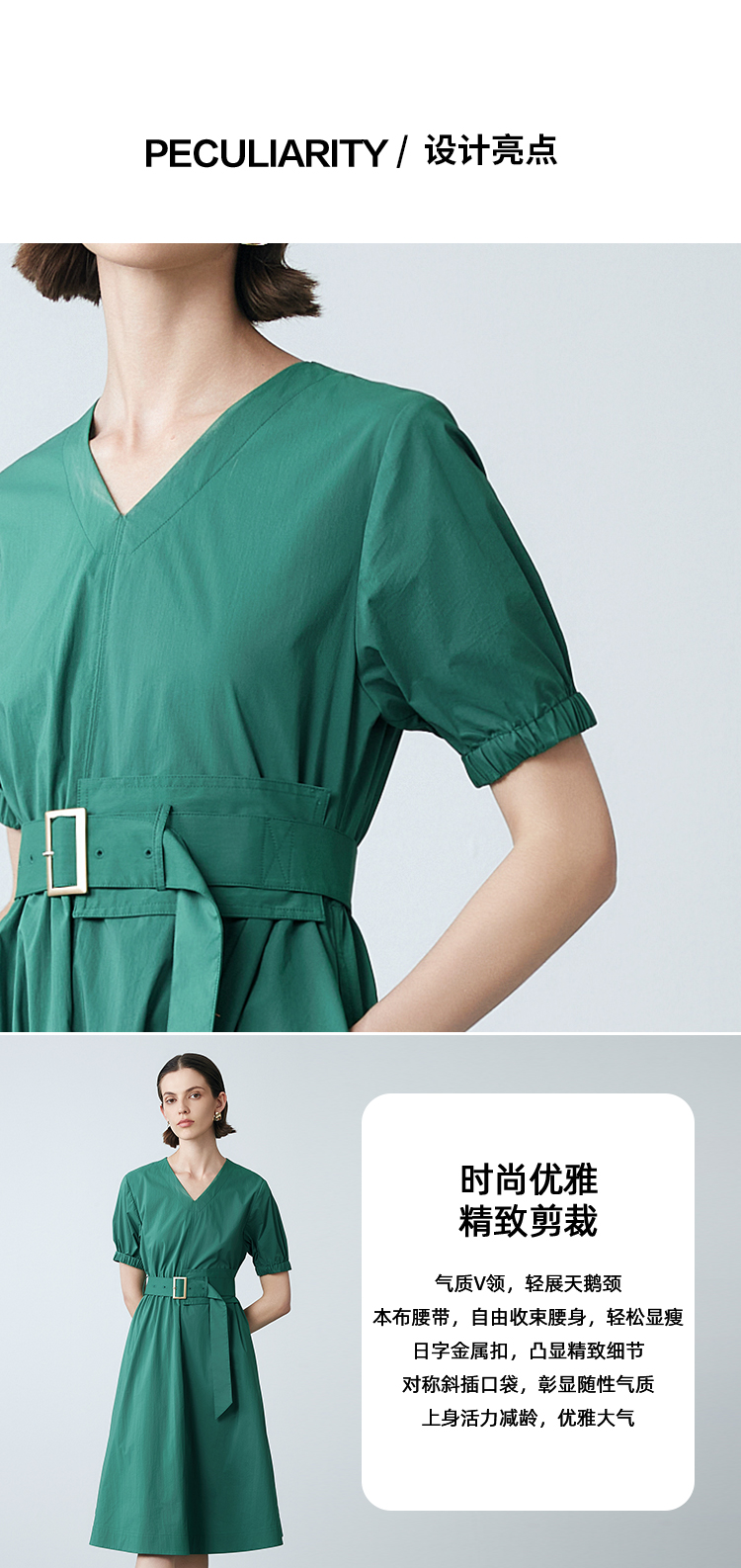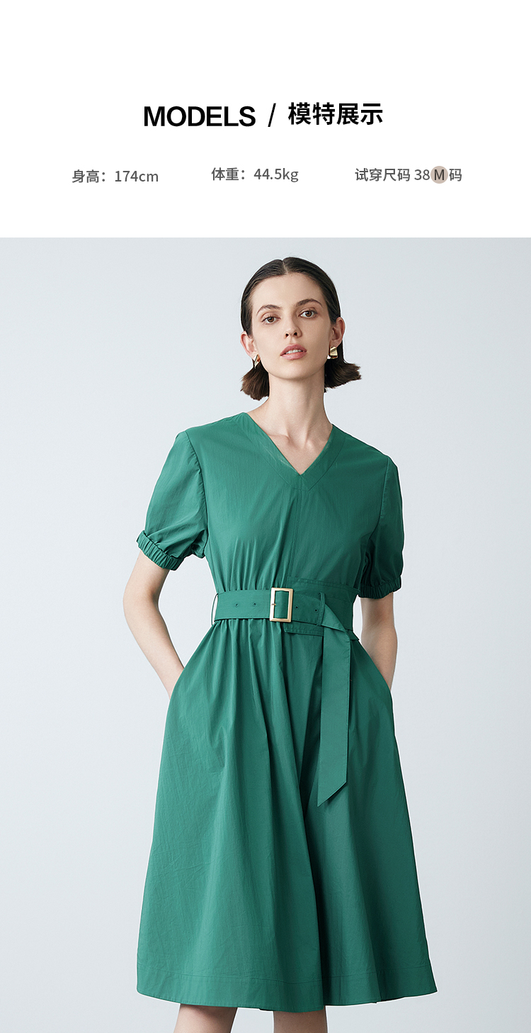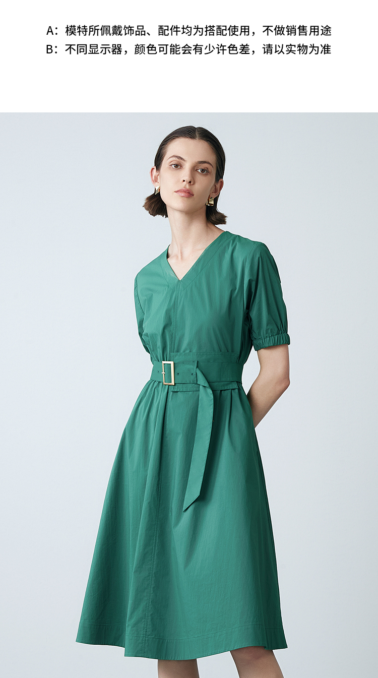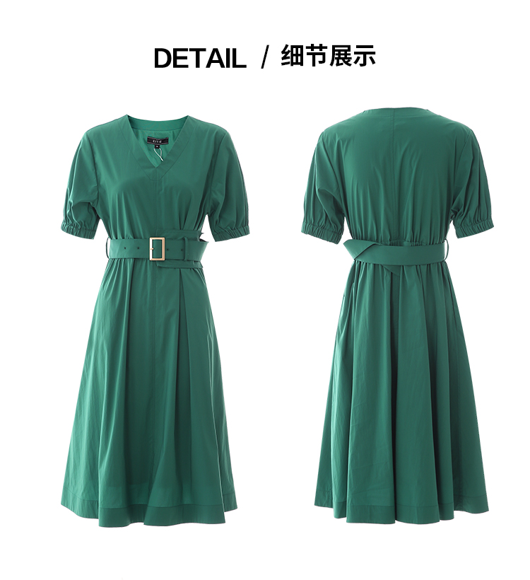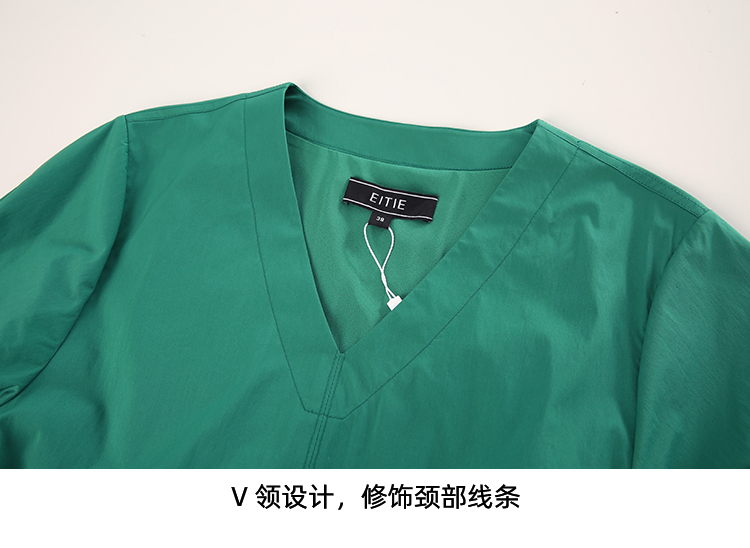 EITIE爱特爱夏季新款气质V领高腰显瘦通勤a字连衣裙7807540