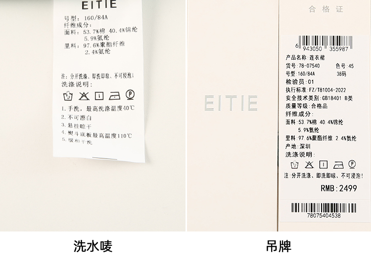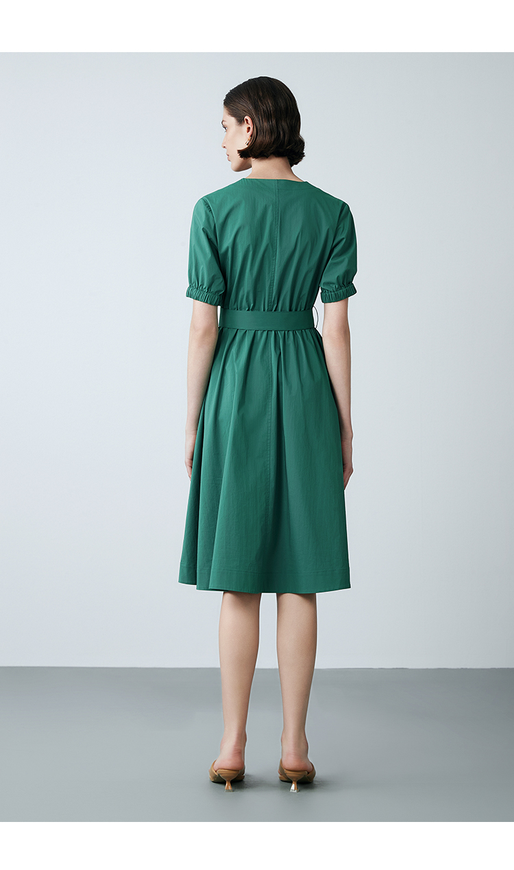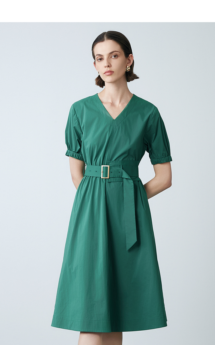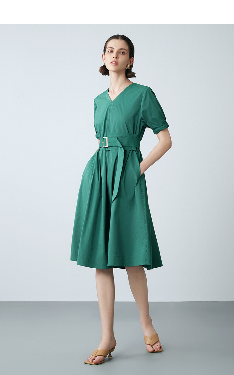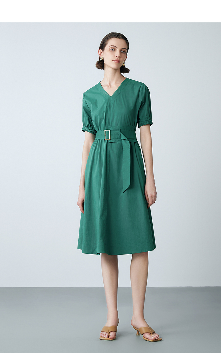 EITIE爱特爱夏季新款气质V领高腰显瘦通勤a字连衣裙7807540