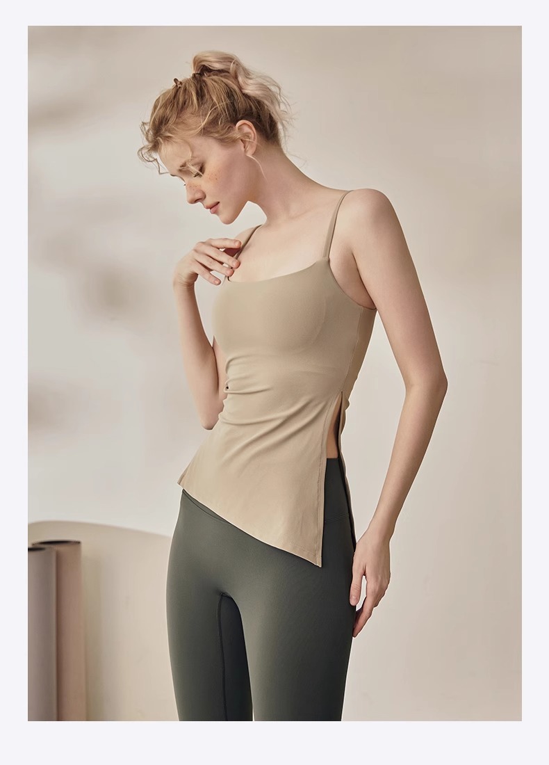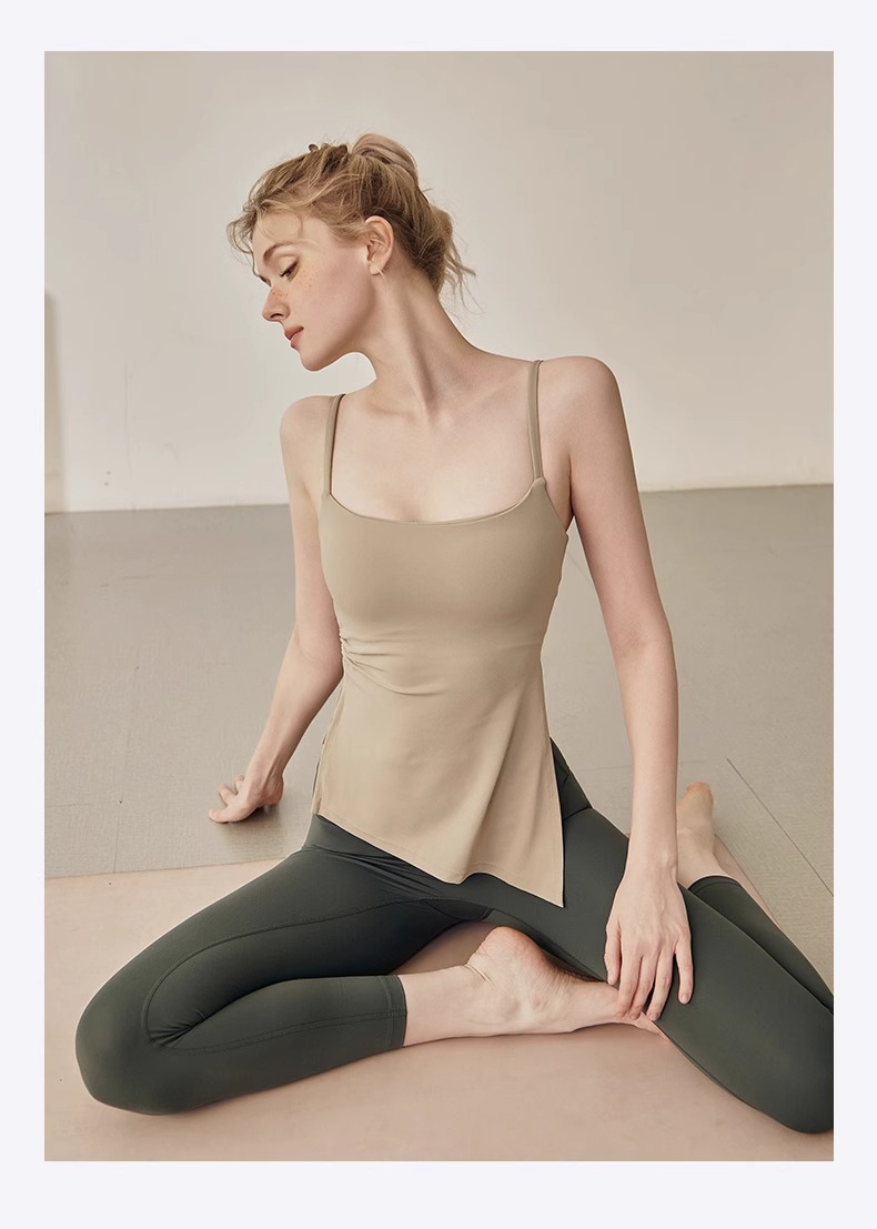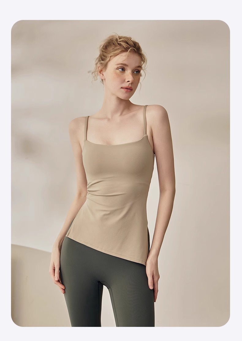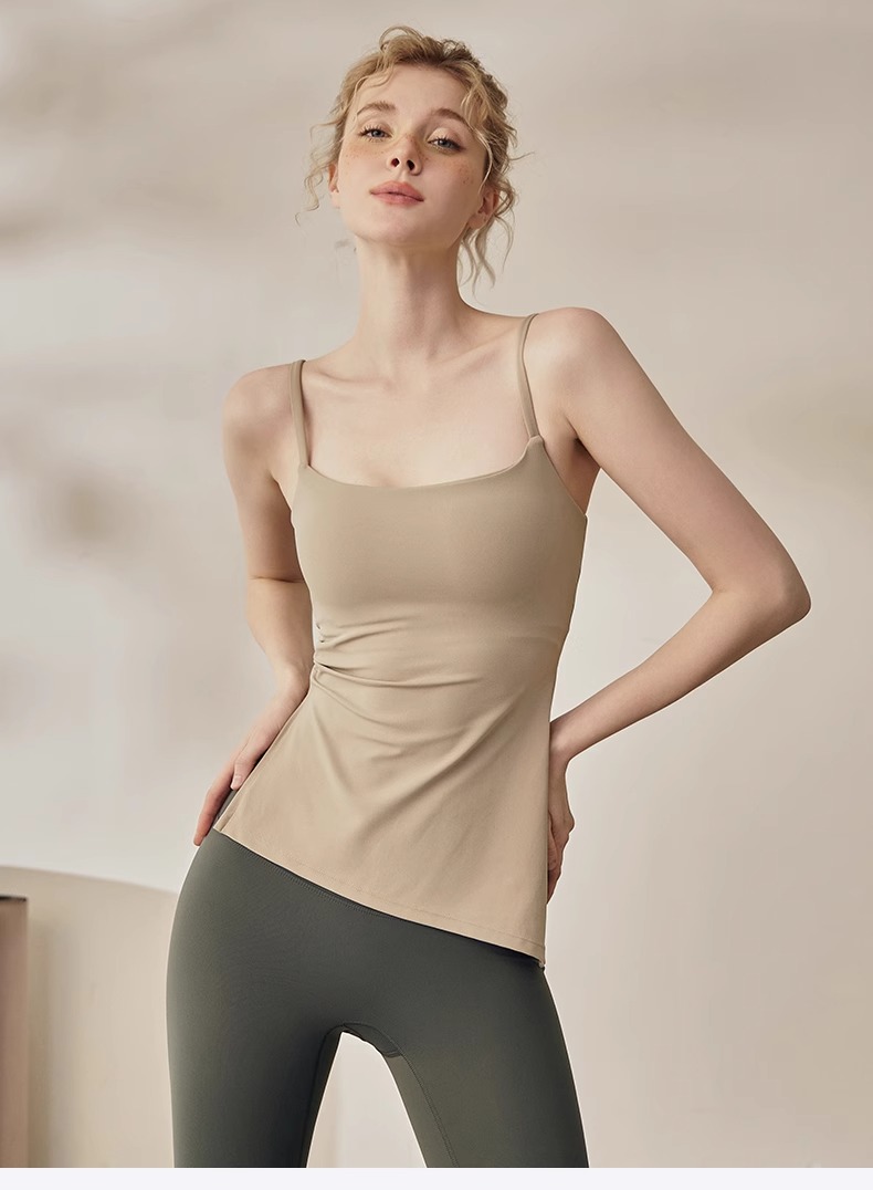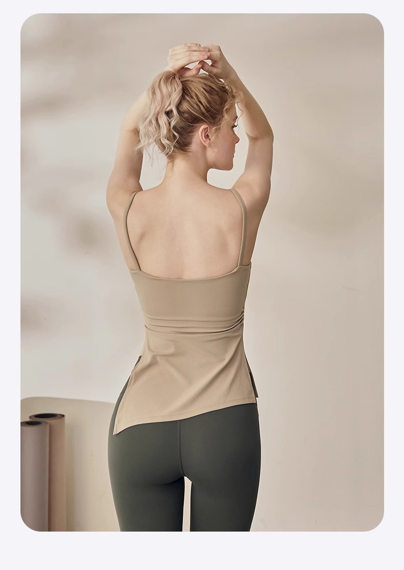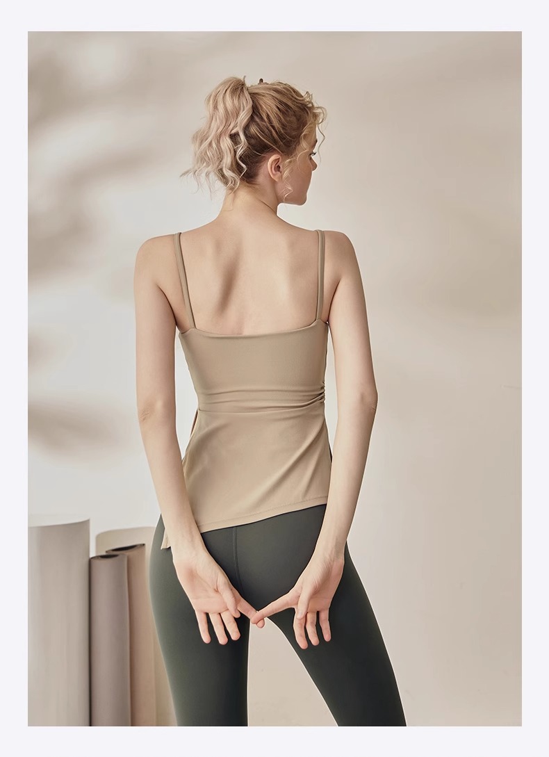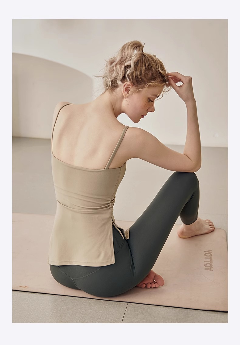 跃牌【海听系列】裸感抽绳打褶瑜伽服女固定胸垫吊带运动背心夏MZ71