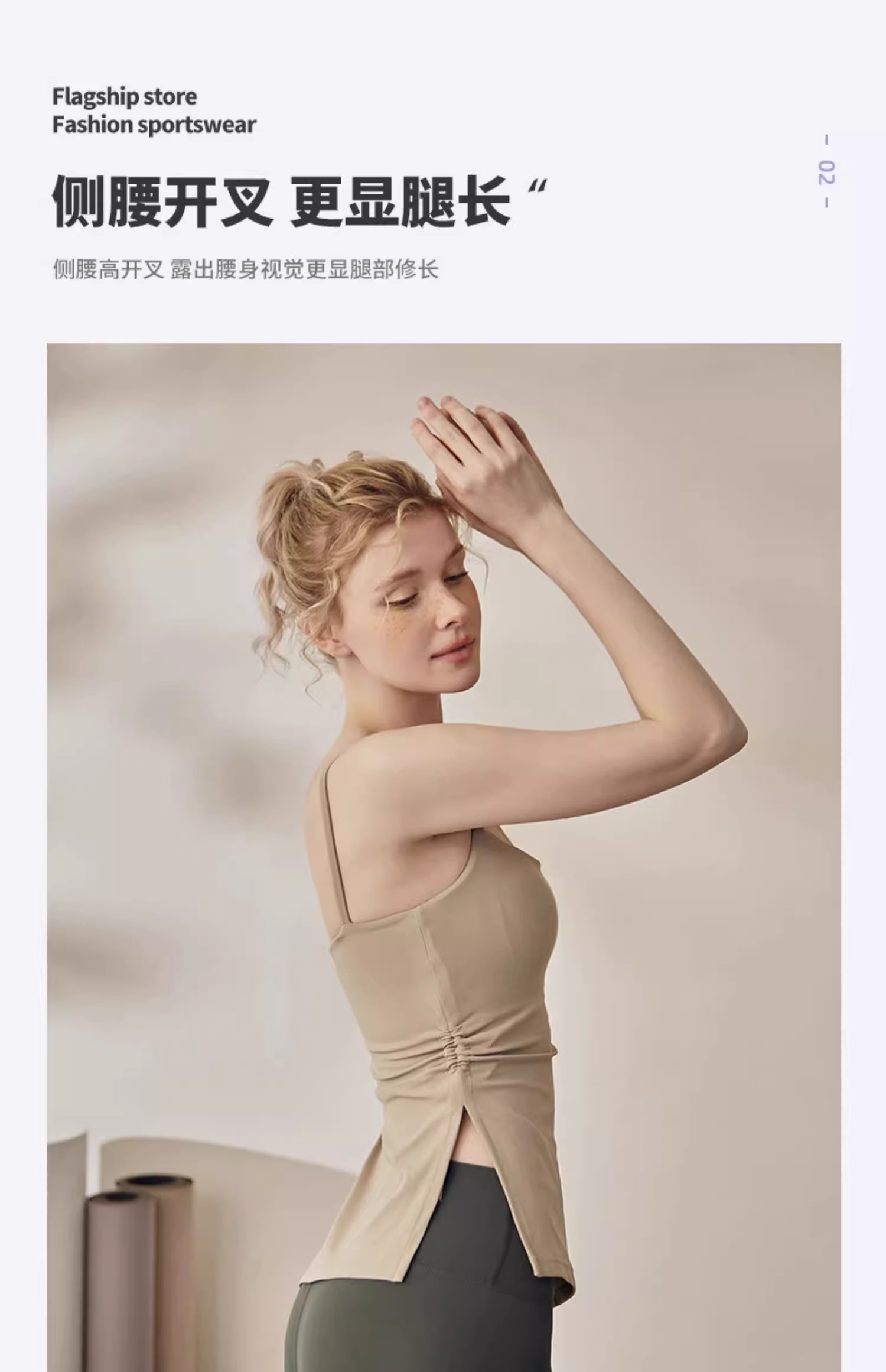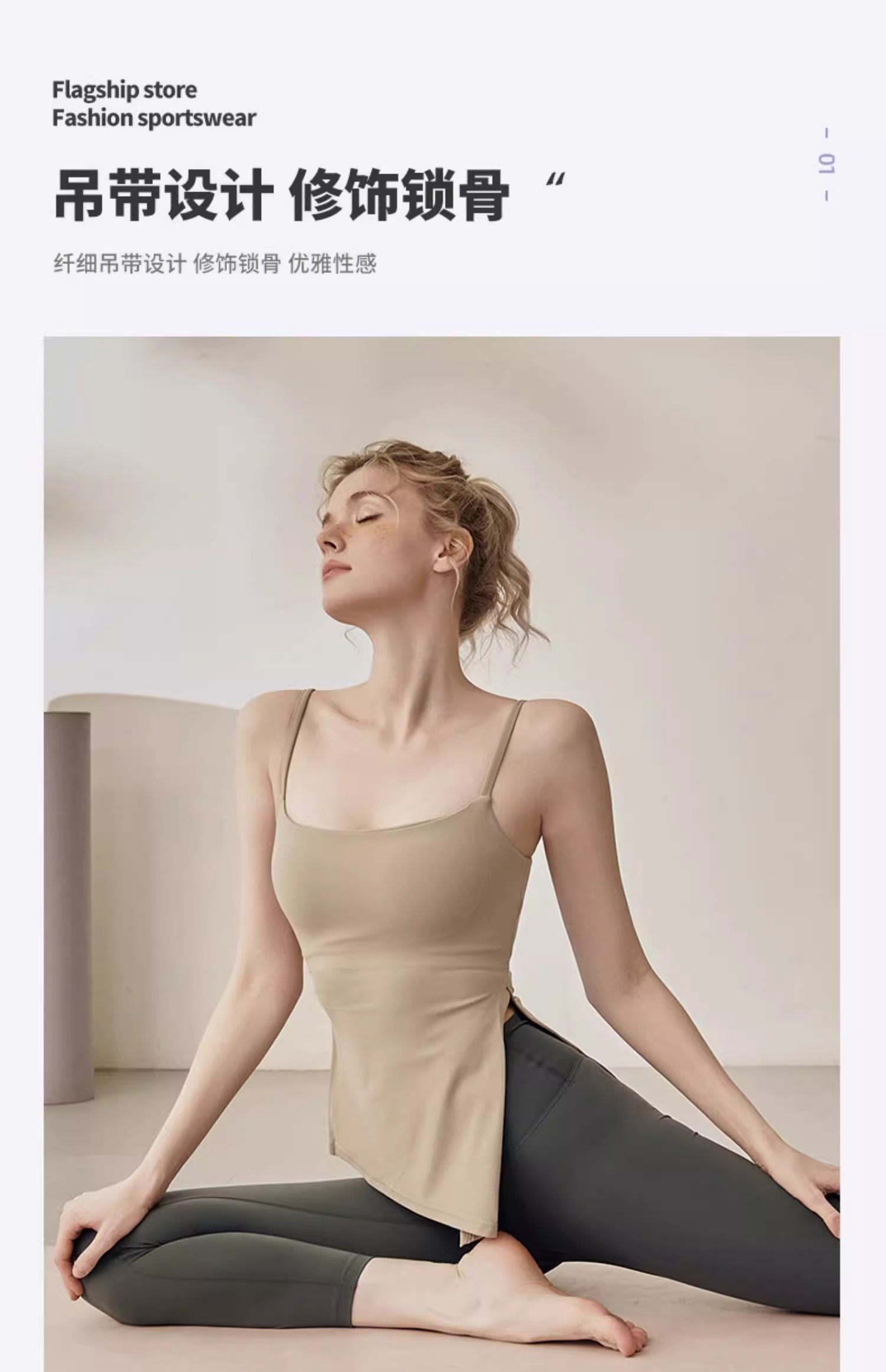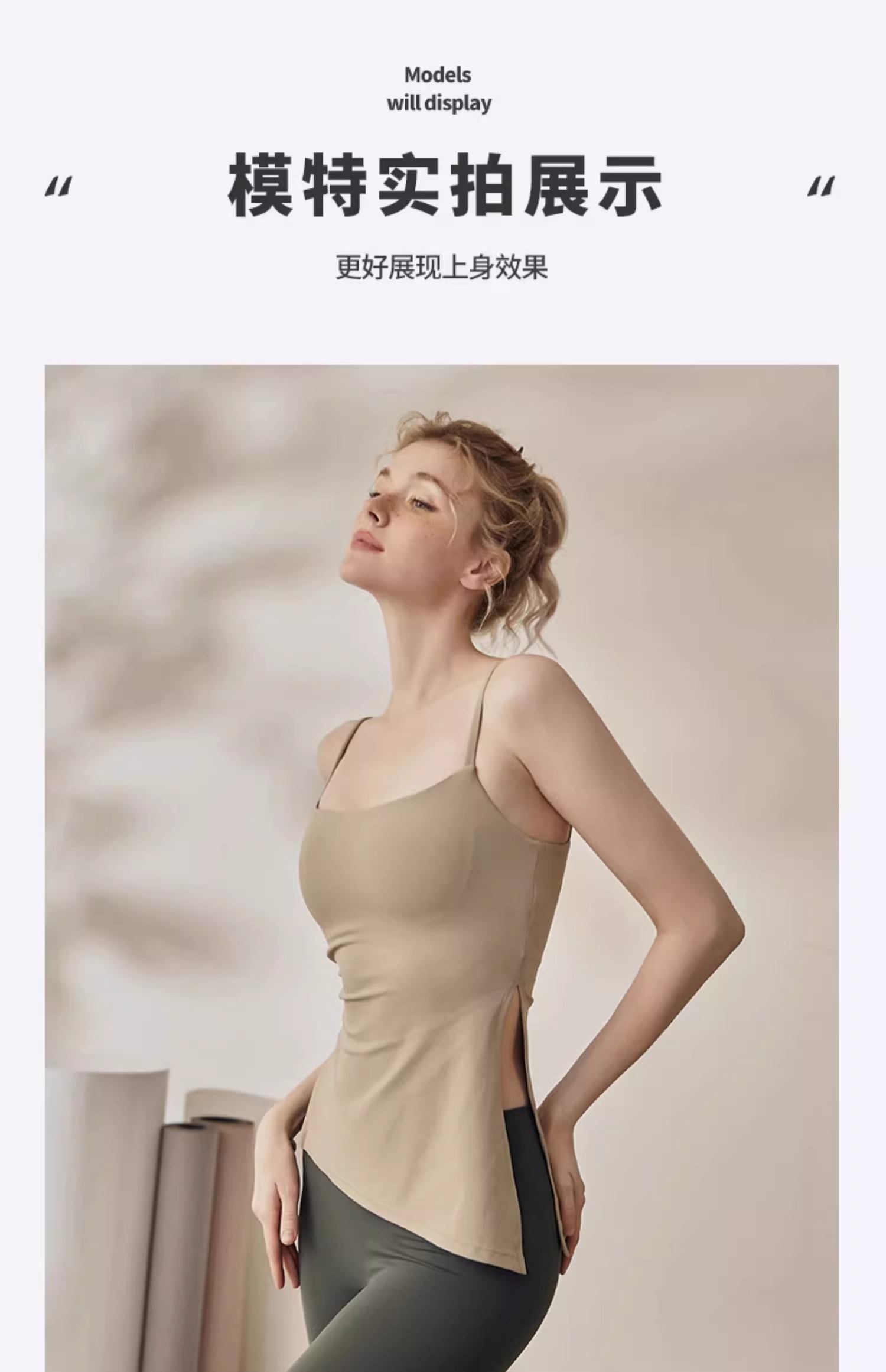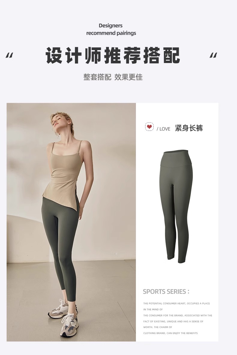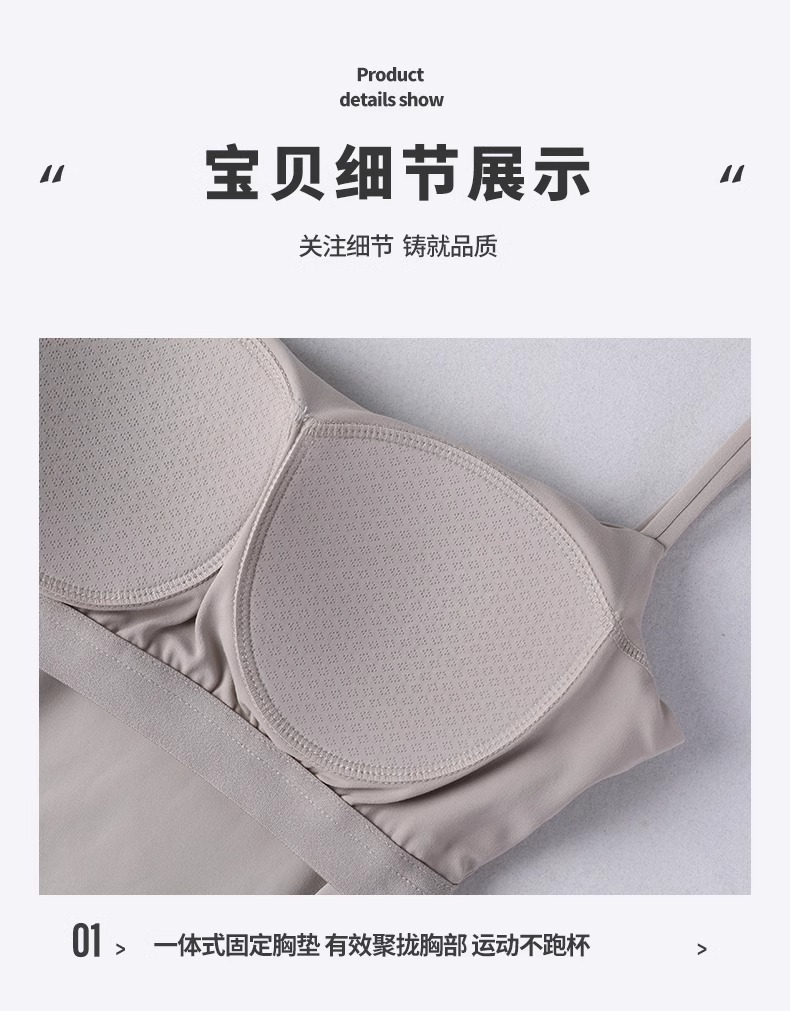 跃牌【海听系列】裸感抽绳打褶瑜伽服女固定胸垫吊带运动背心夏MZ71