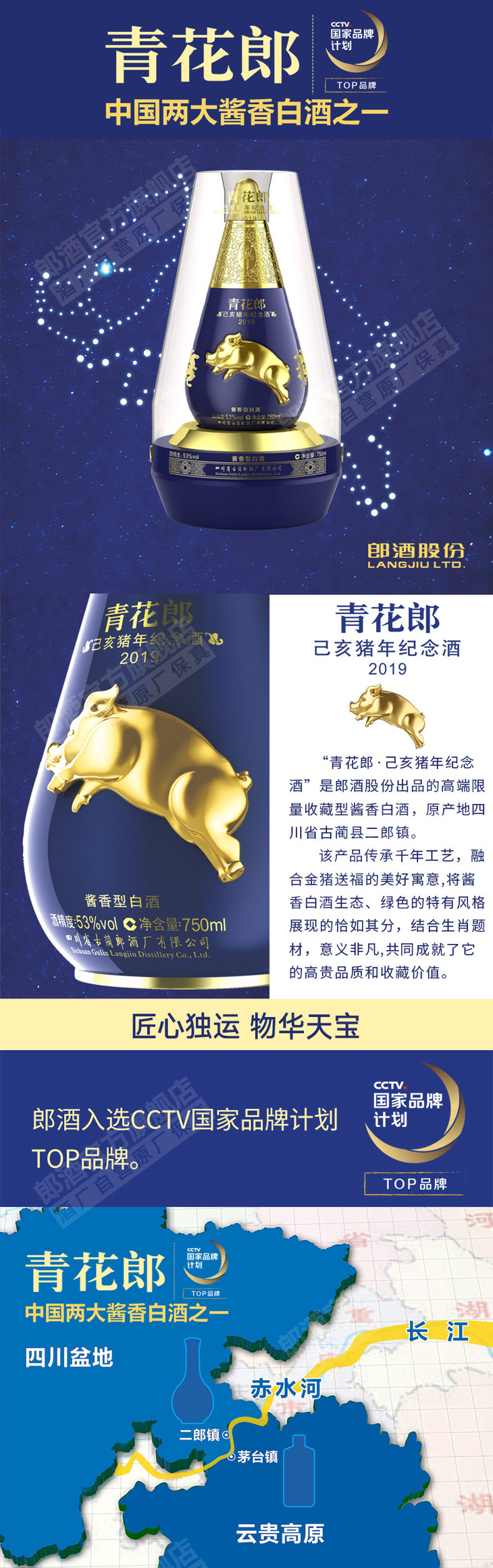 【推荐】郎酒 青花郎猪年纪念酒 53度750ml 酱香型白酒 限量发售