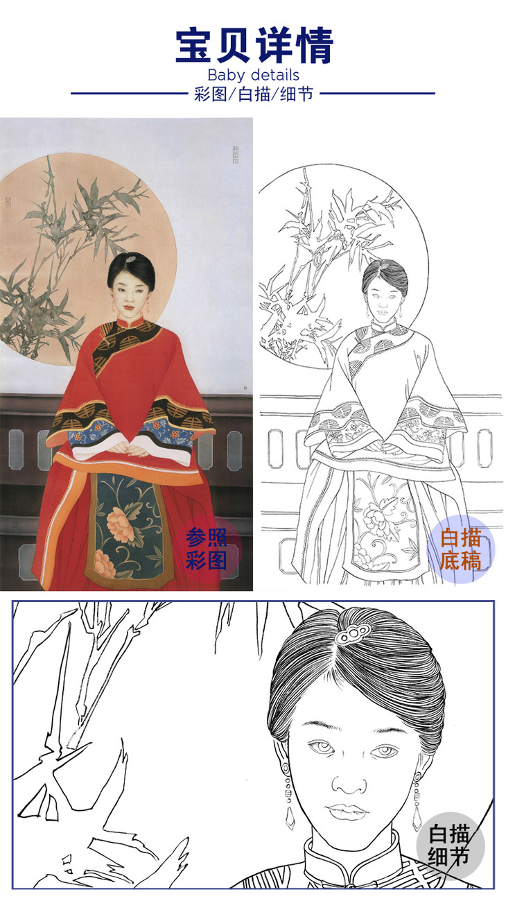崔景哲竖幅工笔现代仕女人物白描底稿-B025