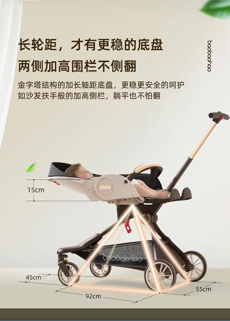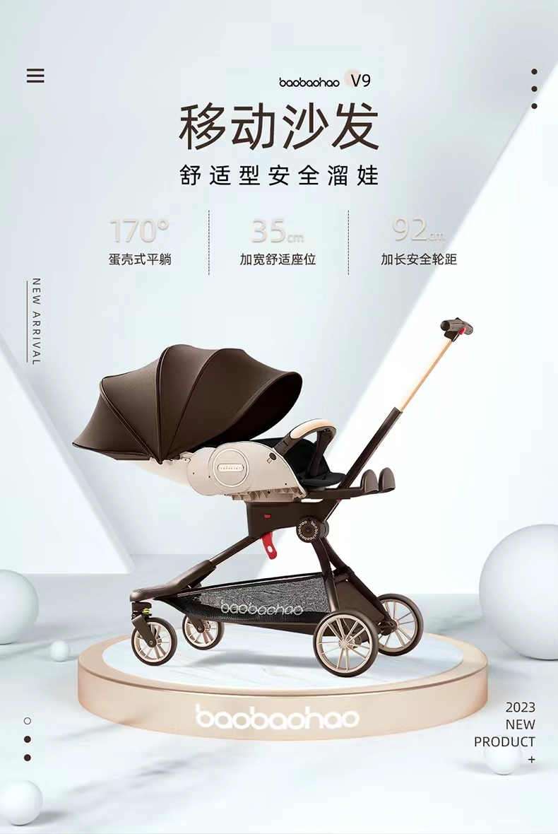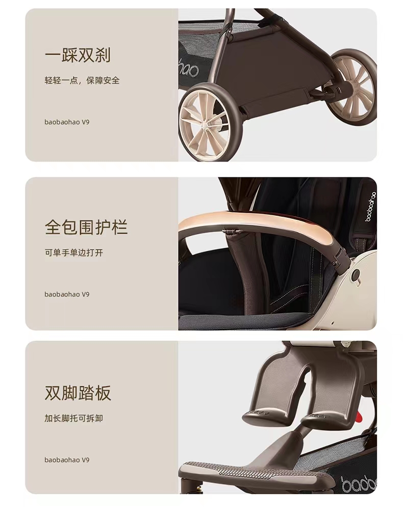 宝宝好v9遛娃双向婴儿推车可坐躺睡轻便折叠手推车高景观溜娃神器