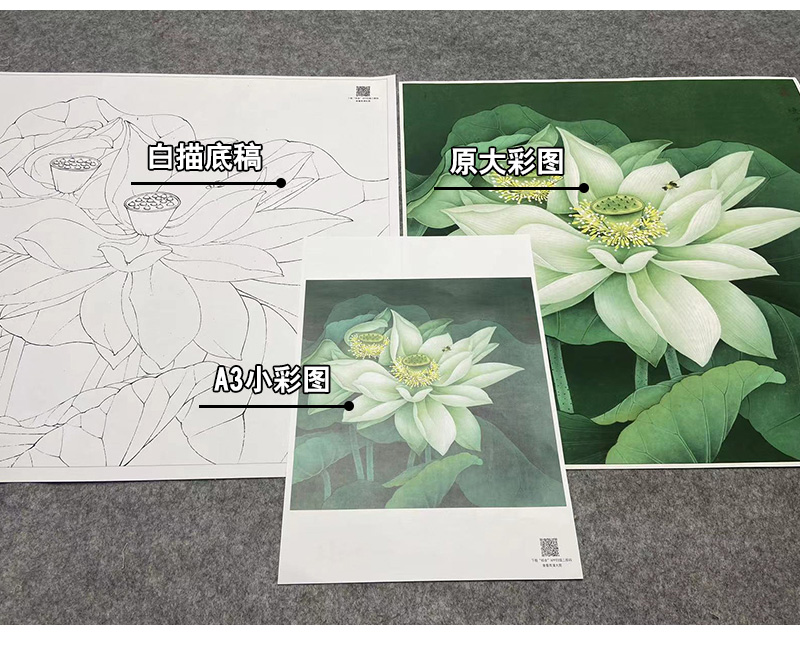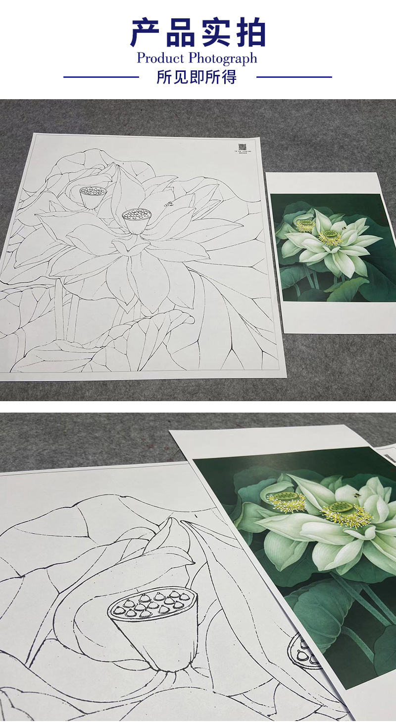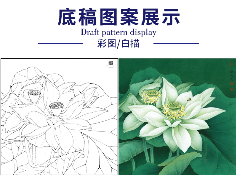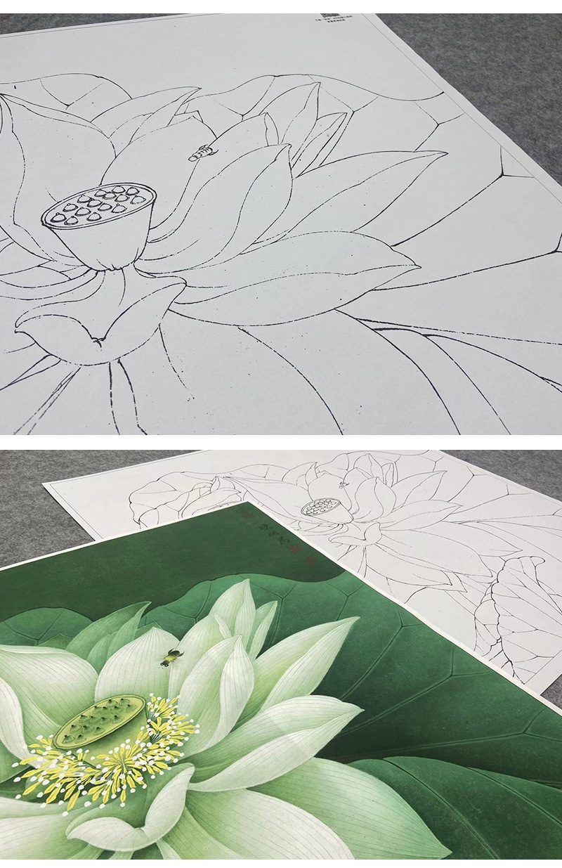 【大彩图】李晓明工笔画白描底稿斗方小品《凝碧》荷花临摹勾线花鸟线稿K091