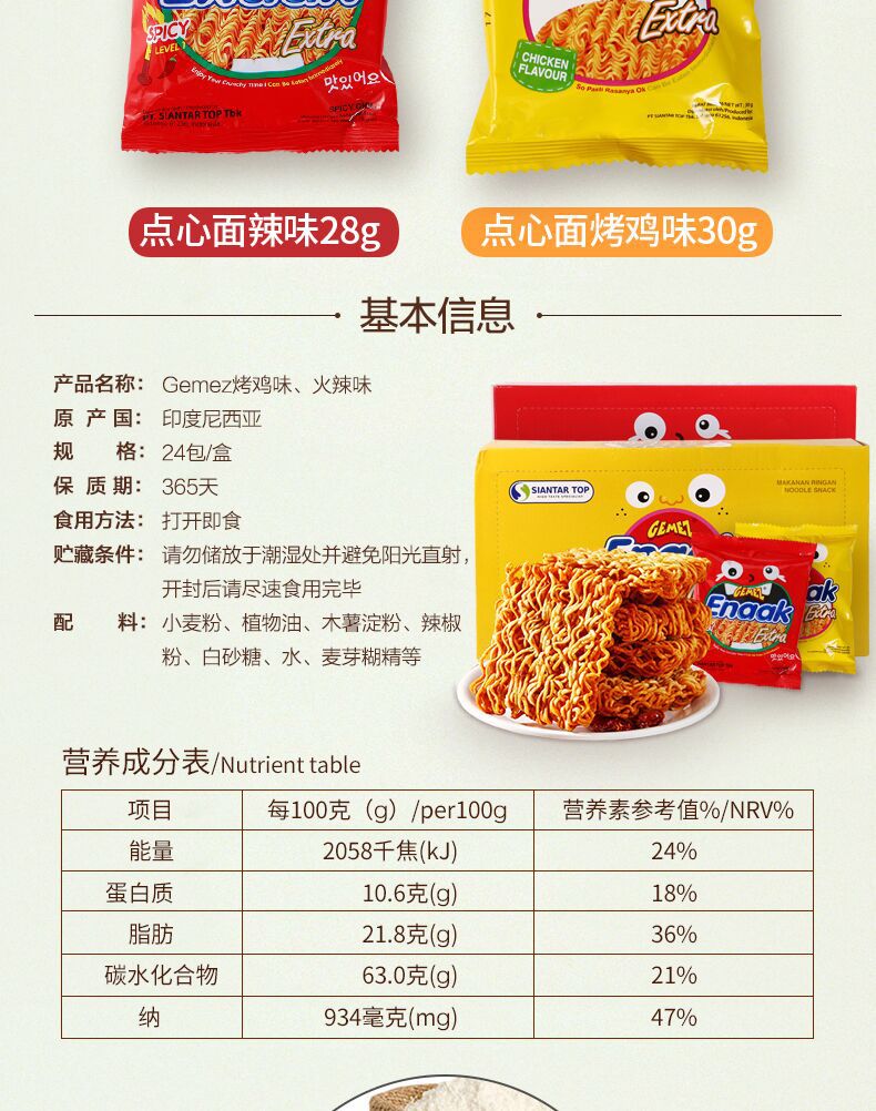 GEMEZ香辣小鸡面24包 印尼进口 休闲零食干吃点心面整箱批发