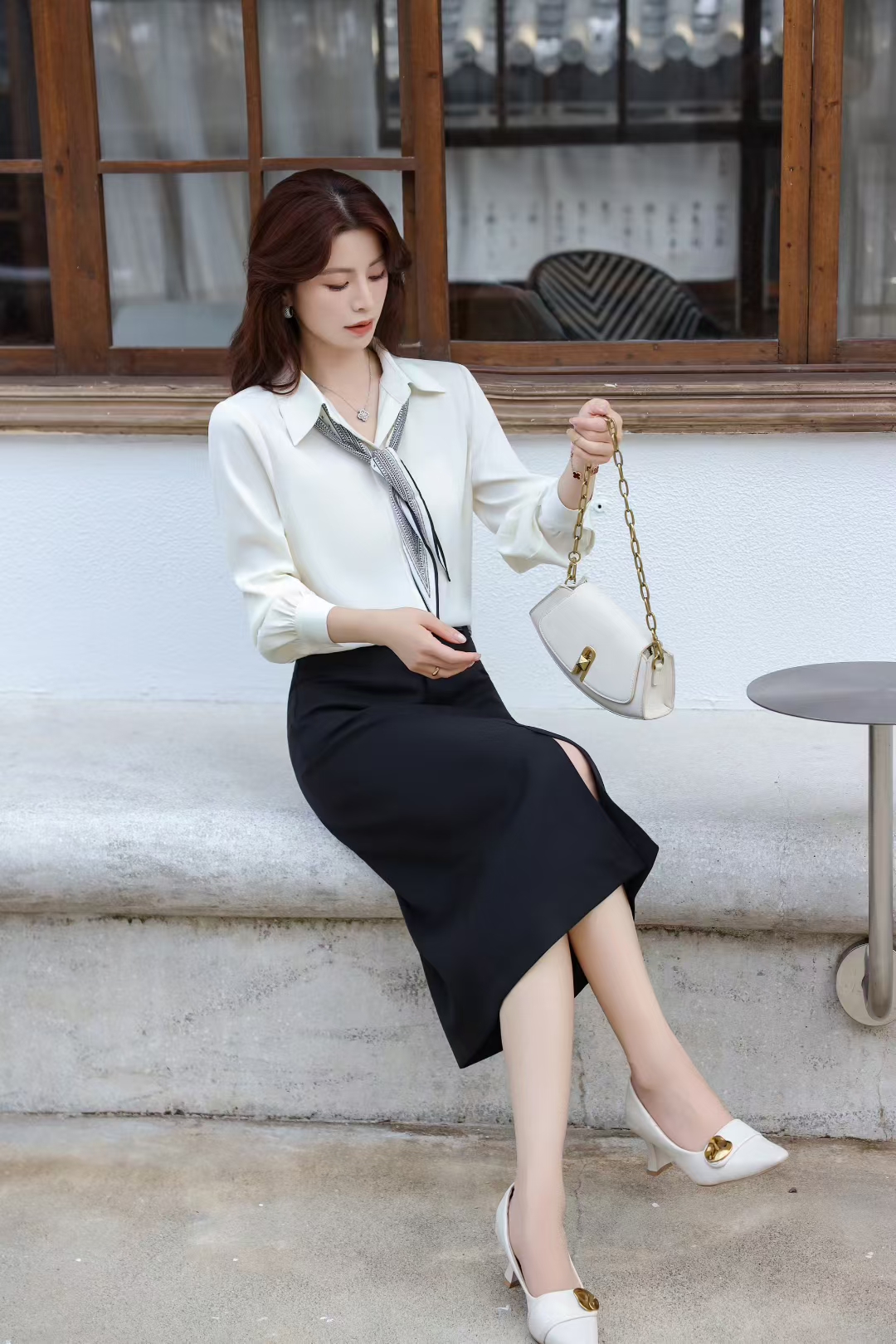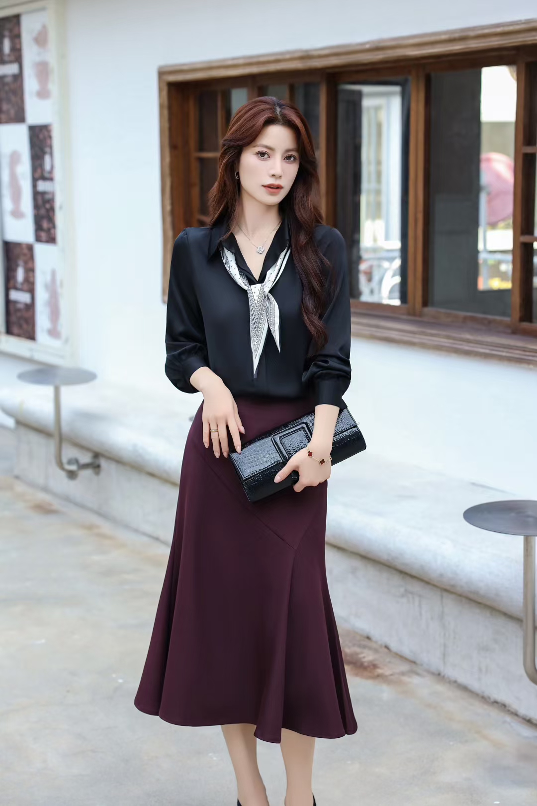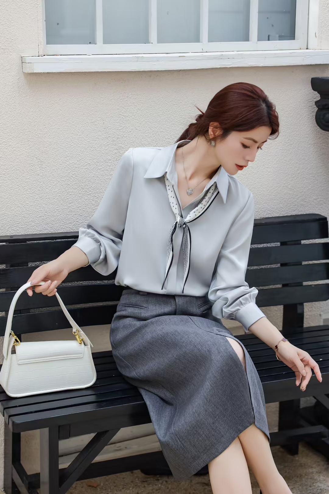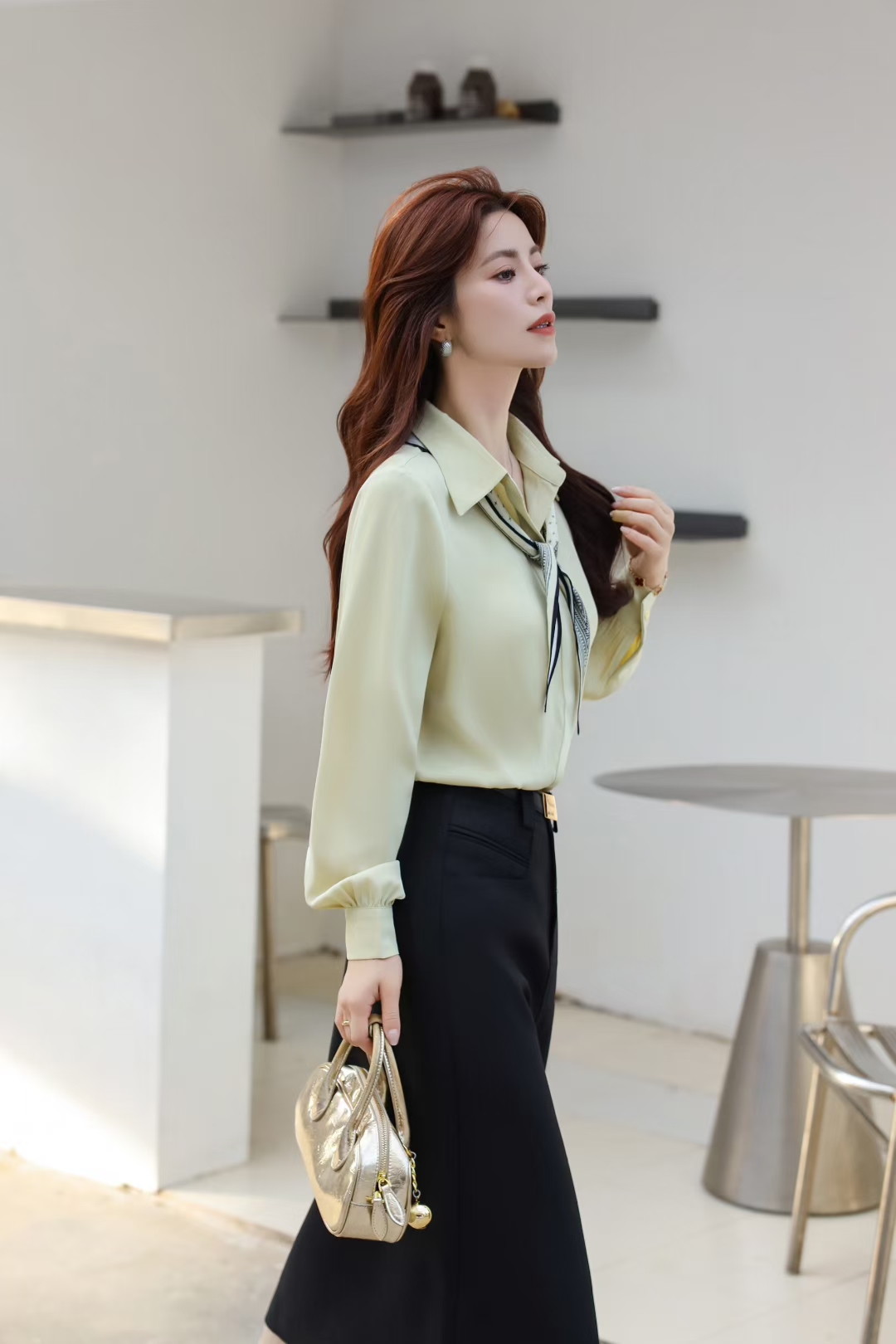 「自」全新升级【铂金会员146/天猫199/差价53】(02222)洛诗琳法式复古飘带长袖衬衫2025新款秋季宽松通勤雪纺上衣