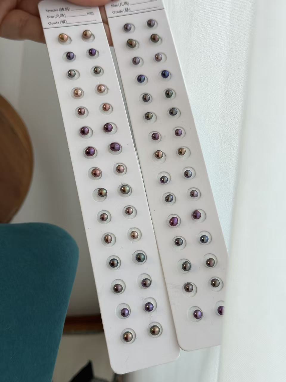 可以说每一对都是独一无二,不可复制的。超级美的颜色,ji光罕见淡水无核的珍珠哦~