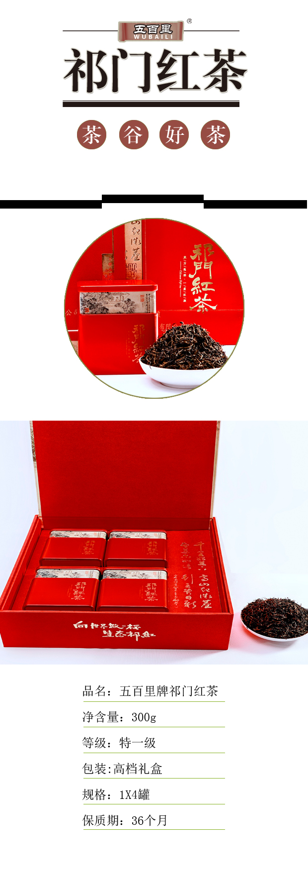 五百里 祁门红茶 特一级新茶 300g(4听x75g)