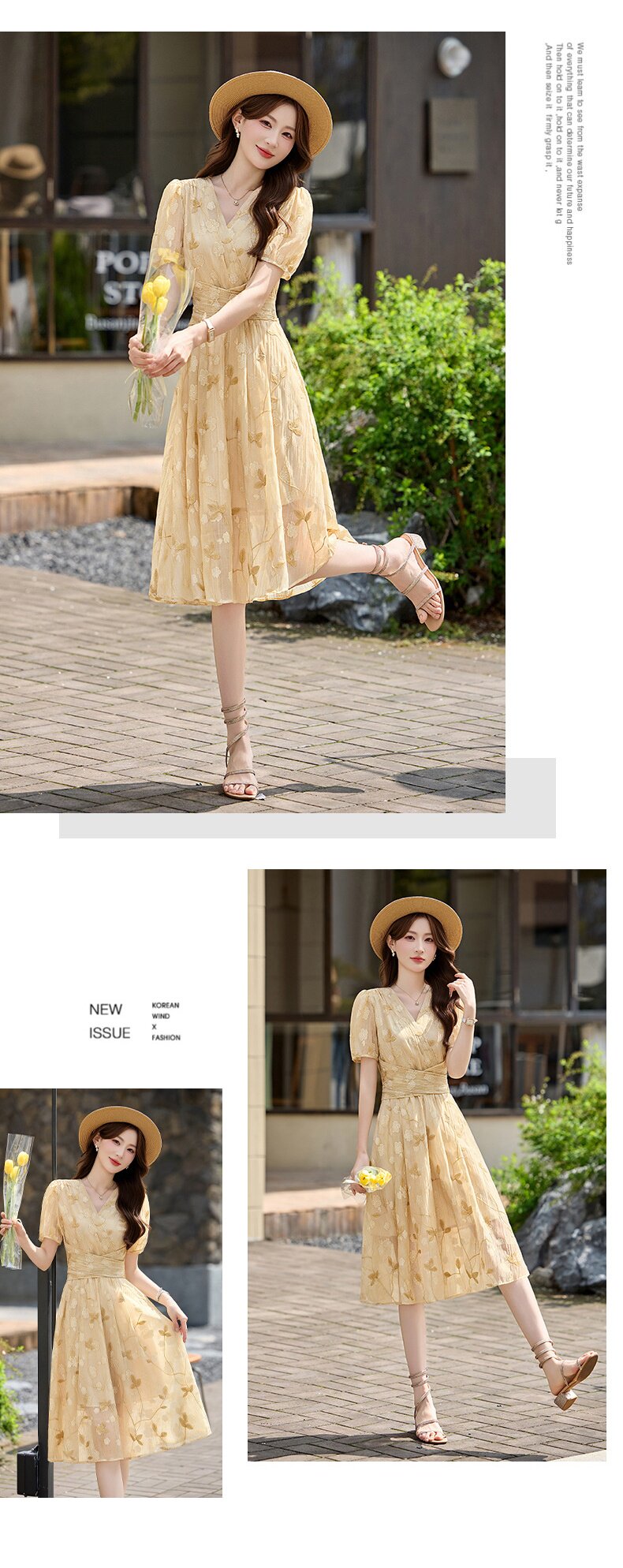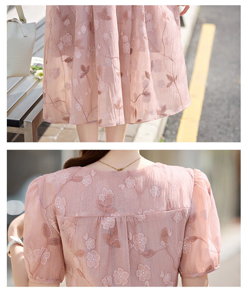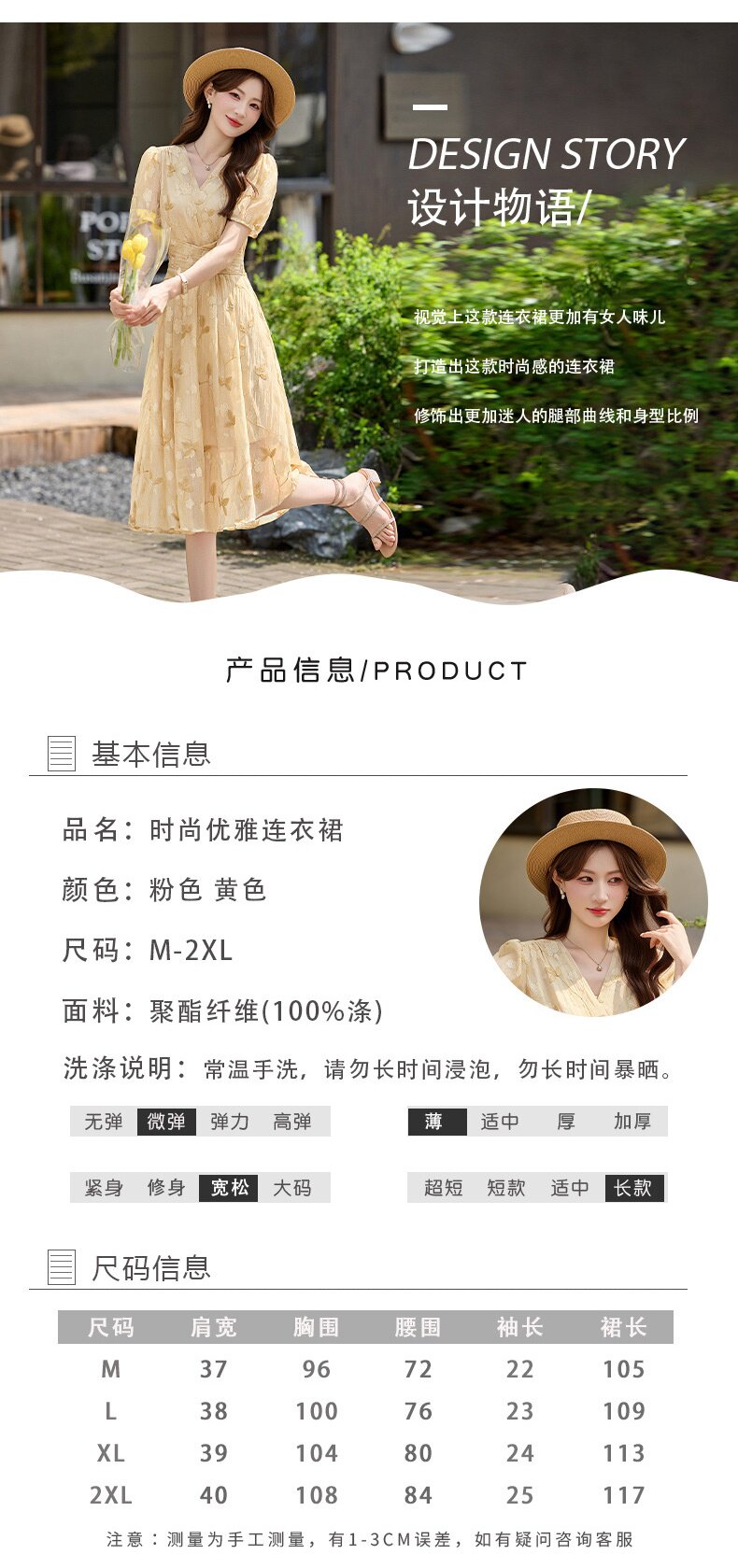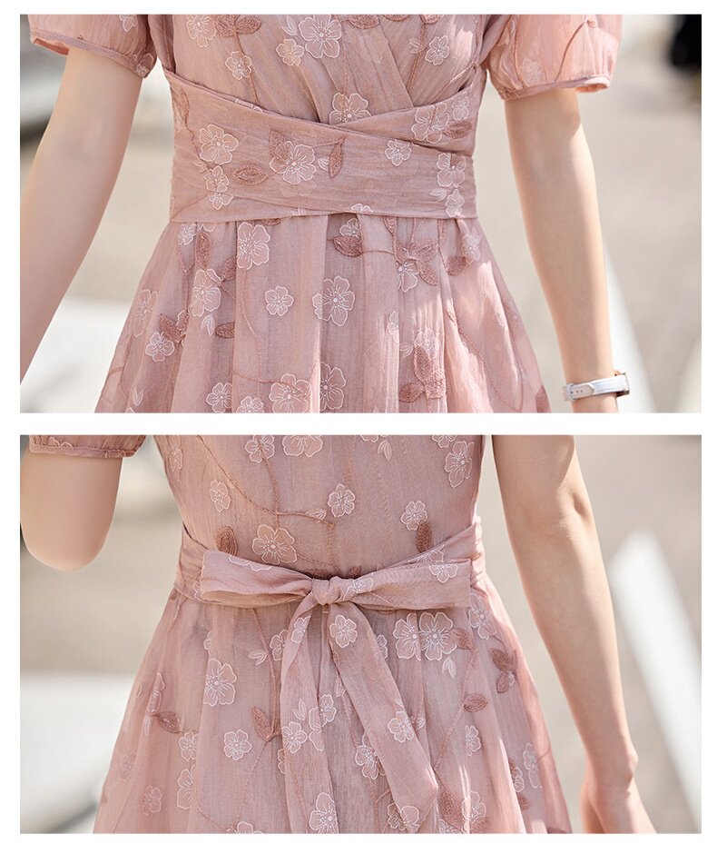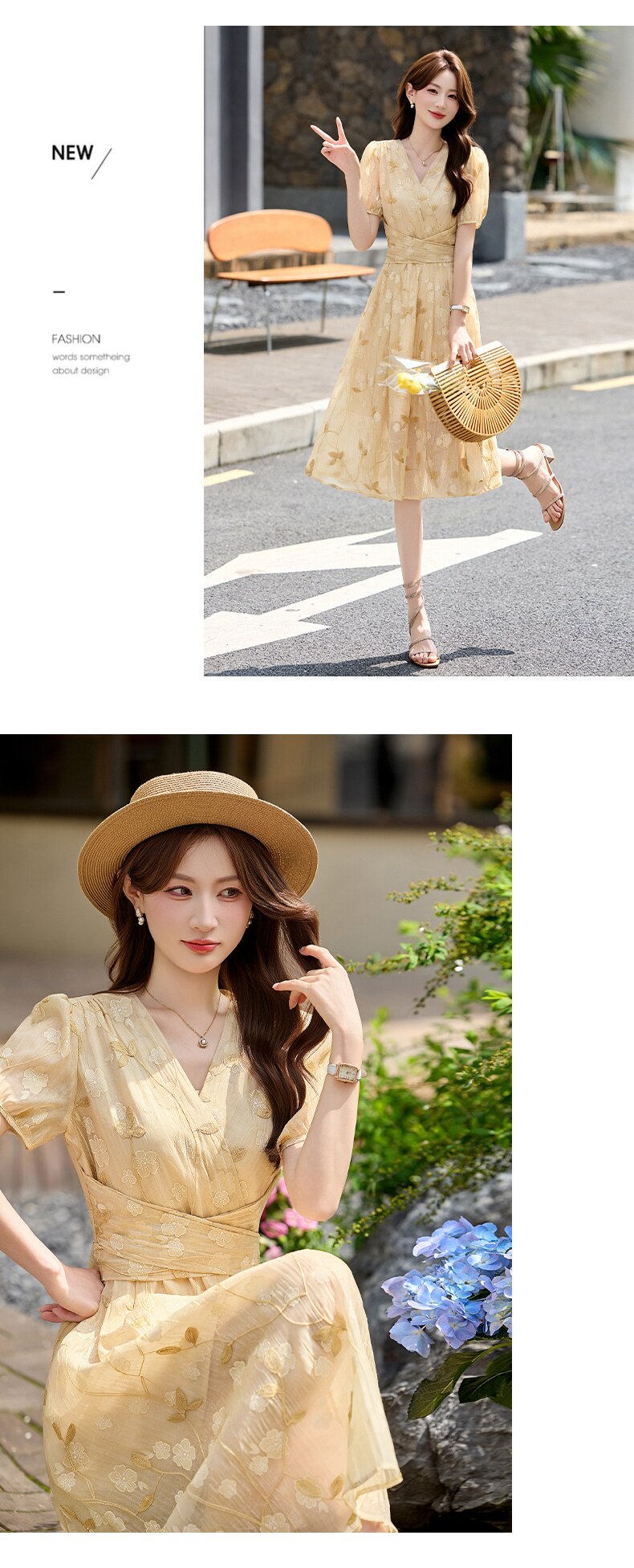 「自」全新升级【铂金会员257/天猫339/差价82】(15103)洛诗琳气质立体刺绣提花连衣裙女2026夏季新款V领收腰茶歇裙