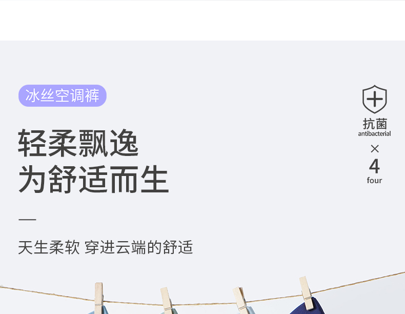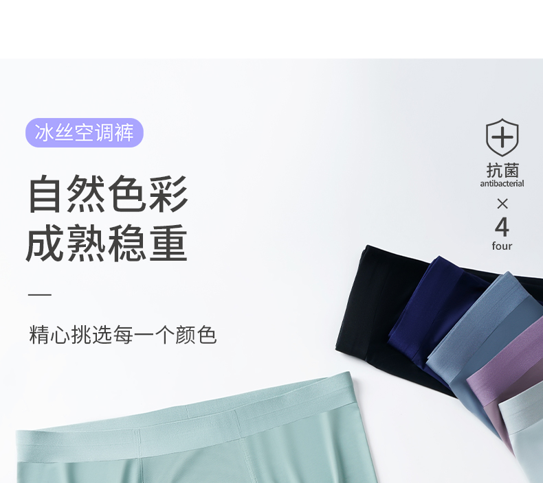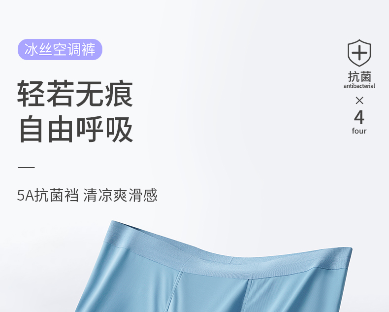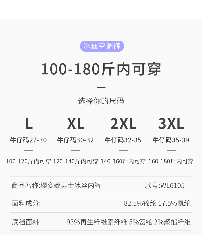 【轻若无痕 自由呼吸!】樱姿娜空气感男士内裤WL6105 轻薄柔软舒适 夏季冰丝凉感平角裤四角 礼盒4条装