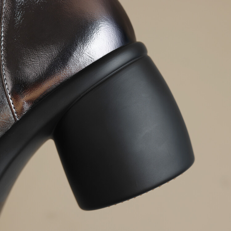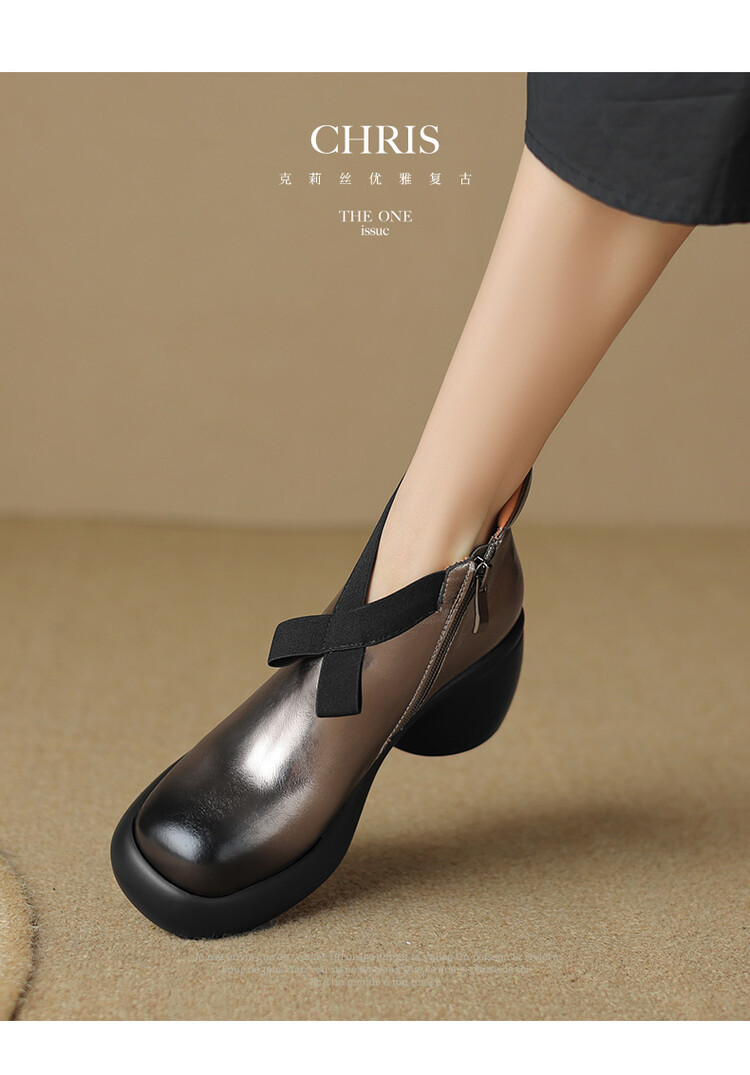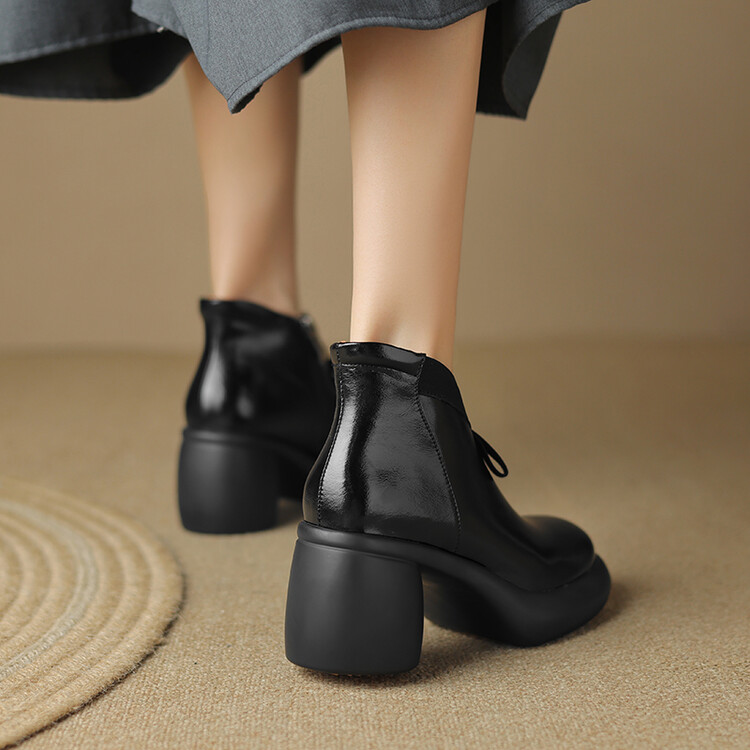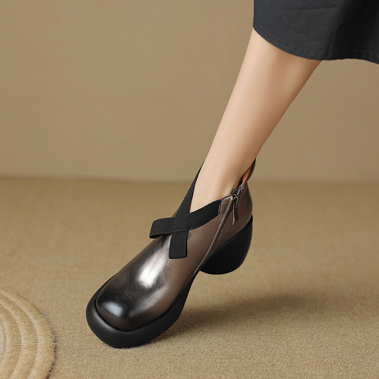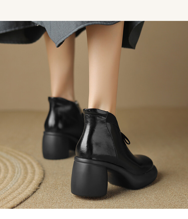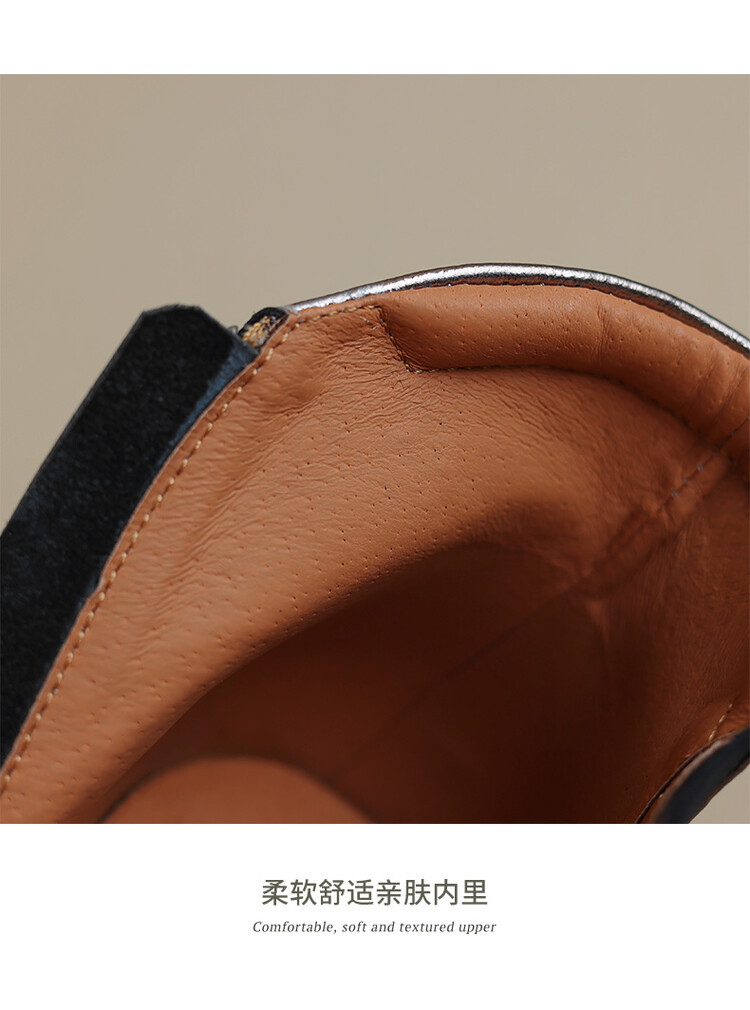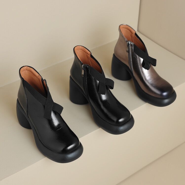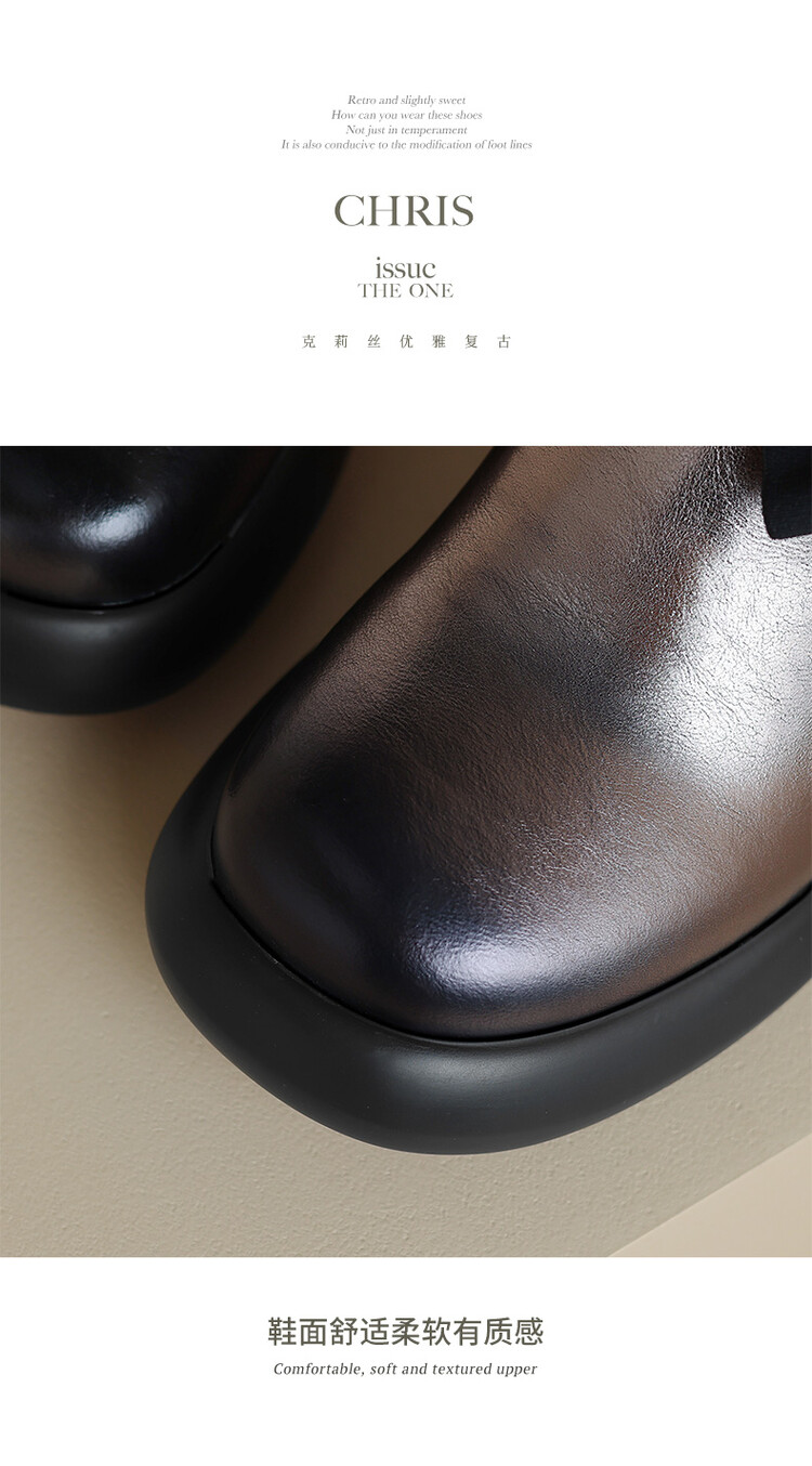 【预售5天】轻巧舒适圆头厚底蝴蝶结瘦瘦靴,真皮气质枪色粗跟高跟鞋短靴MDY&M508-3