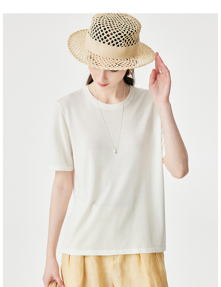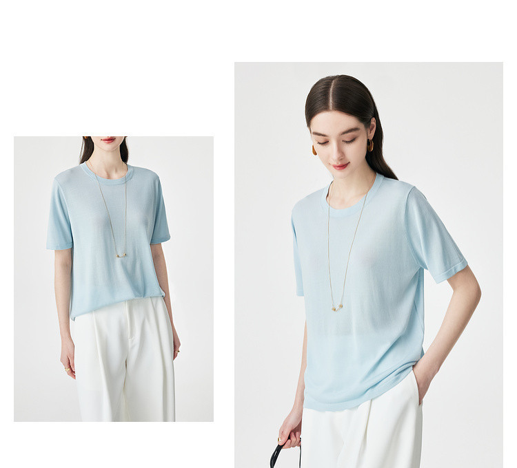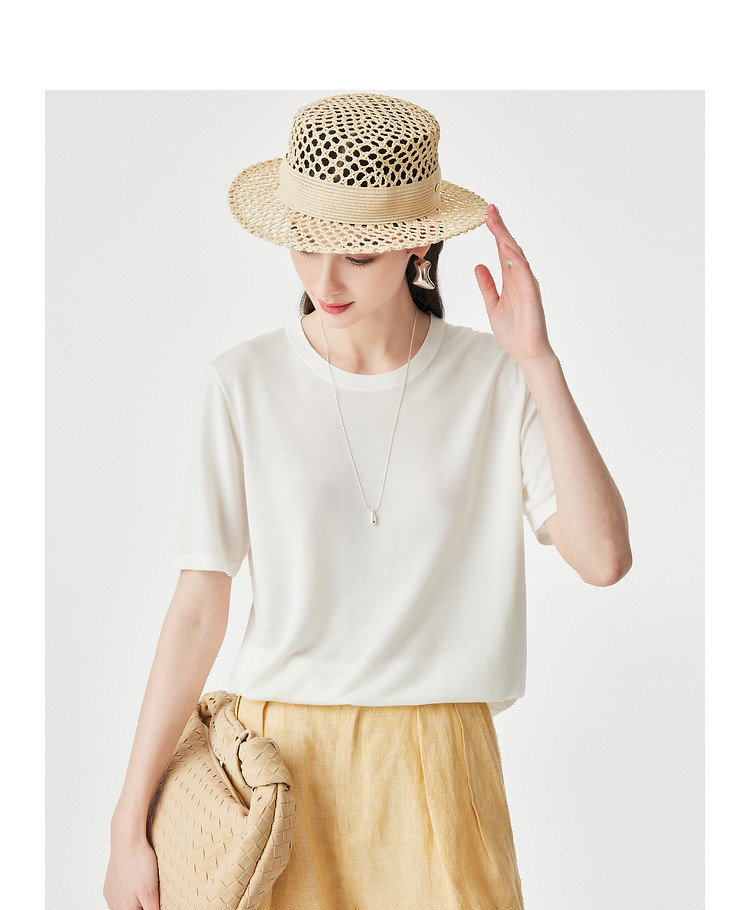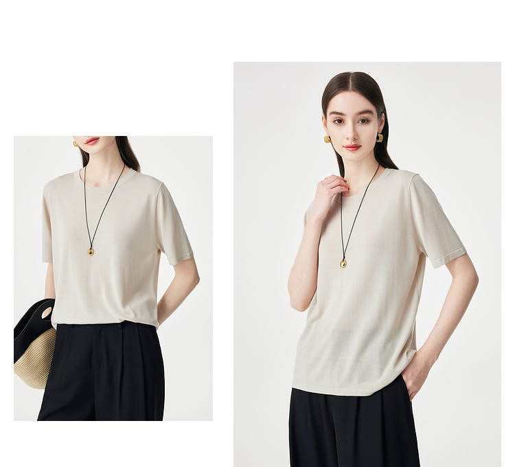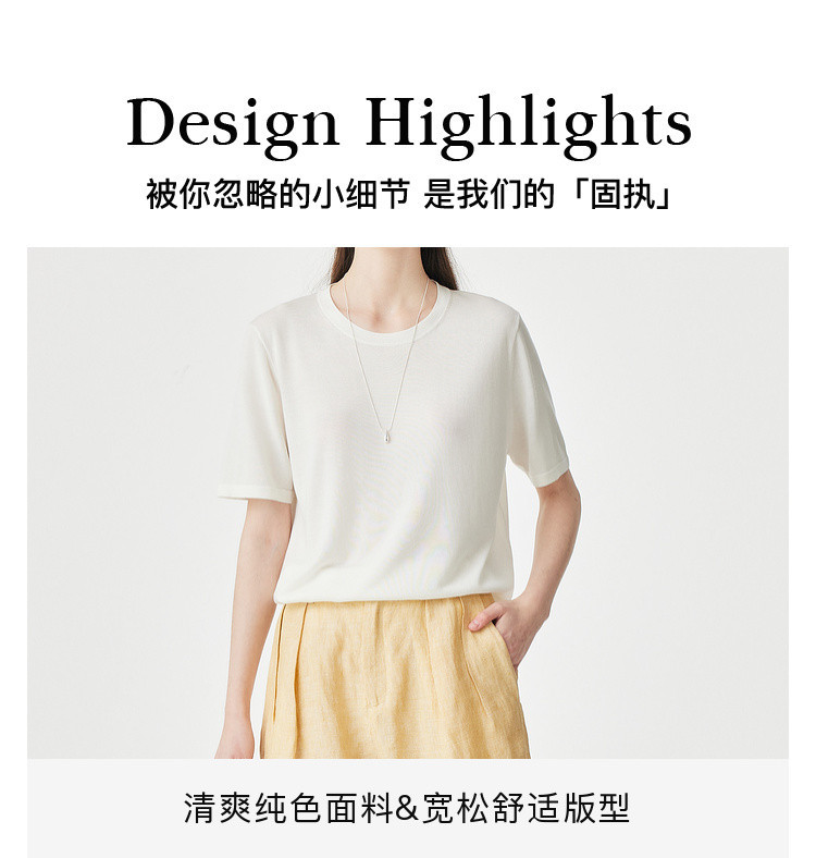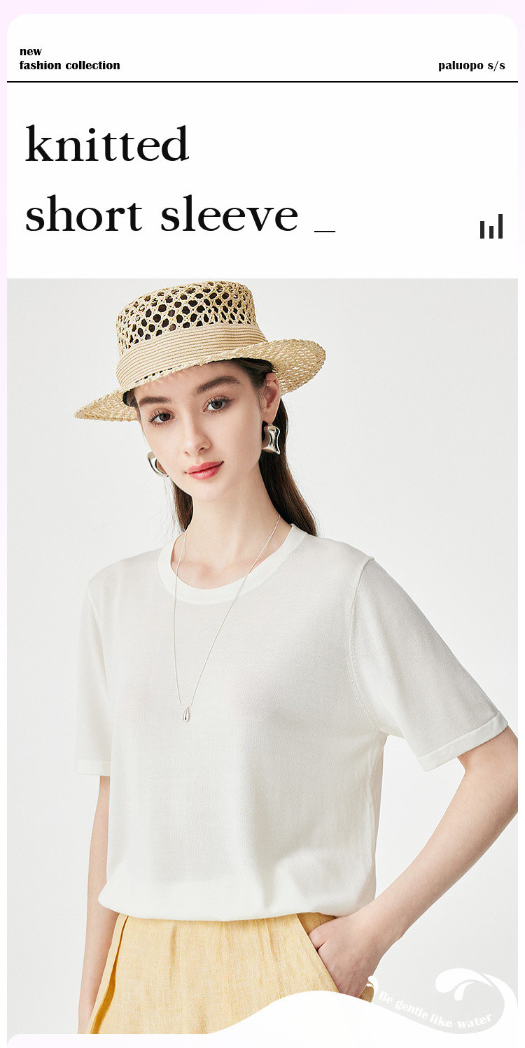 PALUOPO/PL【桑蚕丝混纺】天丝 T 恤女夏季新款宽松显瘦冰感上衣ES250952M