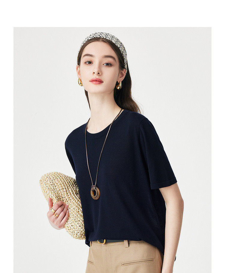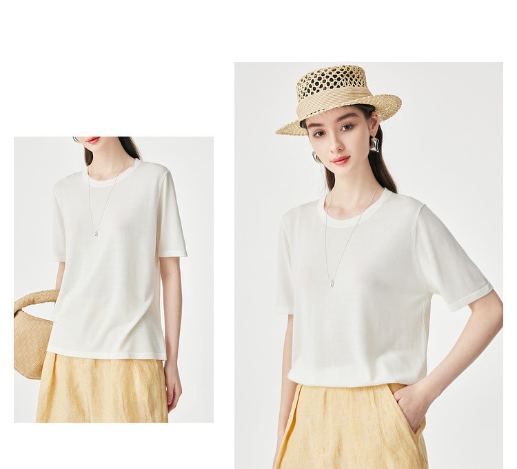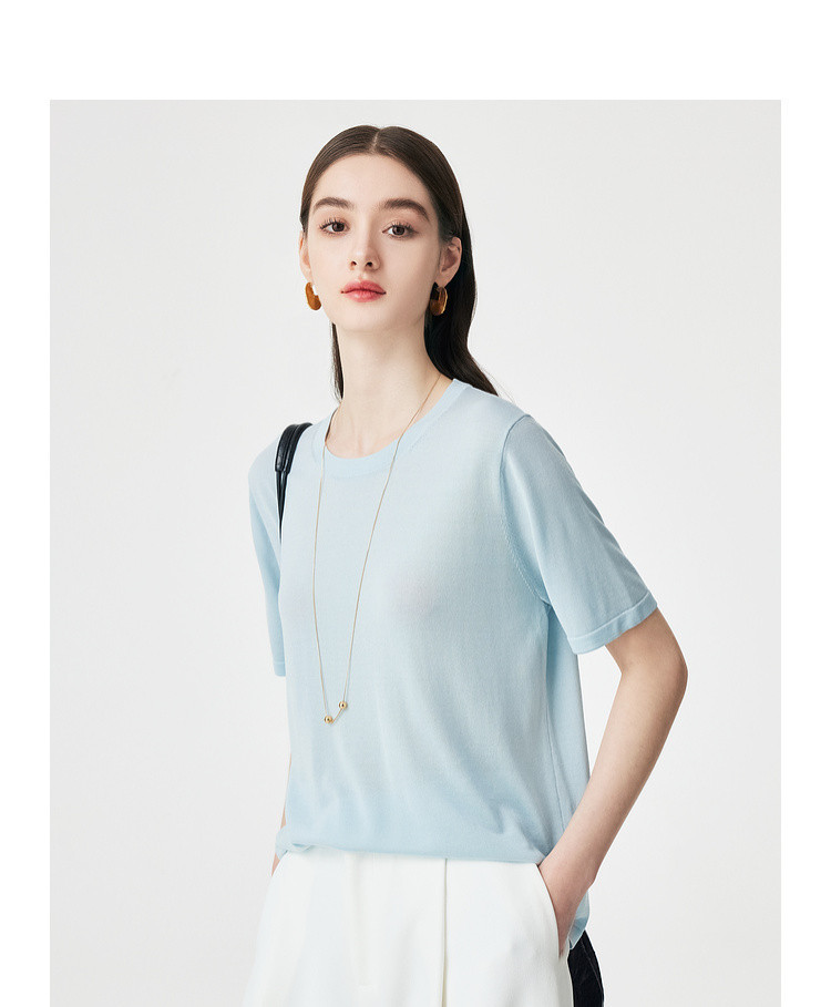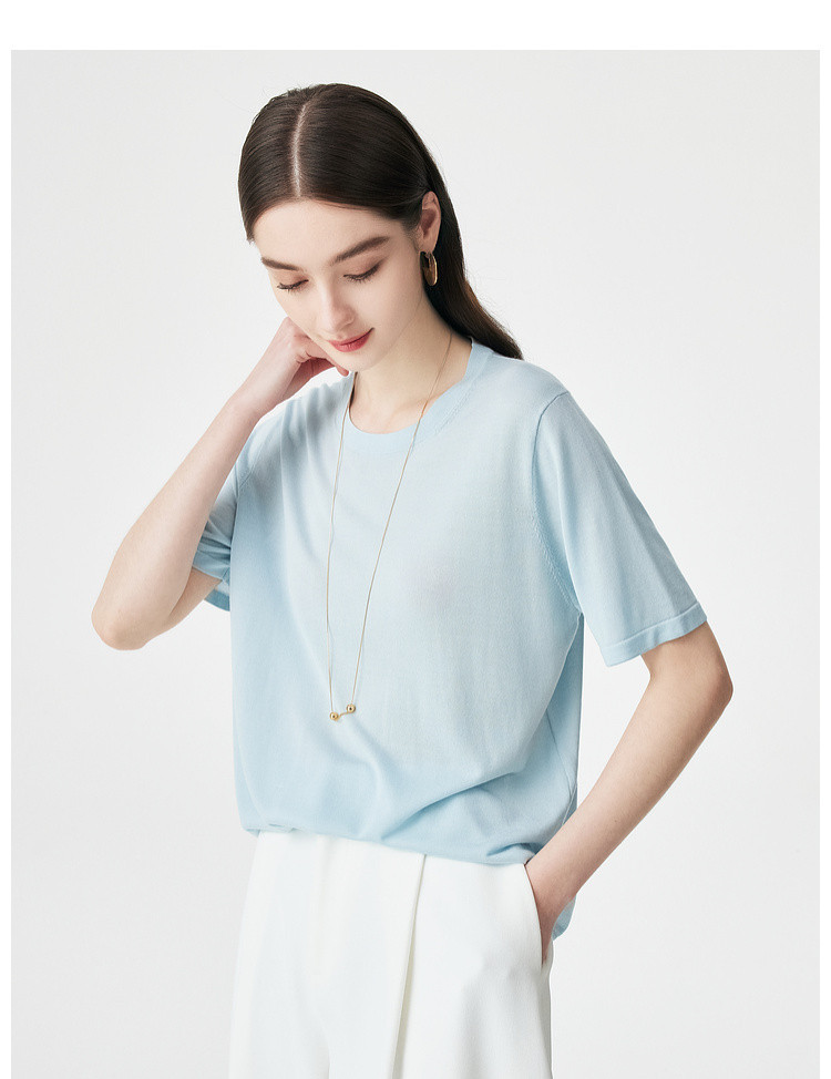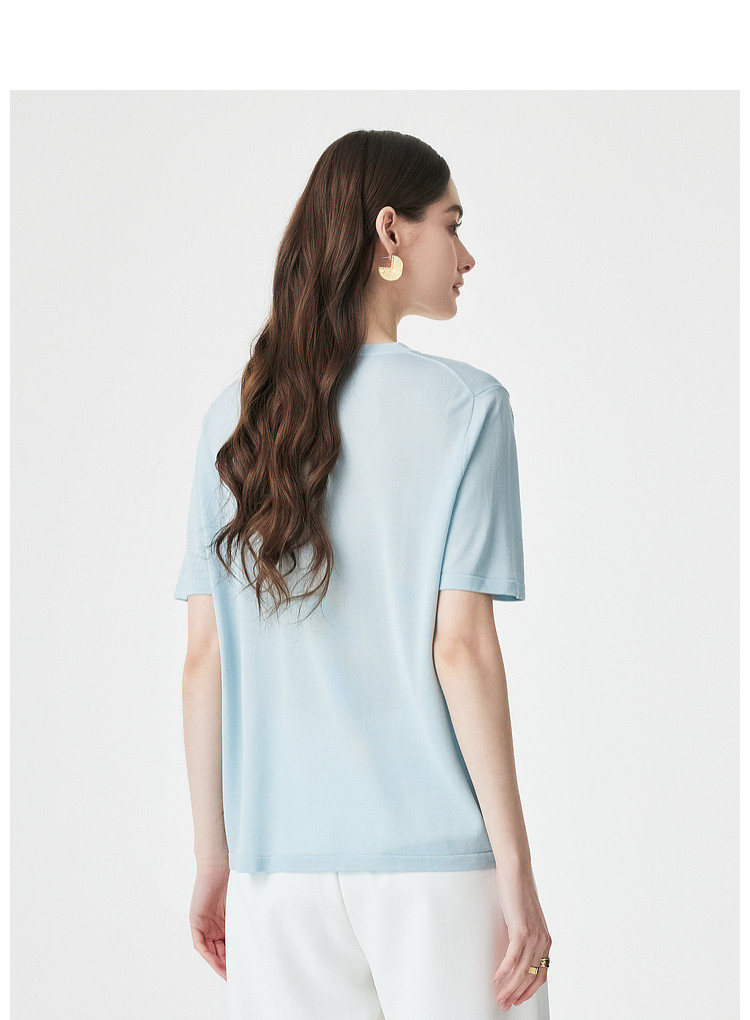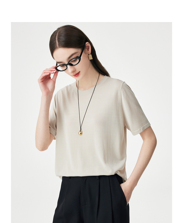 PALUOPO/PL【桑蚕丝混纺】天丝 T 恤女夏季新款宽松显瘦冰感上衣ES250952M