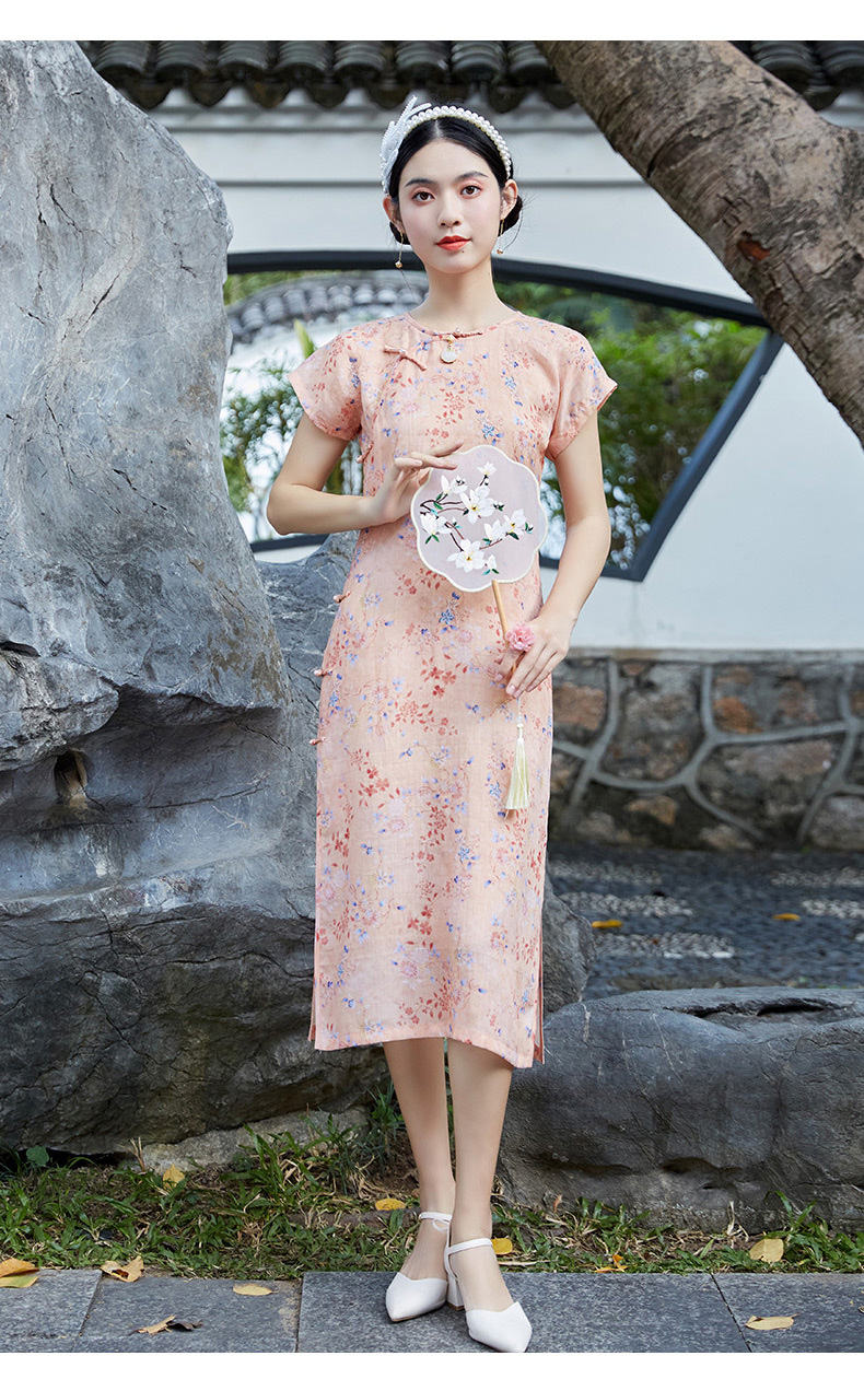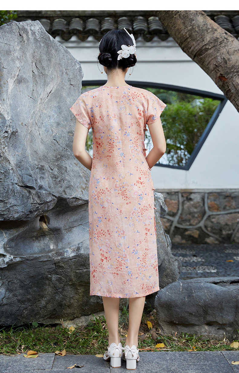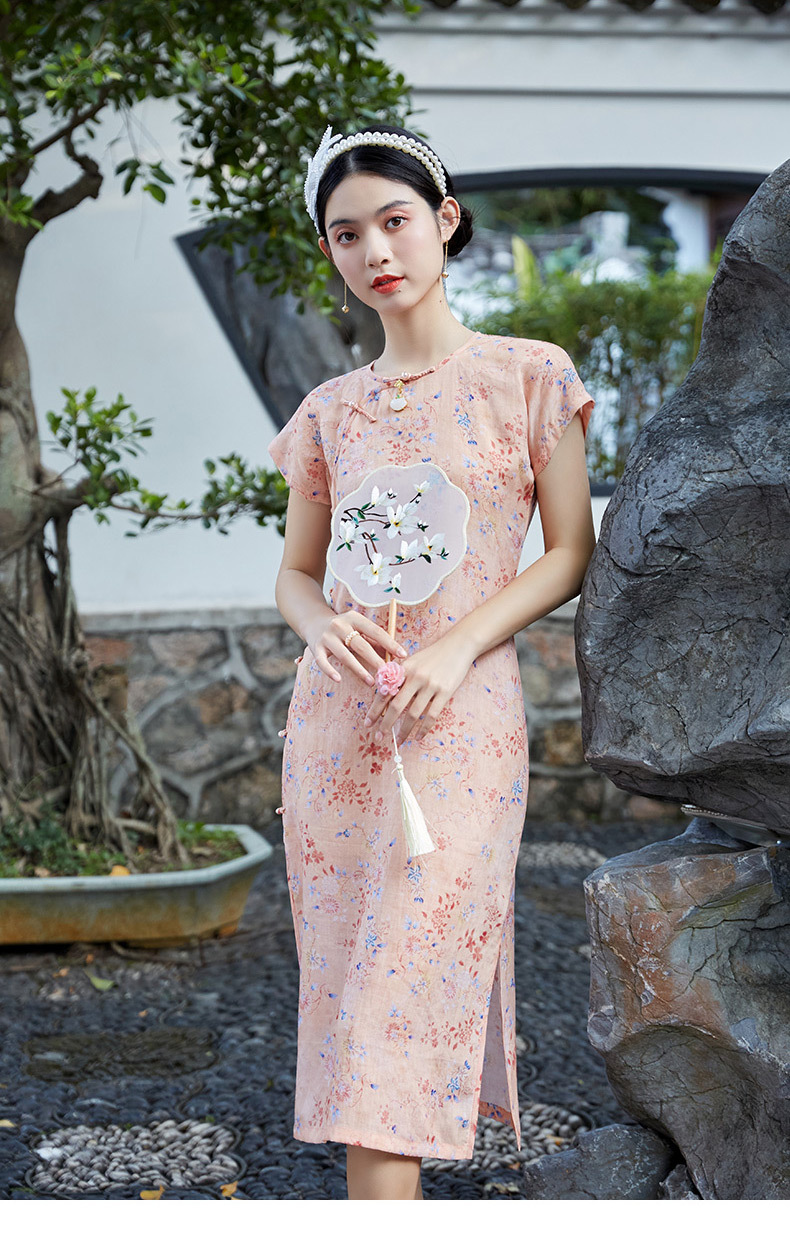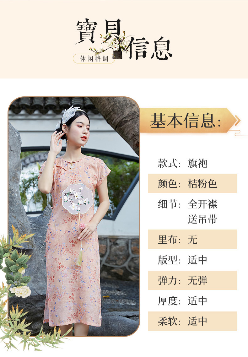 复古中国风,女装夏季新款苎麻全开襟平裁改良圆领旗袍OY-220221
