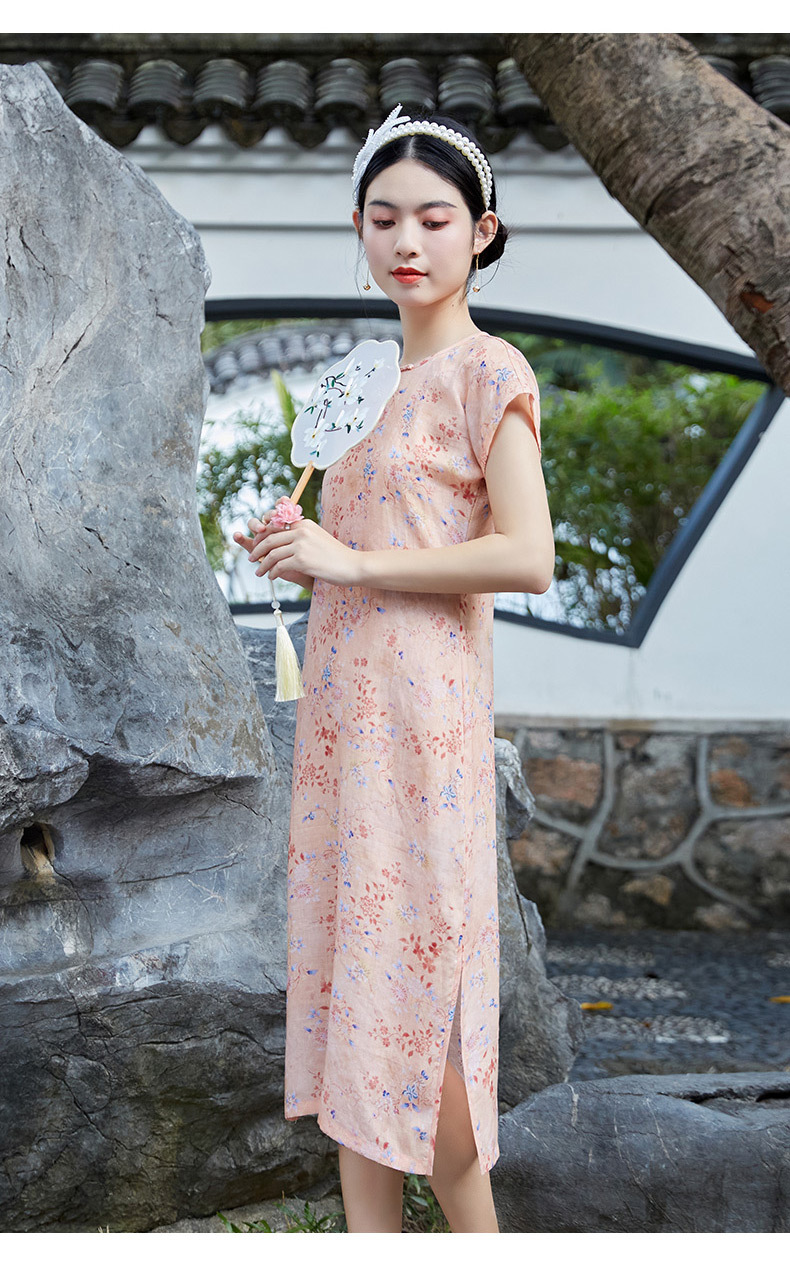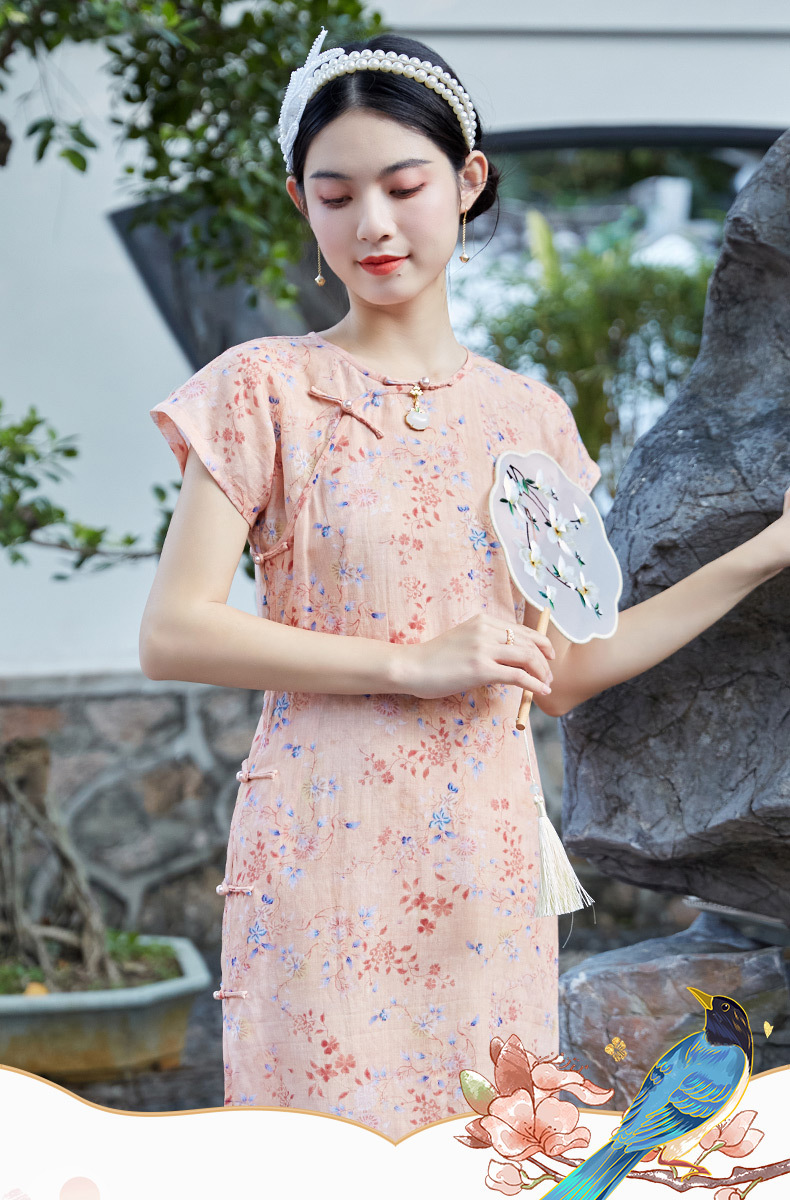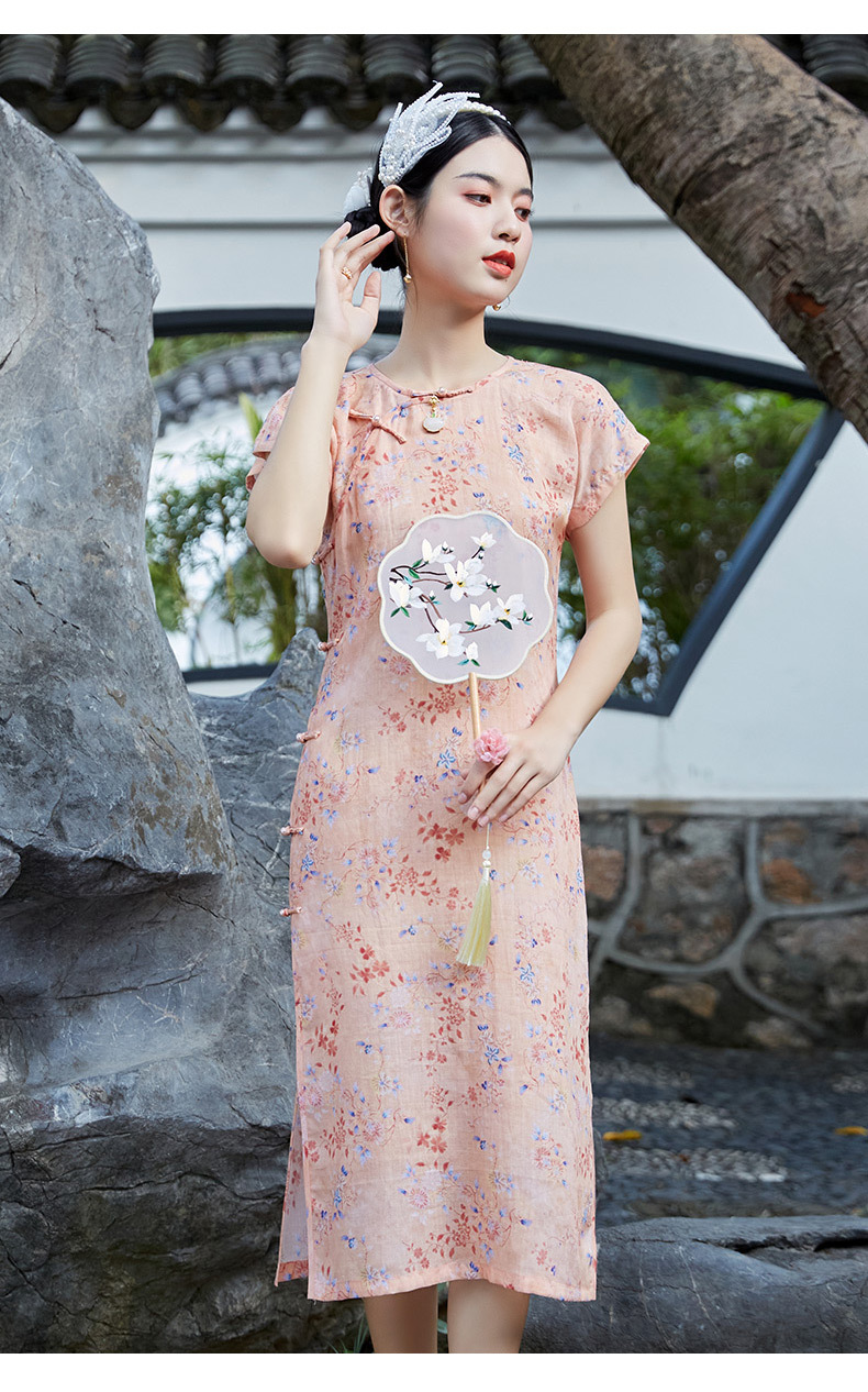 复古中国风,女装夏季新款苎麻全开襟平裁改良圆领旗袍OY-220221