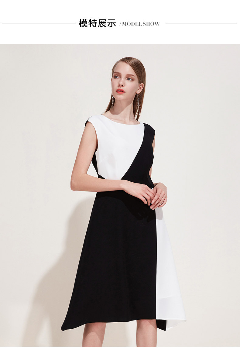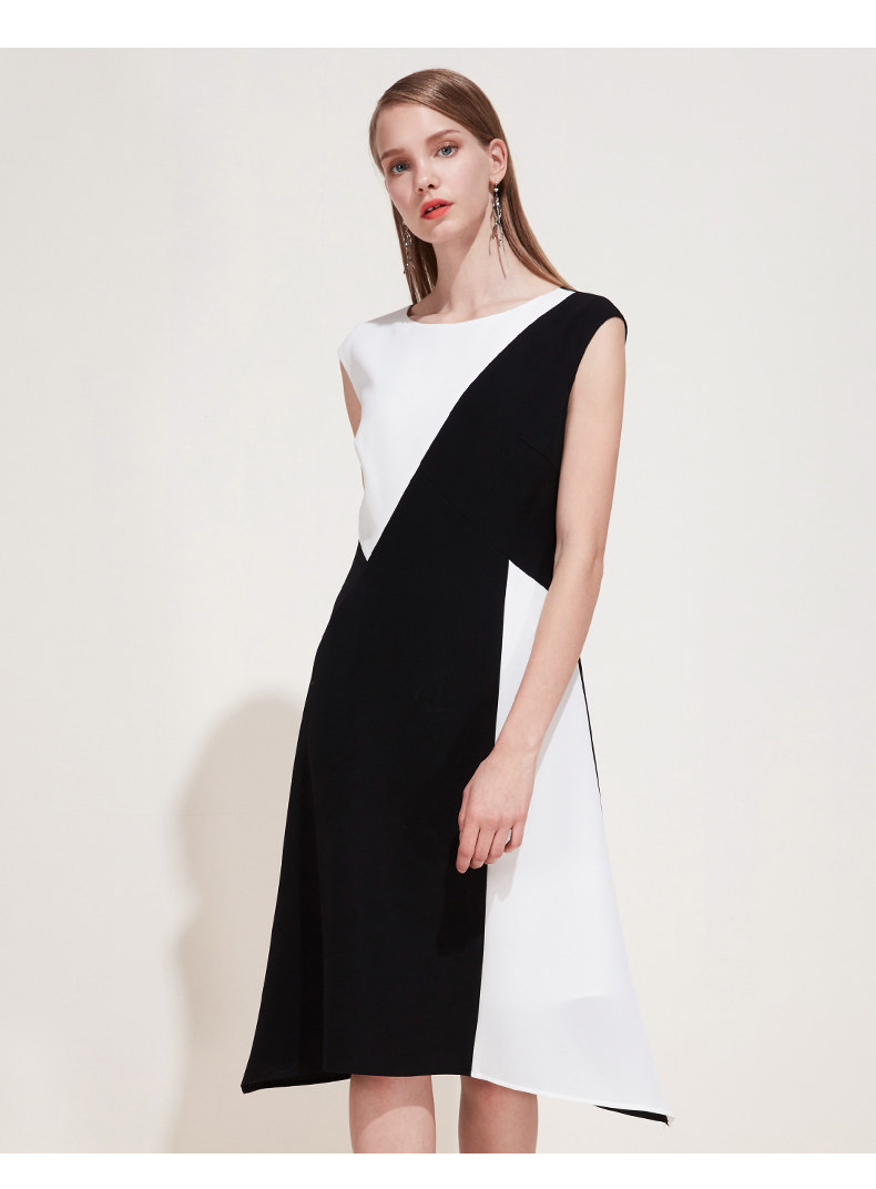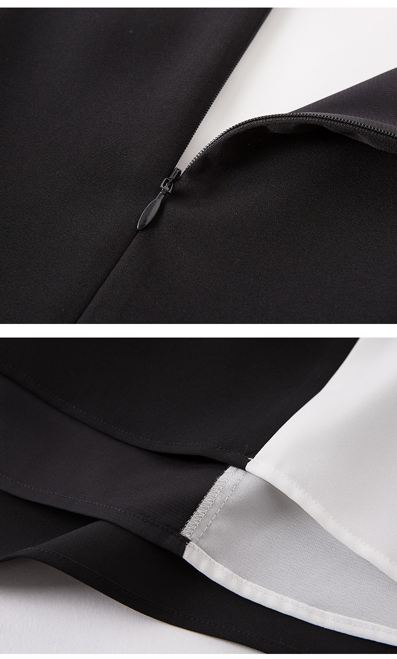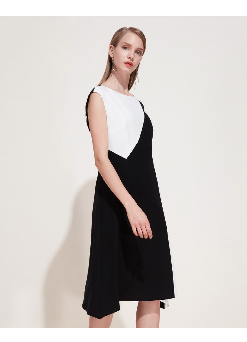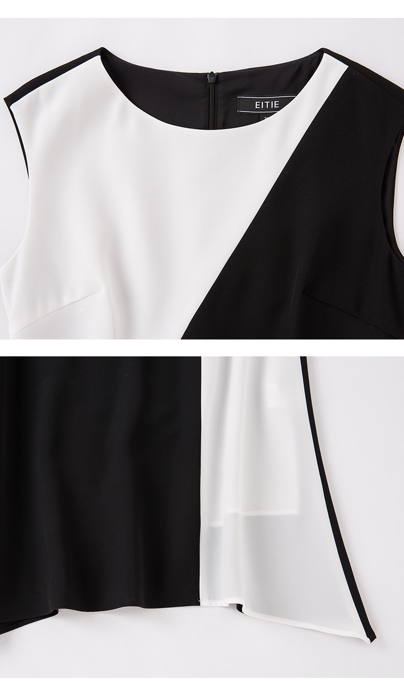 EITIE爱特爱夏季新款女装品牌中长裙黑白拼接设计雪纺连衣裙5907657