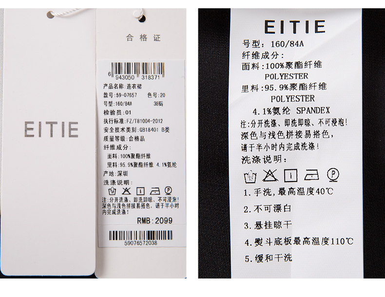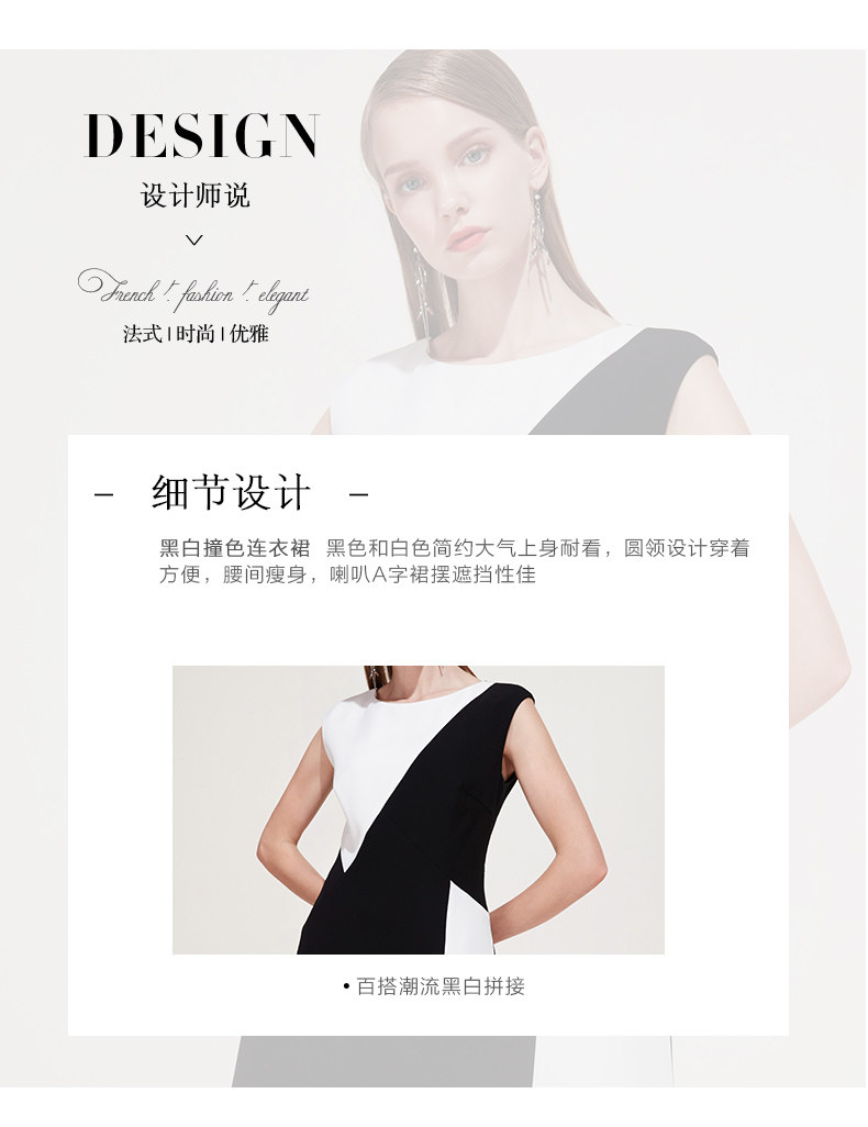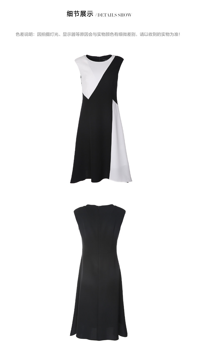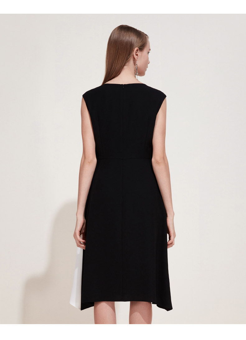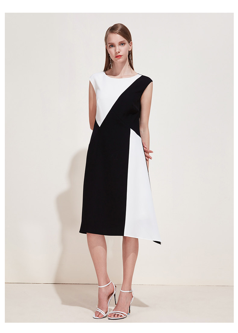 EITIE爱特爱夏季新款女装品牌中长裙黑白拼接设计雪纺连衣裙5907657