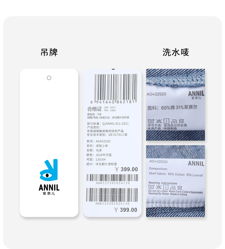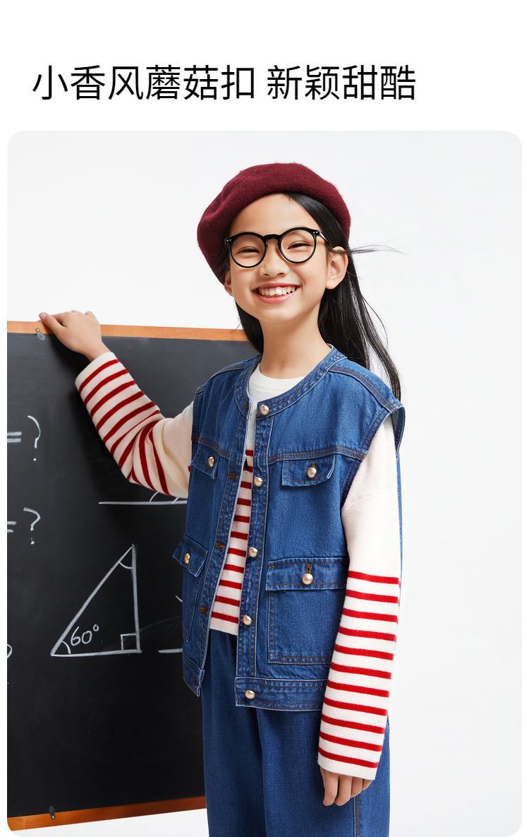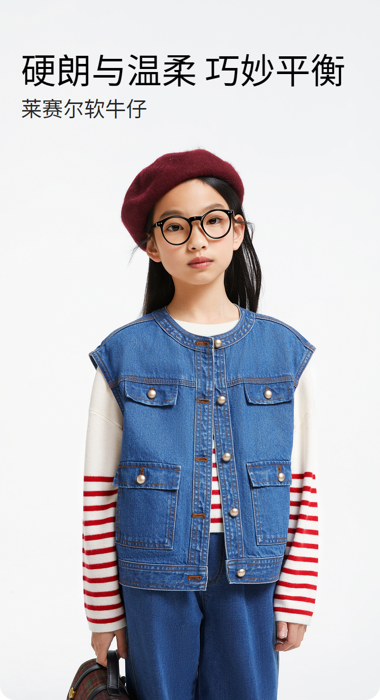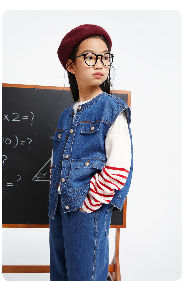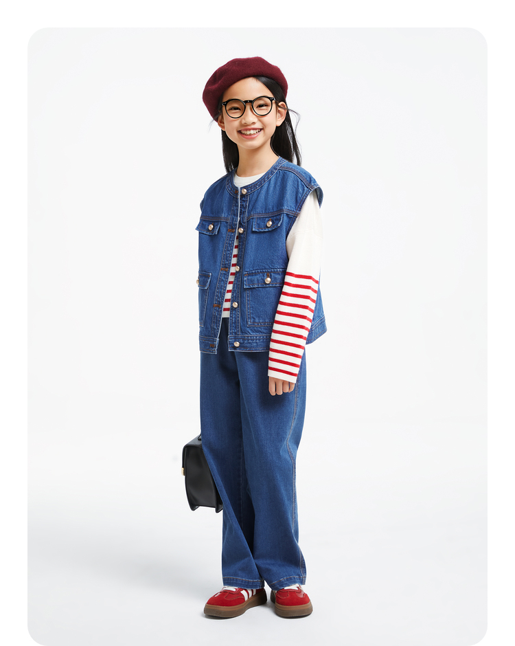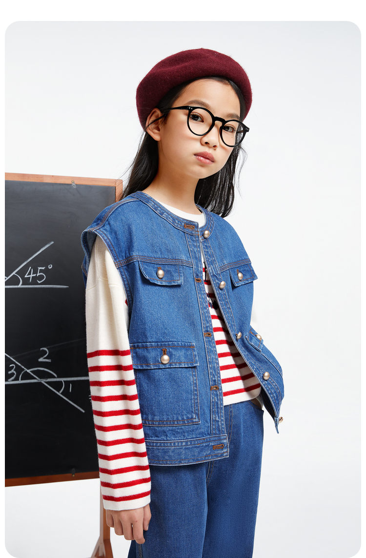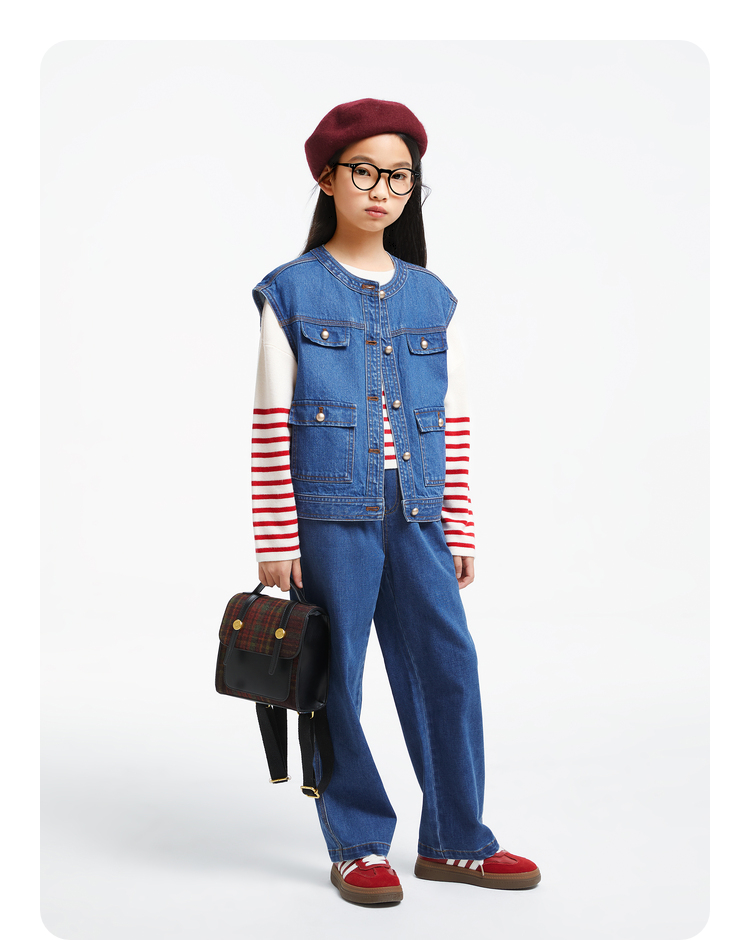 女童泡芙牛仔马夹新款安奈儿童装AG432520