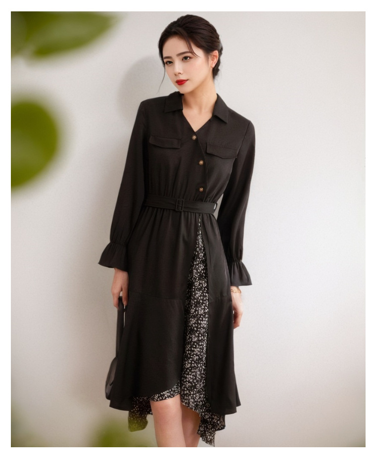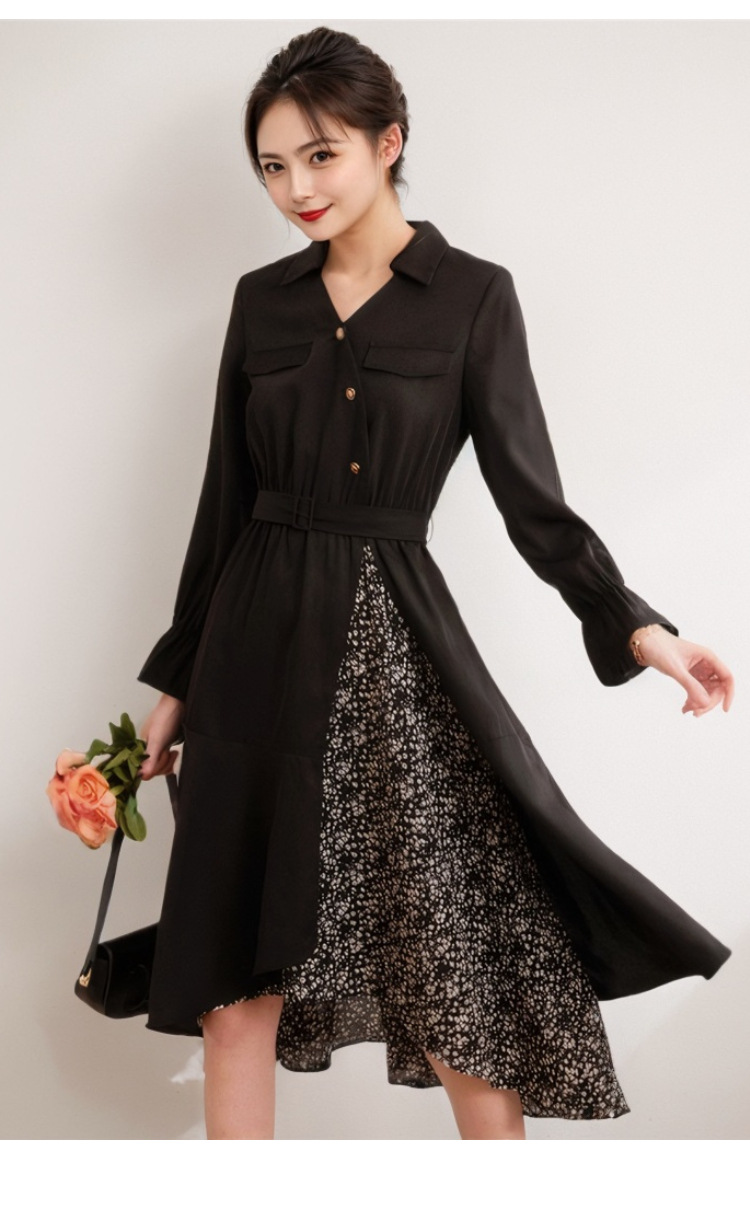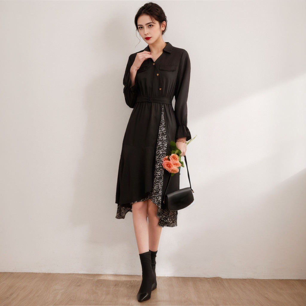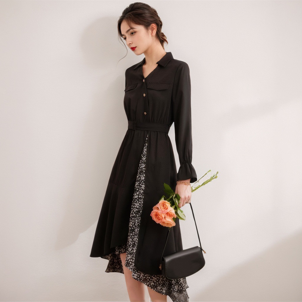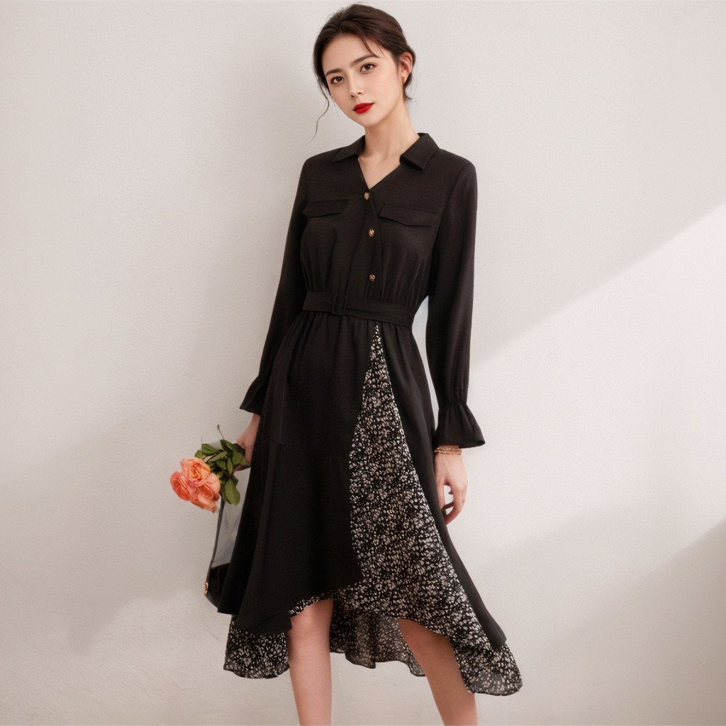 雀说法式设计感小众碎花连衣裙新款赫本风显瘦茶歇裙AL5013