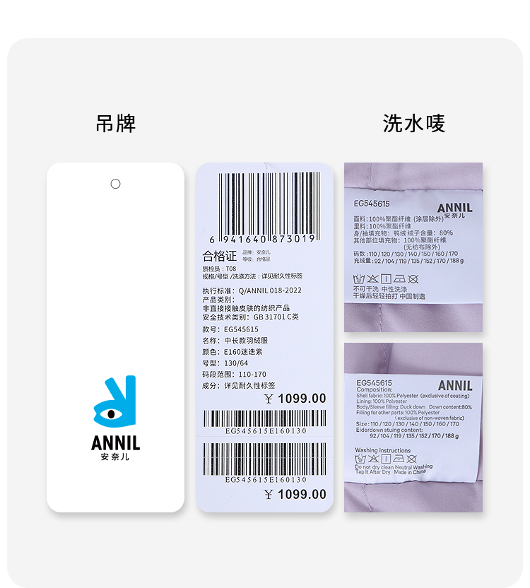 女童中长款羽绒服冬季新款安奈儿童装EG545615