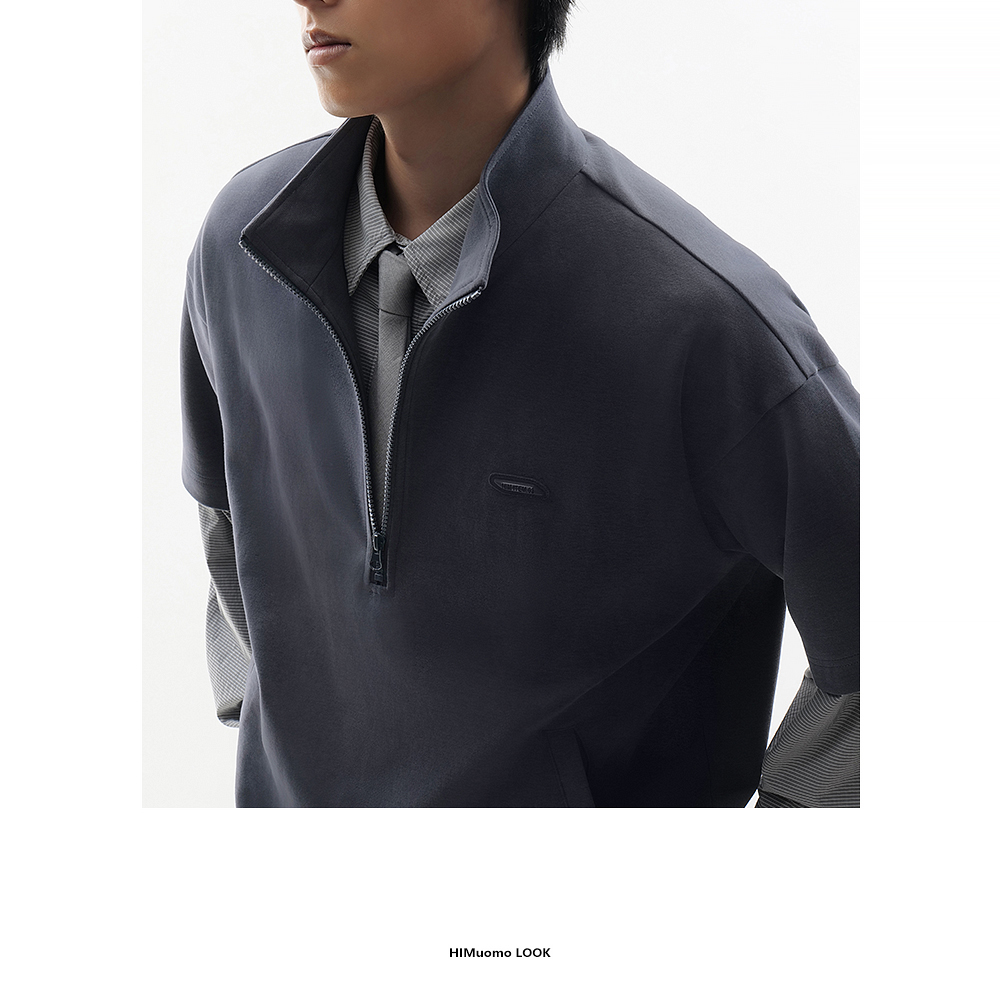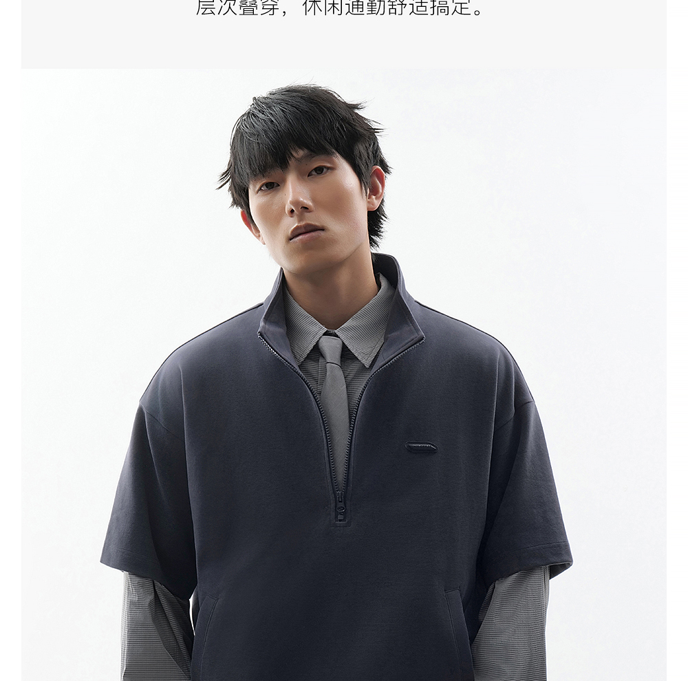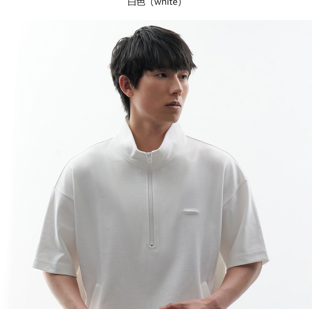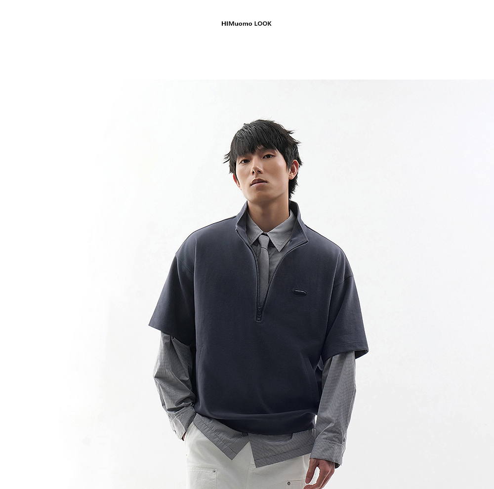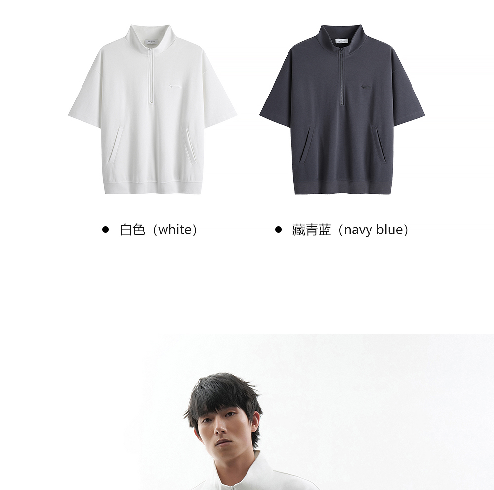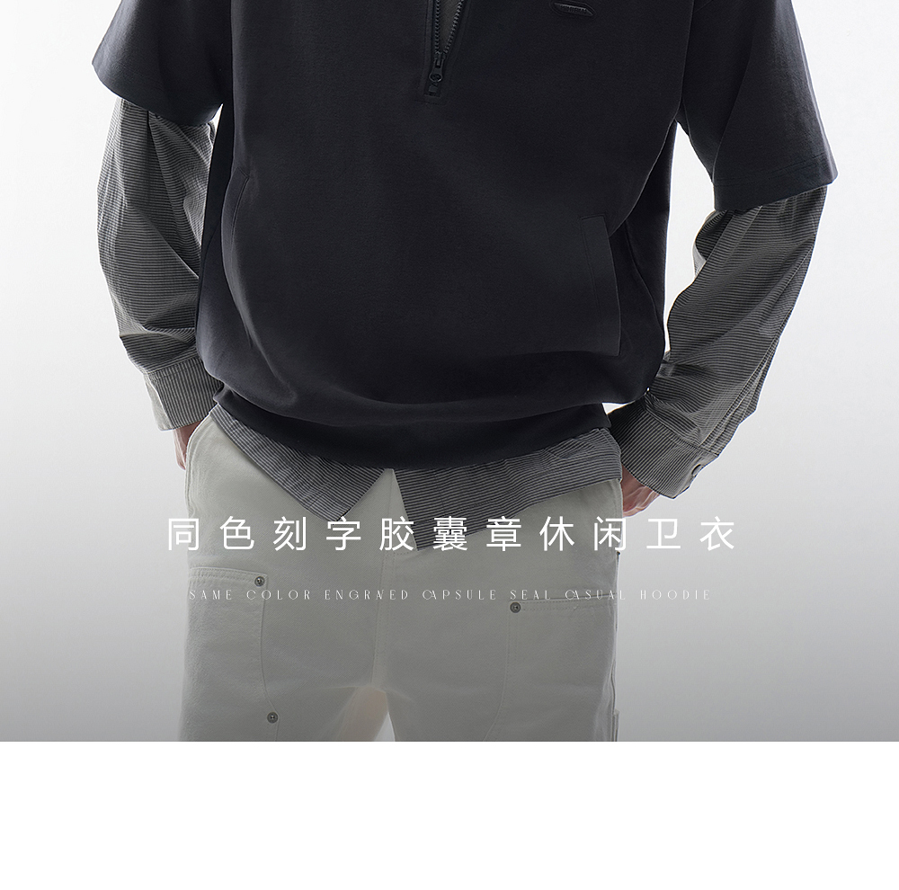 HIM漢崇 时尚刻字胶囊章舒适休闲半开襟立领短袖卫衣 2026春季