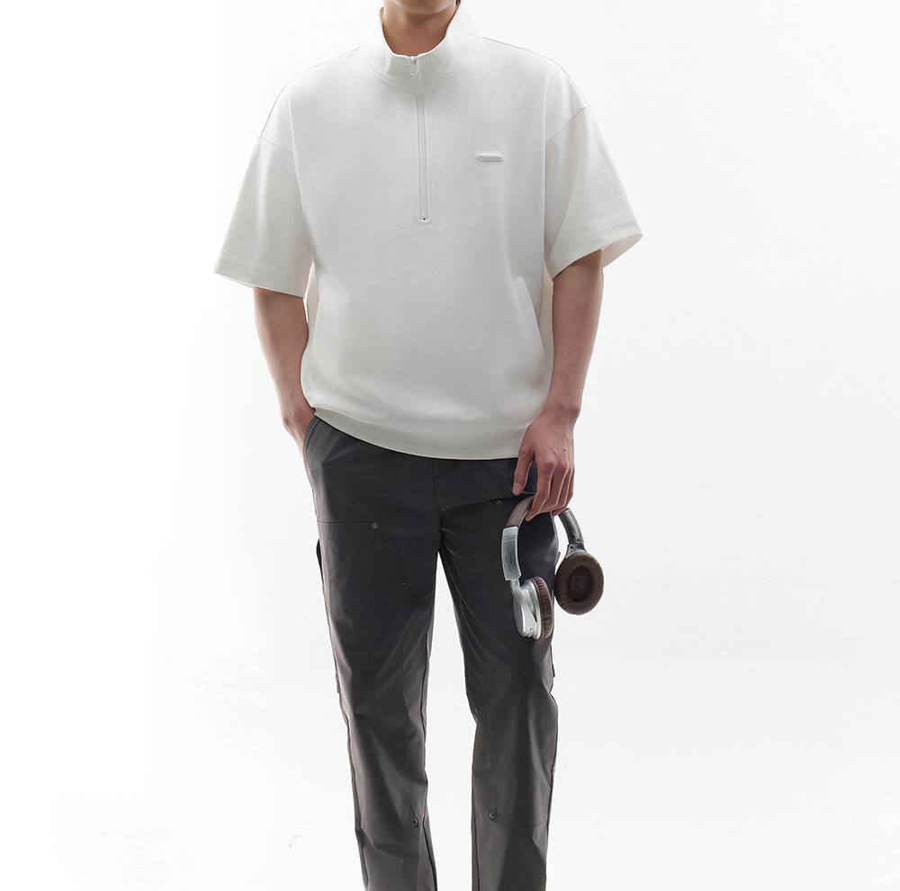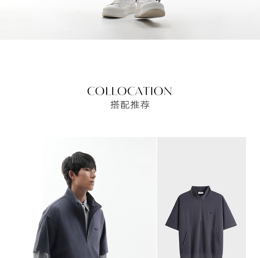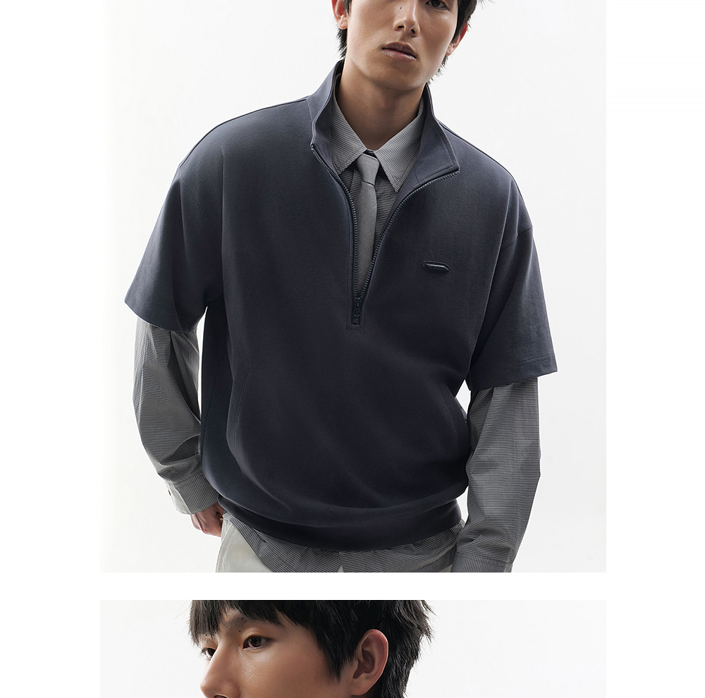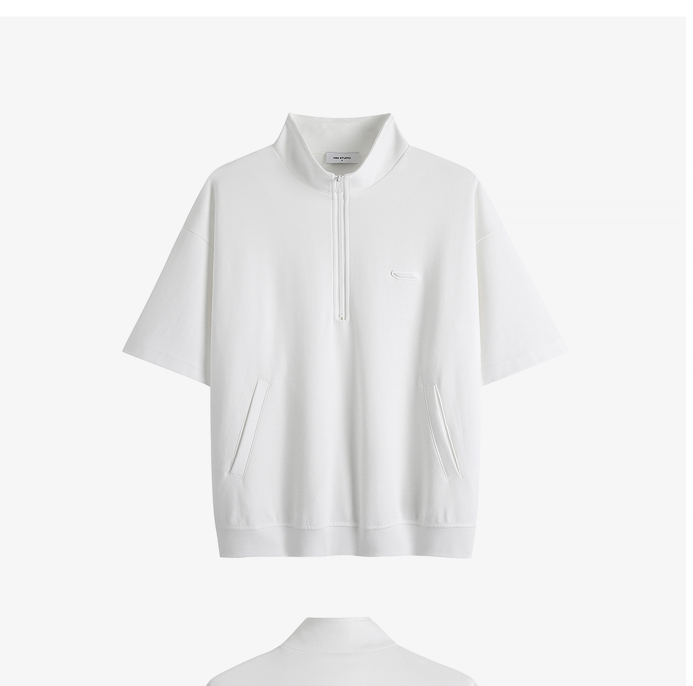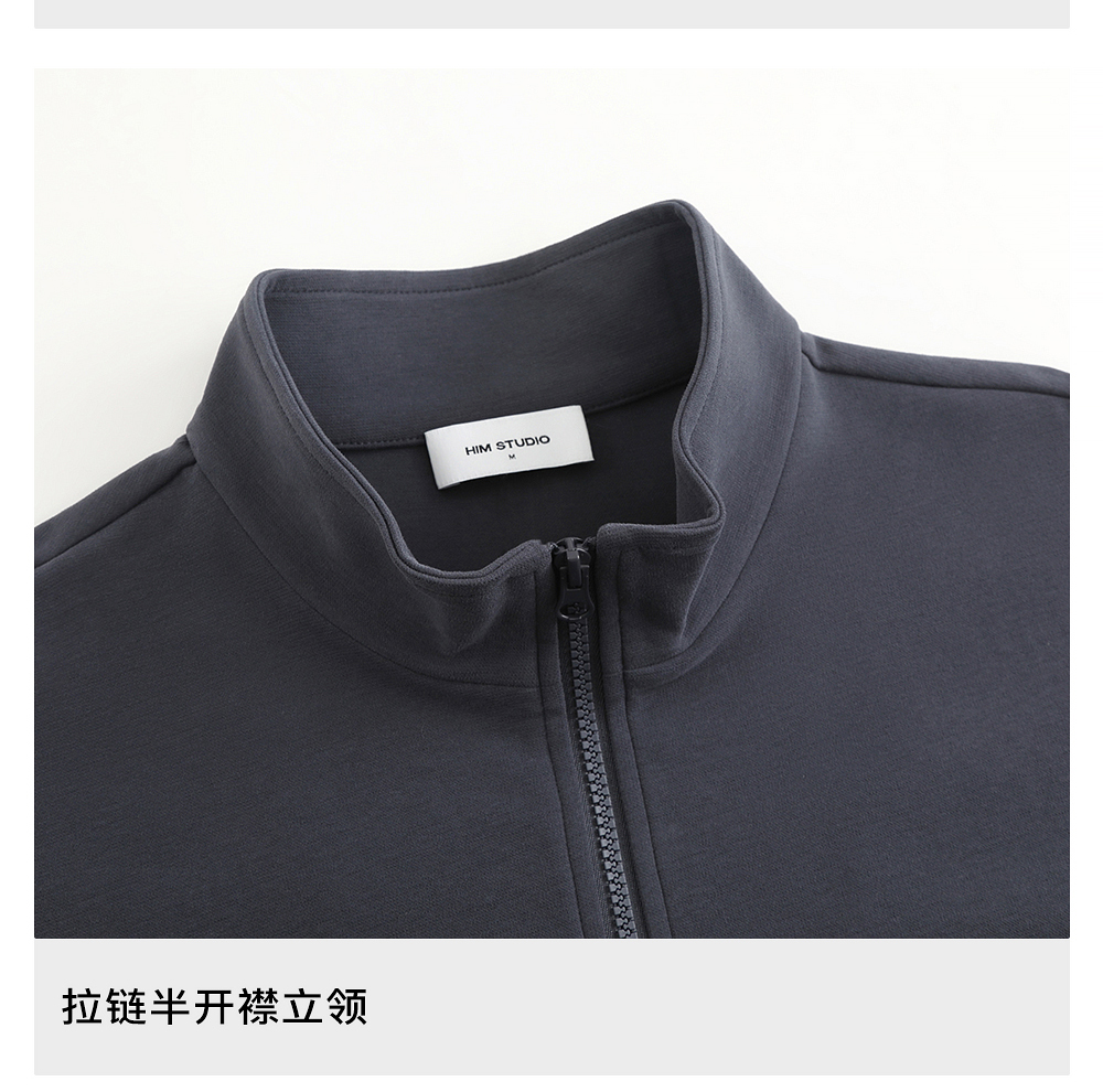 HIM漢崇 时尚刻字胶囊章舒适休闲半开襟立领短袖卫衣 2026春季