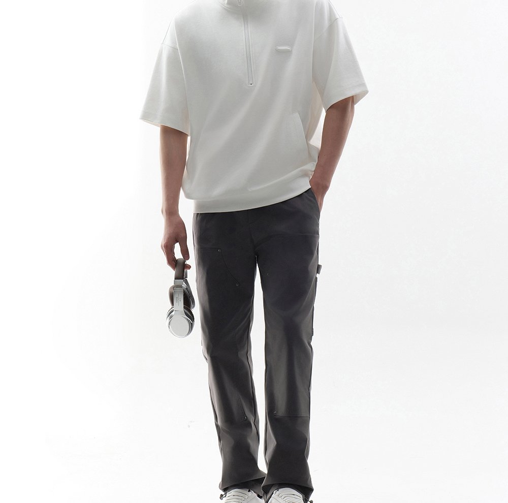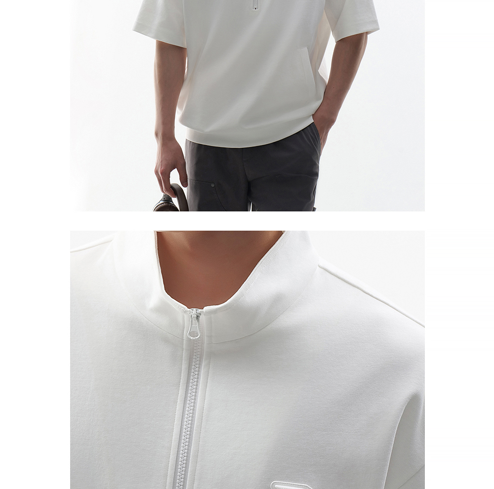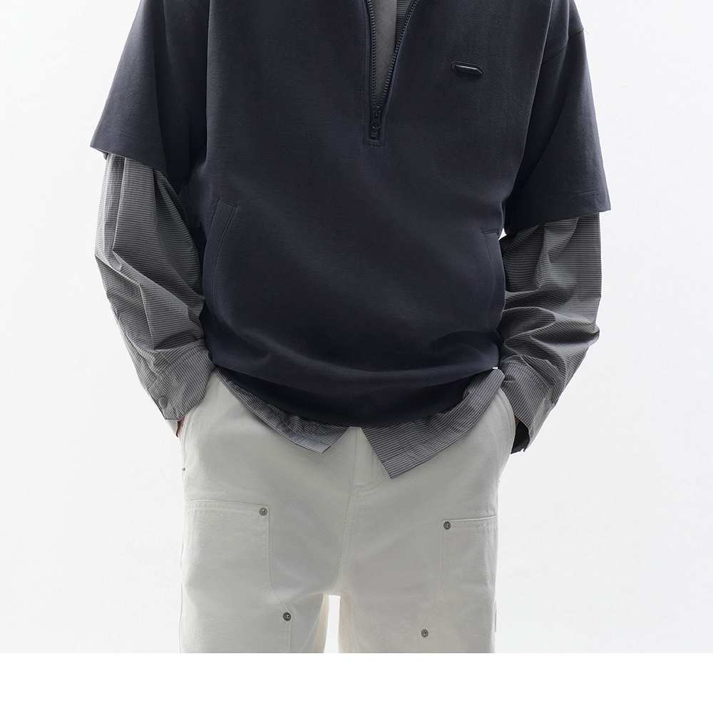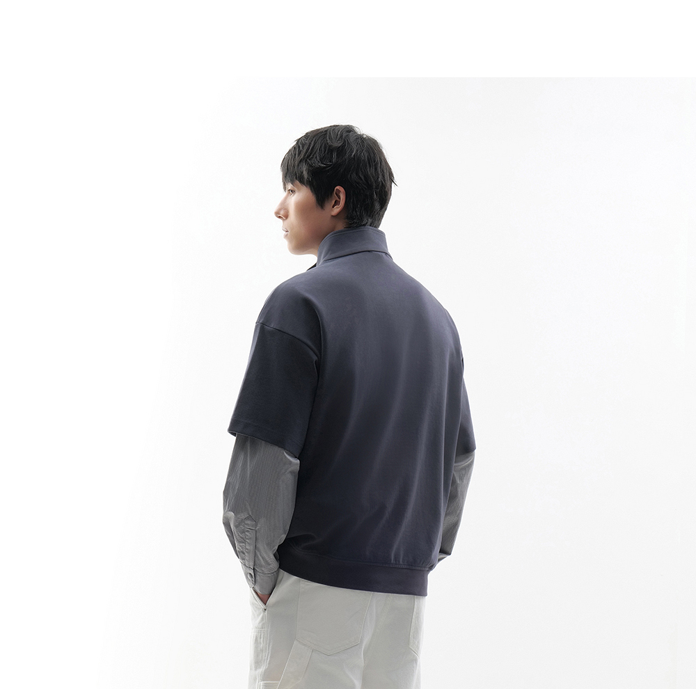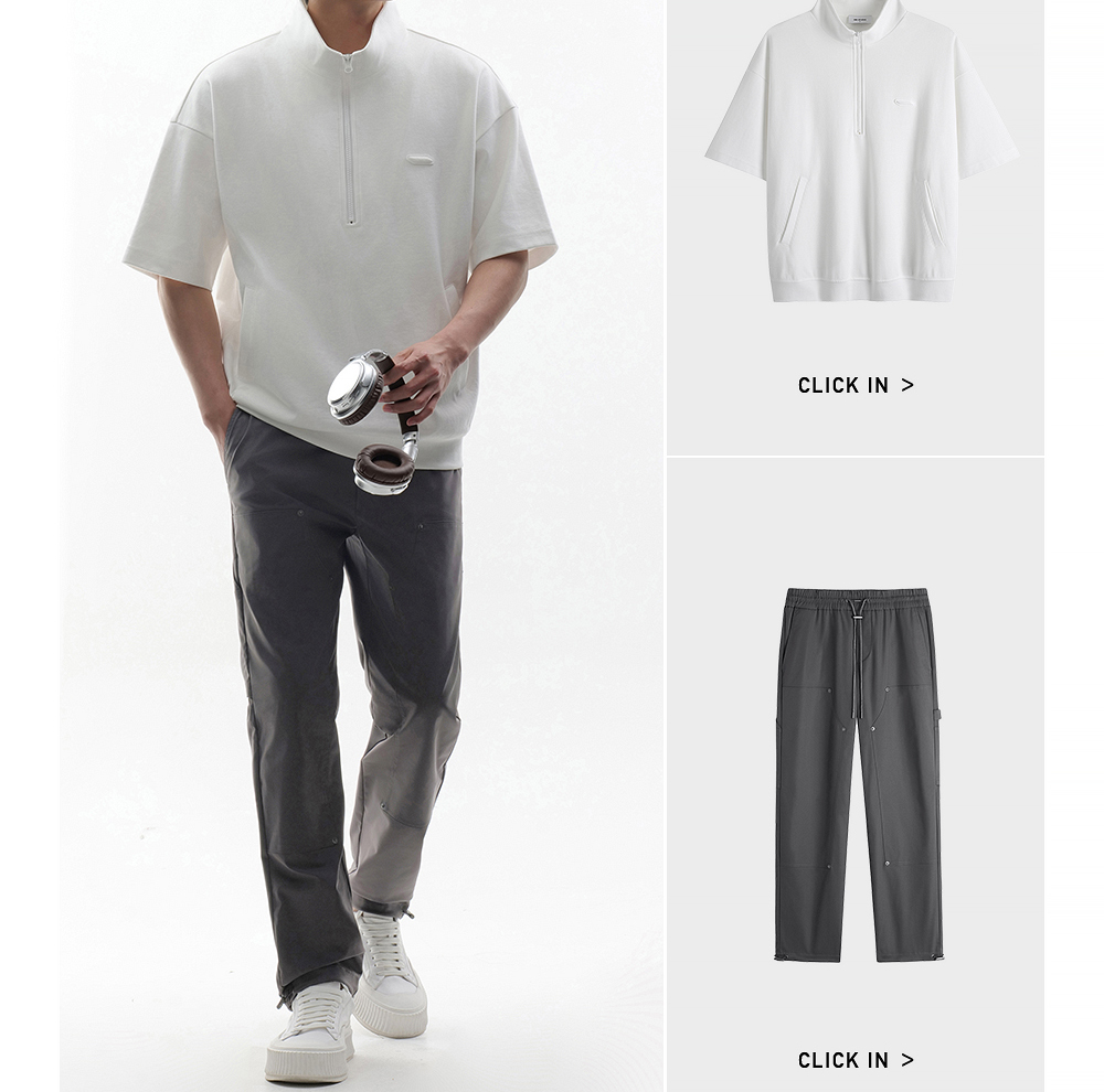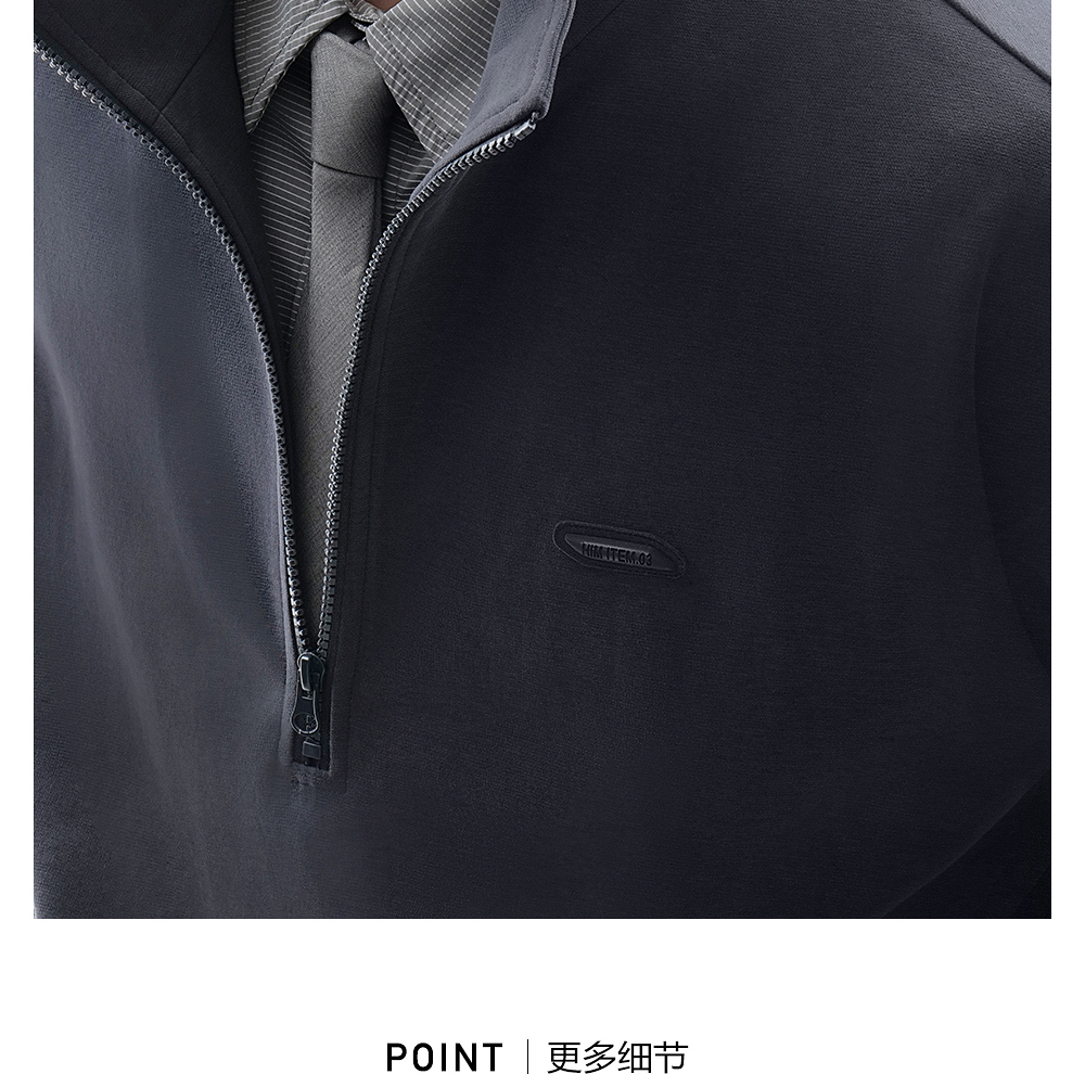 HIM漢崇 时尚刻字胶囊章舒适休闲半开襟立领短袖卫衣 2026春季